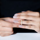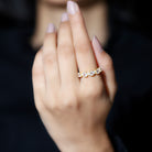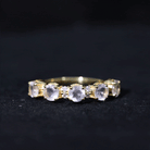 Highlight your style by wearing this elegant Half Eternity Ring embellished with Round Shape Rose Quartz in Prong Setting with Diamond Stones. Crafted with Gold, this Rose Quartz and Diamond Ring will give you a luxurious look. This Rose Quartz Stone Ring will make you look out from the crowd.