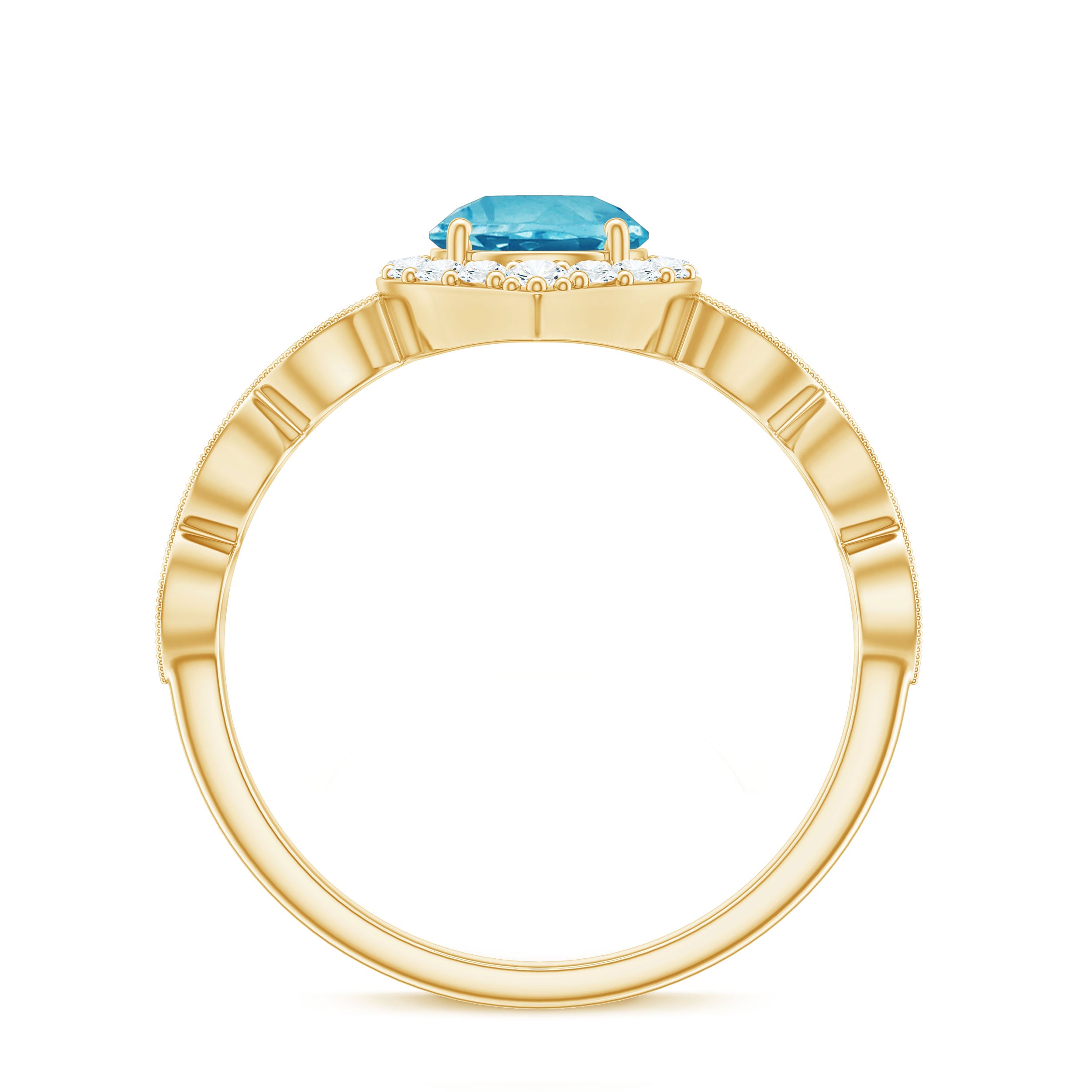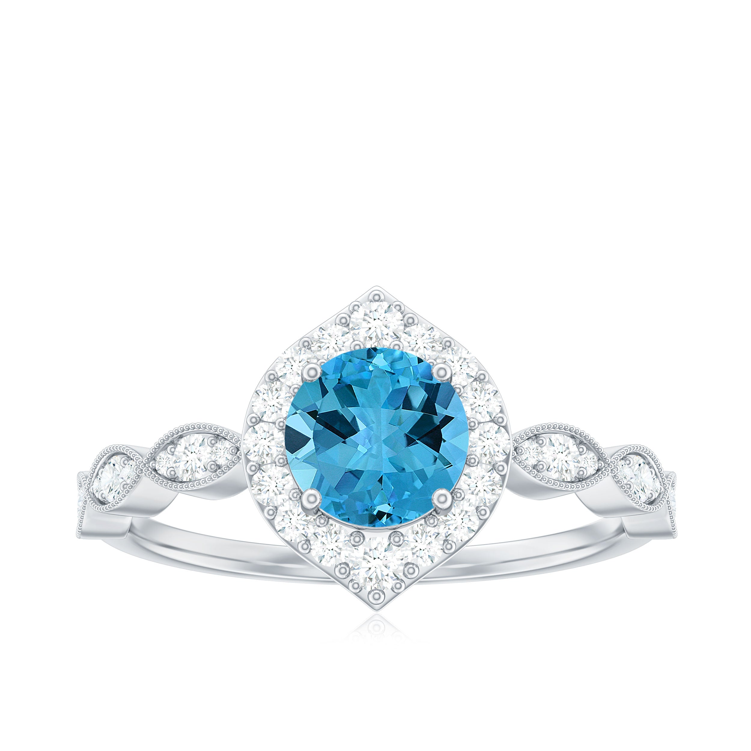 1.75 CT Vintage Swiss Blue Topaz Engagement Ring with Moissanite Accent