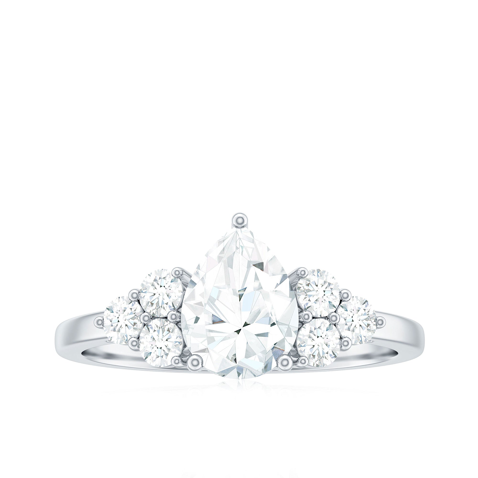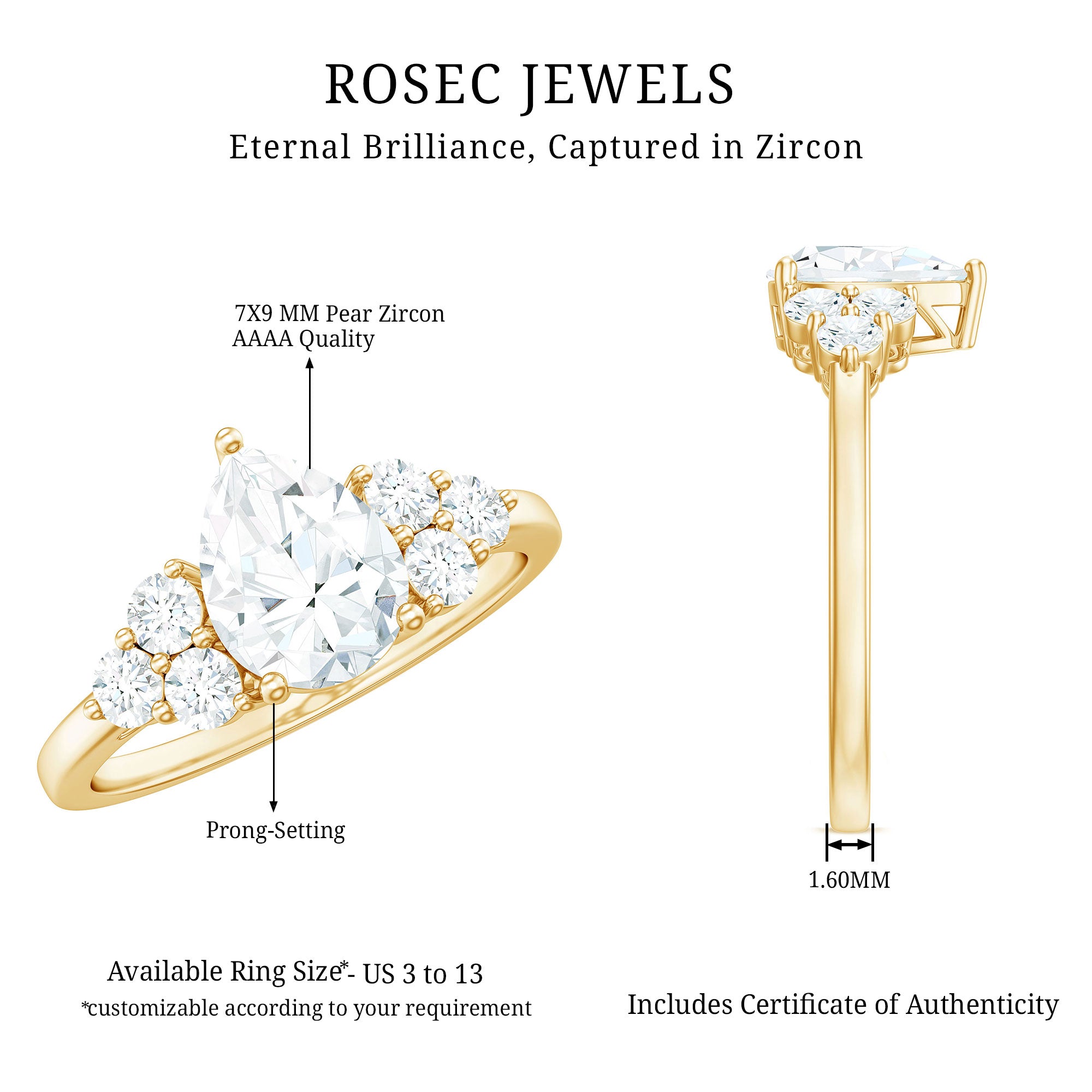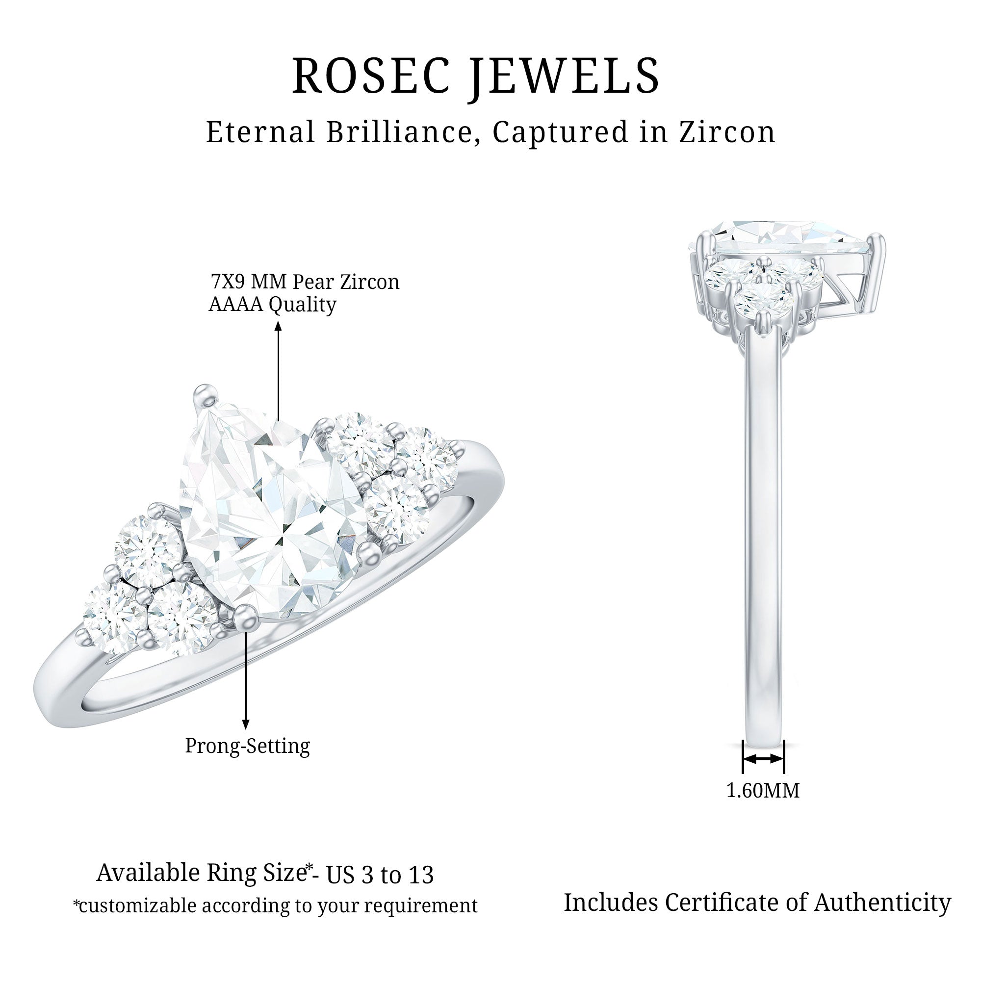 Zircon Teardrop Engagement Ring with Cluster Accent