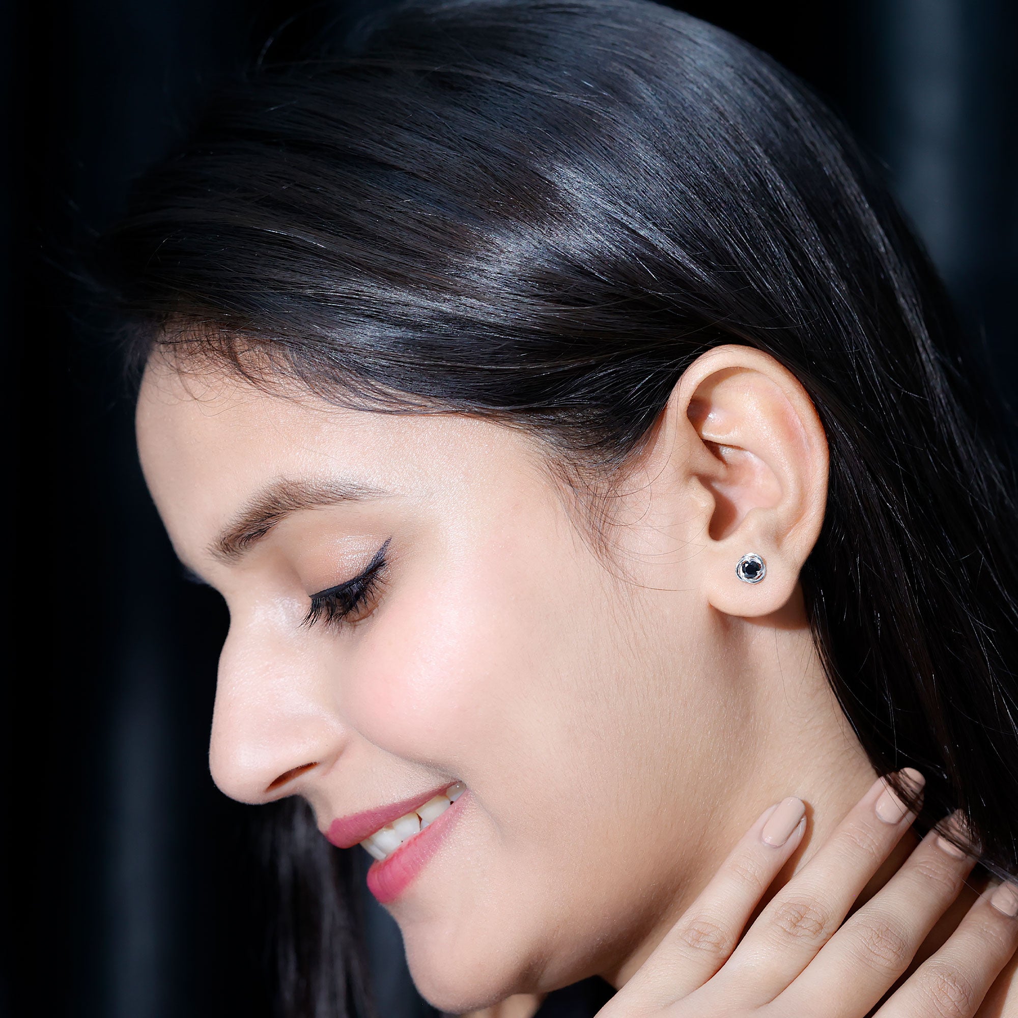 The graceful design and classic style of these Black Spinel Earrings make them a thoughtful choice for gifting on Valentine’s Day or any moment that deserves something memorable. Features a 5 MM round shape black spinel gemstone, placed as a solitaire in secure prong setting. Surrounding the center stone is a swirl pattern crafted in metal, creating a beautiful flow that gives the Black Spinel Stud Earrings a unique and elegant appearance. Crafted with solid metal, the Solitaire Stud Earrings are made with care and attention to detail. The sturdy construction ensures durability, allowing them to remain a treasured part of any jewelry collection for years. Comfort and security are also an important part of the design. The earrings come with a screw back closure that helps keep them firmly in place while providing a comfortable fit on the earlobe. This secure closure allows you to wear them with confidence throughout the day. With their graceful swirl pattern, classic gemstone centerpiece, and comfortable design, these Swirl Earrings offer a charming blend of style and sentiment for anyone who appreciates elegant jewelry.