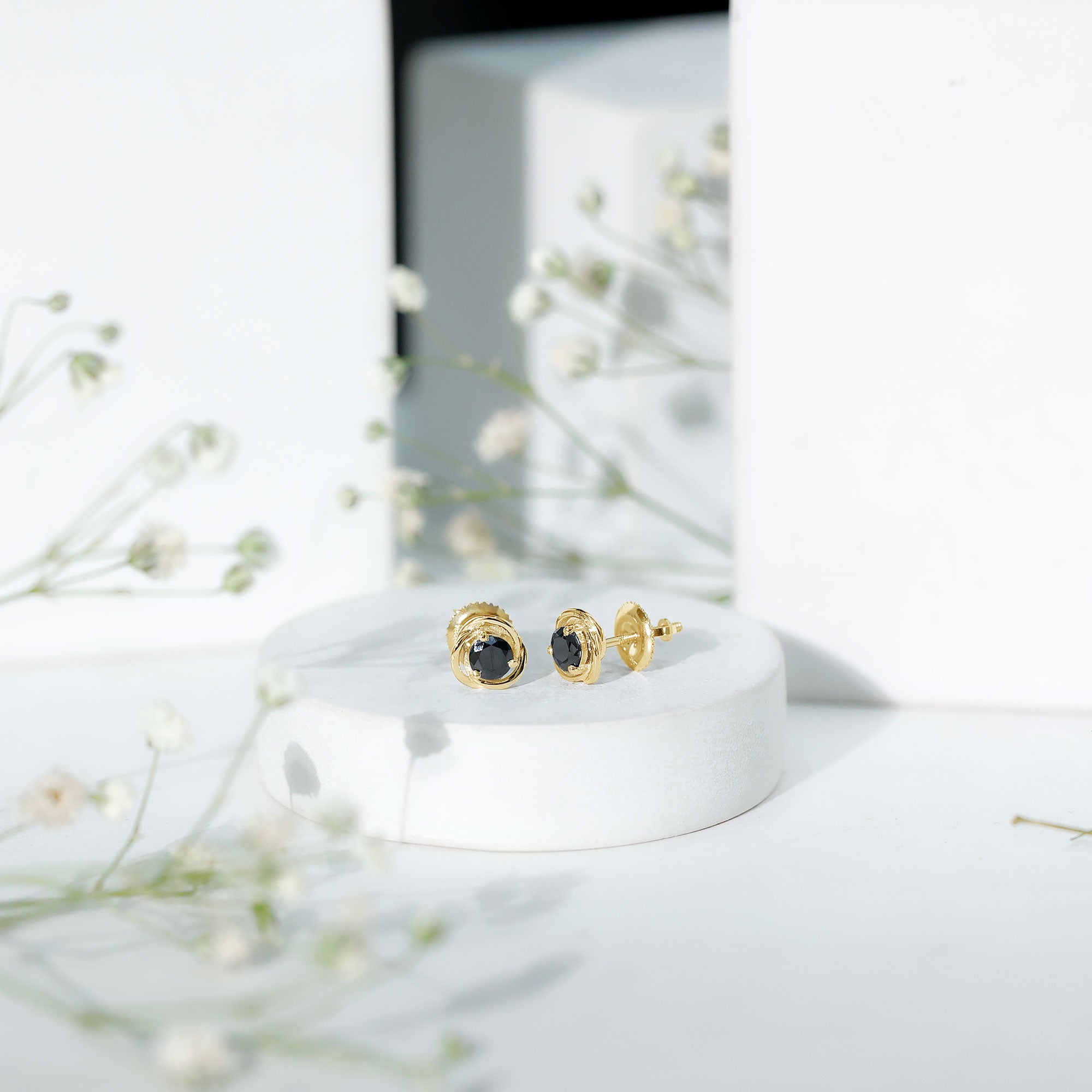 1 Carat Black Spinel Swirl Stud Earrings with Screw Backs