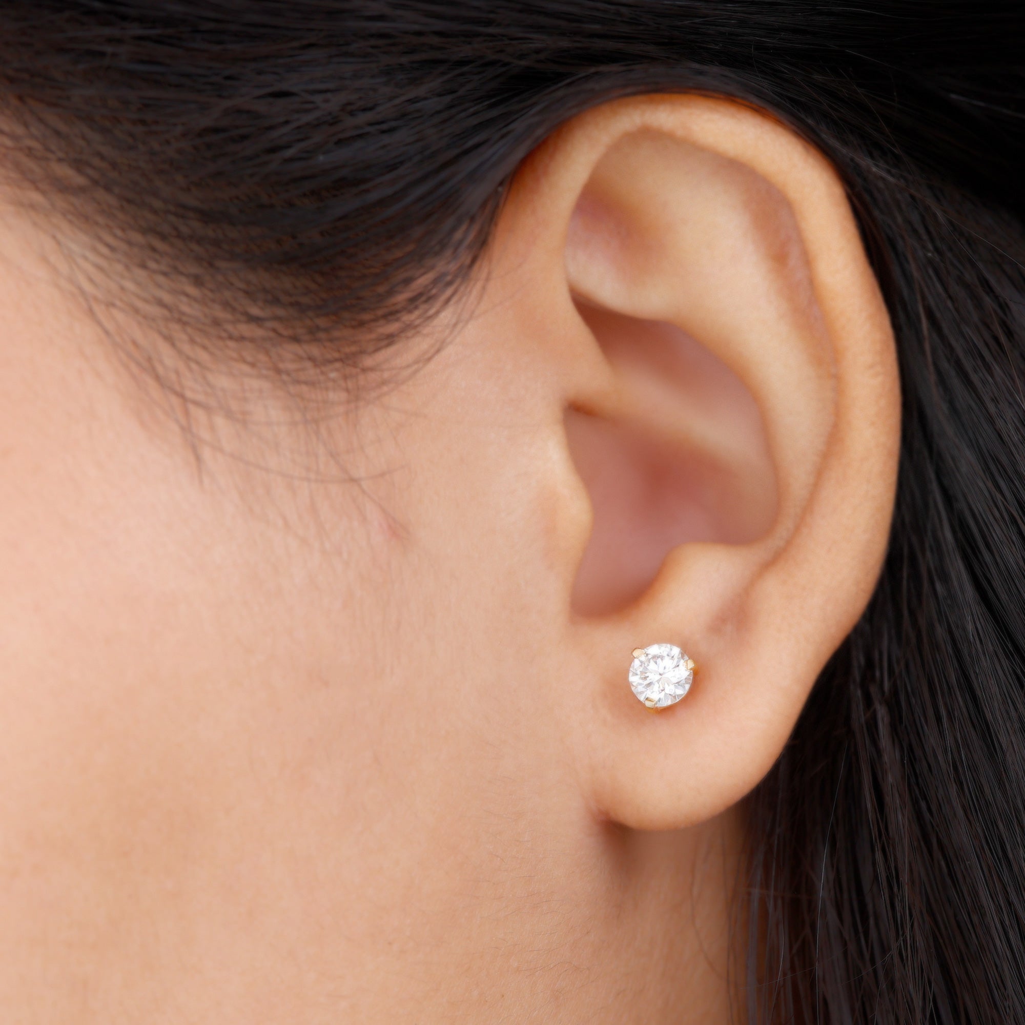 Compact yet radiant, these Moissanite Earrings beautifully merge simplicity with brilliance. Each earring showcases a 5 MM round moissanite securely held in 3 prong setting, enabling the stone to reflect light from every direction. Featuring a screw back closure, these Solitaire Stud Earrings provide a snug and comfortable fit, making them perfect for all-day wear without any concerns. Their minimalist design is suitable for both men and women, complementing any style or event. Whether you are at work, enjoying a casual outing, or attending a formal gathering, these Moissanite Studs add the perfect touch of sparkle to any ensemble. The stones are eco-friendly and ethically sourced, making them a considerate choice for those who prioritize sustainability and environmental care. This pair includes a certificate of authenticity, guaranteeing that you receive genuine, high-quality moissanites. Beautifully packaged in a luxurious jewelry box, they are ready to be gifted to someone special or cherished as a personal keepsake. These versatile Martini Stud Earrings make a thoughtful gift for birthdays, anniversaries, or simply to express gratitude.