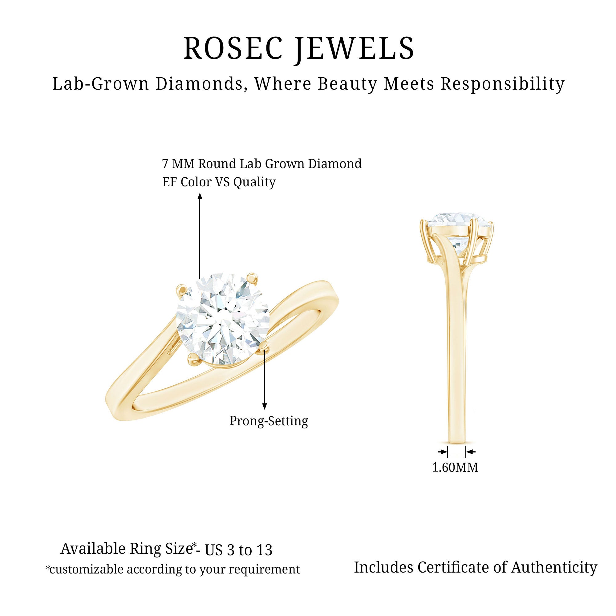 Adorn her finger with the timeless elegance of this Bypass Engagement Ring. Meticulously crafted, this Solitaire Ring showcases a 7 MM Round Shape Diamond set in a secure prong setting in bypass shank. Expertly created with Lab Grown Diamond, this affordable April Birthstone Ring epitomizes our commitment to luxury, quality, and ethical sourcing. We deliver our Diamond Ring in a premium and easy-to-use box which can later on be used to store your ring when not in use. This Round cut Diamond Ring makes a perfect Valentines Day gift for girlfriend, 1st anniversary gift for wife, birthday gift for her, and graduation gift for women.