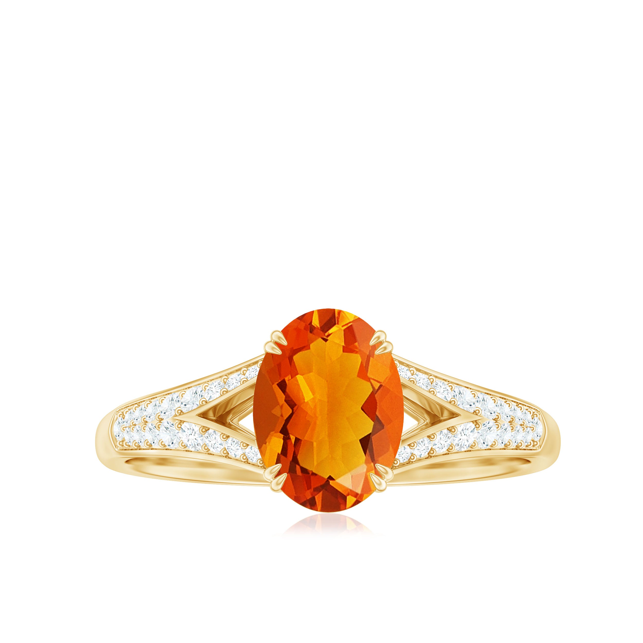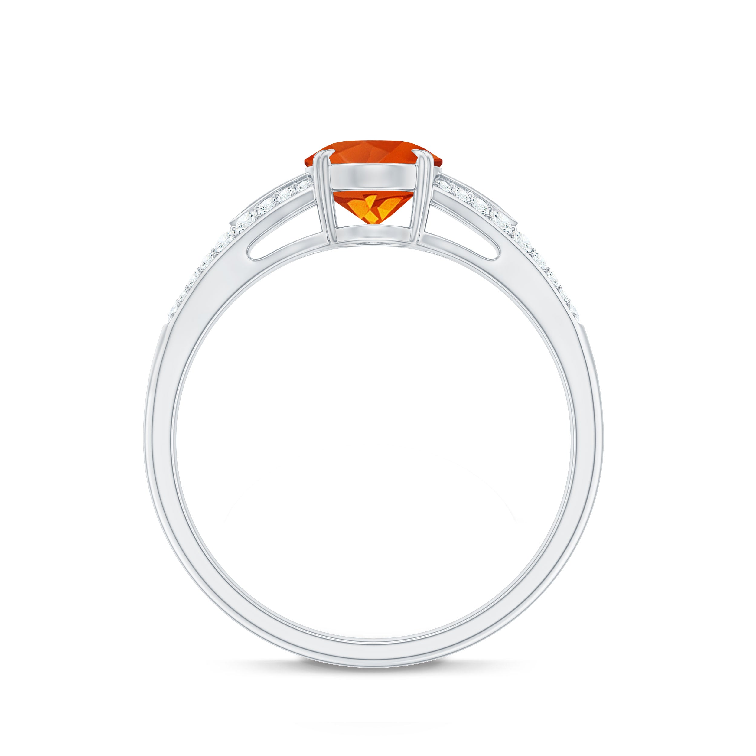 Enhance your appearance with the striking allure of this Fire Opal and Diamond Ring. Features a 6X8 MM oval cut fire opal, rated with AAA quality. Nestled in secure double claw setting, the fire opal takes center stage in a design that harmoniously fuses romance with a contemporary twist. The split shank band introduces a delicate detail, gracefully parting on either side to draw attention to the centerpiece. Adorned with small round cut diamonds, the band glimmers softly without overshadowing the opals vibrant radiance. Crafted for comfort and with meticulous attention, this Fire Opal Engagement Ring is ideal for someone who values subtle intricacies and meaningful design. It is offered in US sizes 3 to 13, ensuring you can find the ideal fit. Every aspect of this Split Shank Engagement Ring is thoughtfully designed, and it arrives in a signature jewelry box, making it ready to present for a memorable occasion. For those who cherish timeless elegance with significant beauty, this Oval Engagement Ring is a considerate and breathtaking selection.