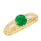 Natural Emerald Diamond Antique Looking Engagement Ring