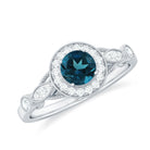5mm London Blue Topaz Antique Engagement Ring with Diamond Halo