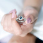Celebrate a love that is both enduring and radiant with this exquisite Halo Engagement Ring. At the heart of this timeless piece lies a 5 MM round London Blue Topaz, skillfully cut to exhibit remarkable brilliance and fire. Surrounded by a dazzling halo of petite diamond stones, the centerpiece shines even brighter, capturing light from every angle and producing a truly stunning glow. What distinguishes this Antique Looking Engagement Ring is its vintage-inspired allure. The band features intricate beaded accents and additional stones that reflect the elegance of antique jewelry, adding texture and depth without overwhelming the overall design. This Vintage Engagement Ring strikes a beautiful balance between classic romance and modern style, thoughtfully designed for the bride who appreciates tradition yet forges her own path. The halo design enhances the presence of the moissanite, offering a soft, feminine silhouette that radiates both luxury and sophistication. Every detail has been carefully crafted to highlight the stones brilliance and symbolize the significance of your commitment. This London Blue Topaz Engagement Ring is presented in a stylish jewelry box, ready for that unforgettable YES moment. Romantic, luminous, and inspired by retro aesthetics, it transcends the definition of a mere ring; it embodies an everlasting promise, elegantly set in a design she will treasure forever.