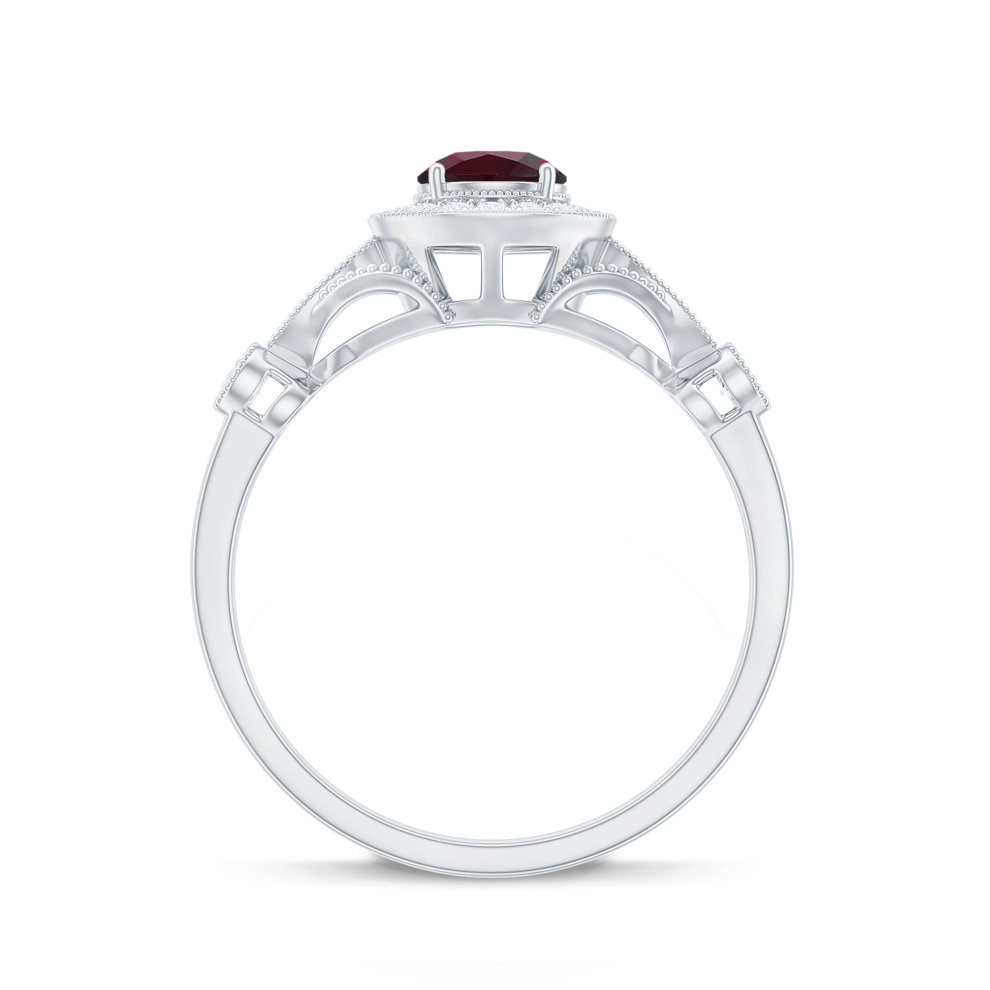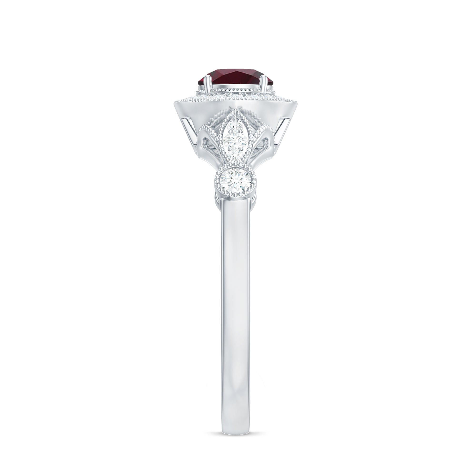 1 CT Antique Rhodolite and Diamond Engagement Ring with Milgrain Details