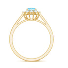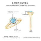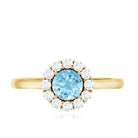 Enhance your beauty with Floating Halo Engagement Ring is embellished with Round Shape Aquamarine Set as a solitaire in a prong setting and Round Shape Diamond in a floating Halo. This Engagement Ring is composed of solid gold.