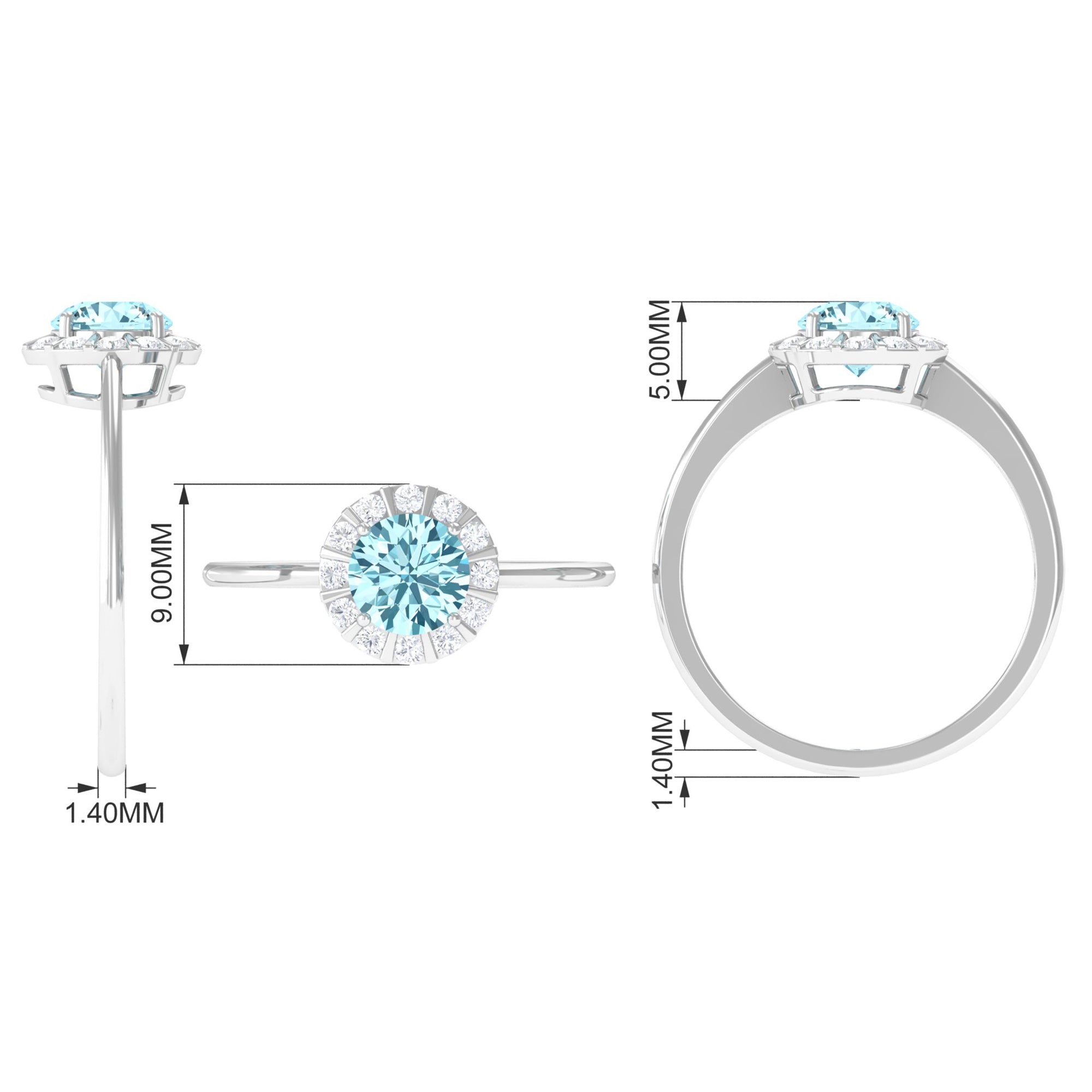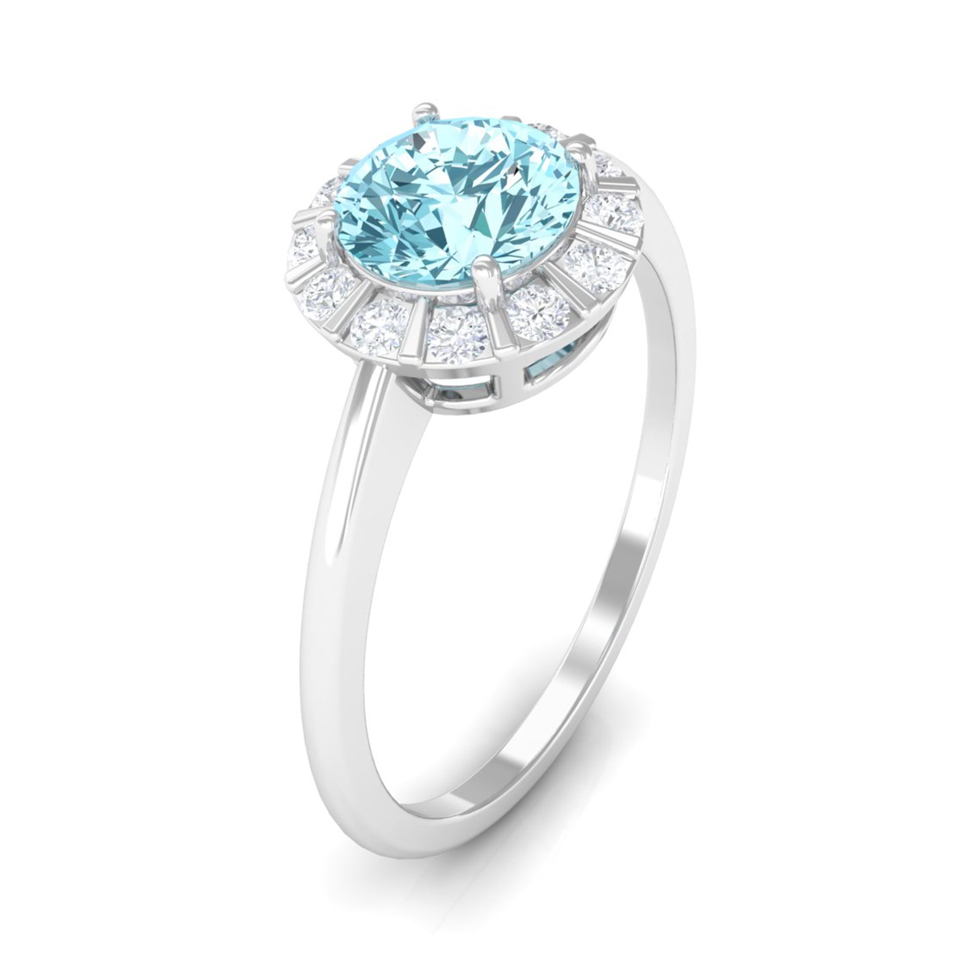 1 CT Aquamarine Engagement Ring with Diamond Floating Halo