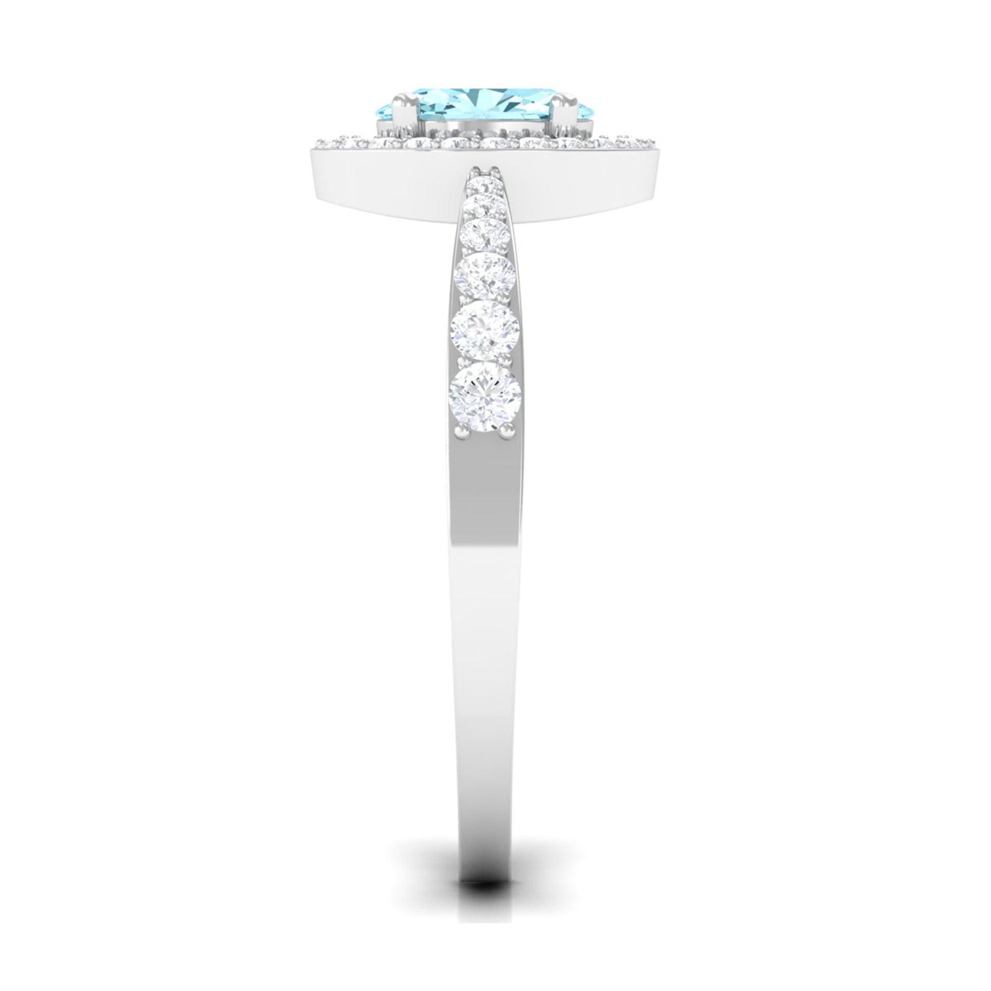 1 CT Aquamarine Engagement Ring with Diamond Halo