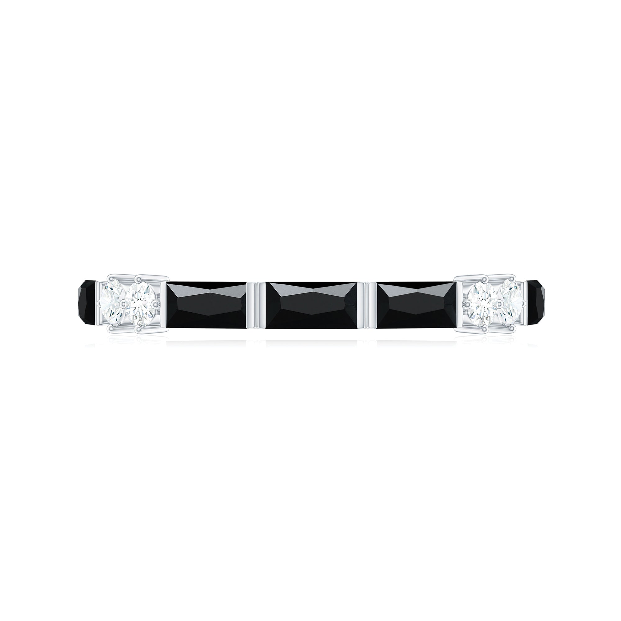 1 CT Baguette Cut Created Black Diamond Half Eternity Ring with Diamond