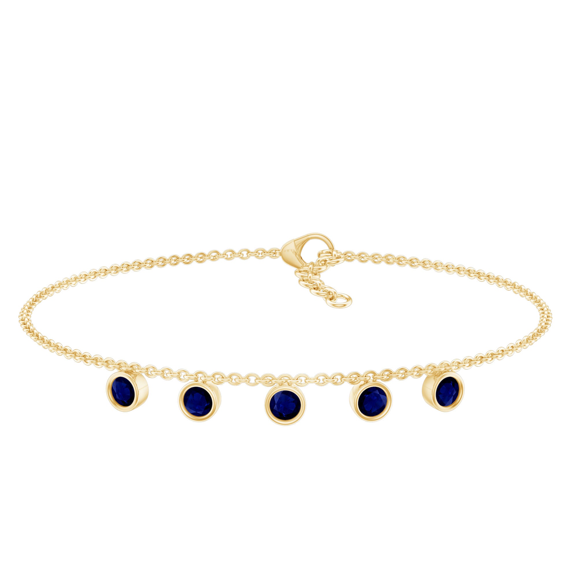 Steal all the attention with Station Chain Bracelet featuring Round Cut Blue Sapphire set in Bezel Setting and adorned in Solid Gold. This is a perfect for daying it on her birthday.