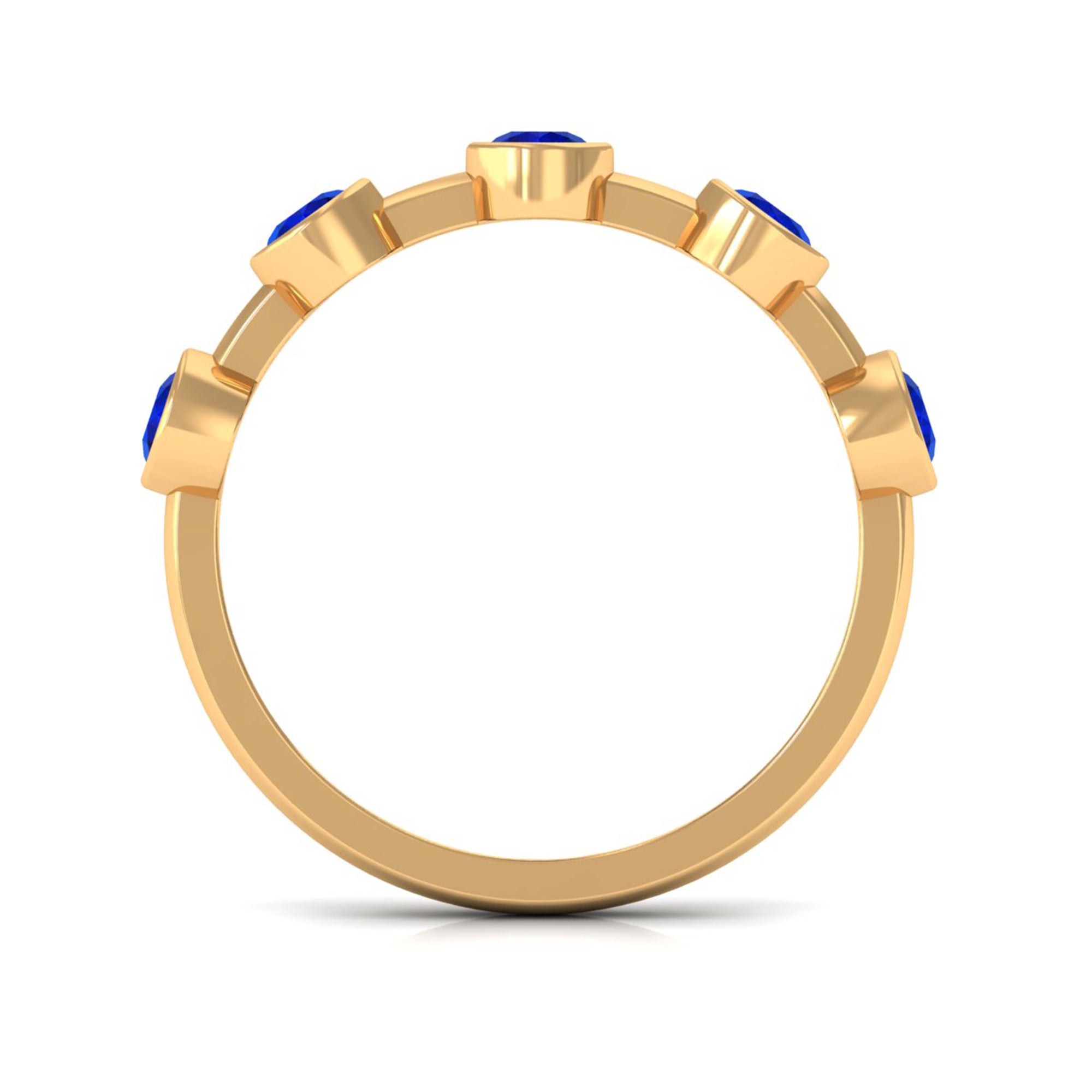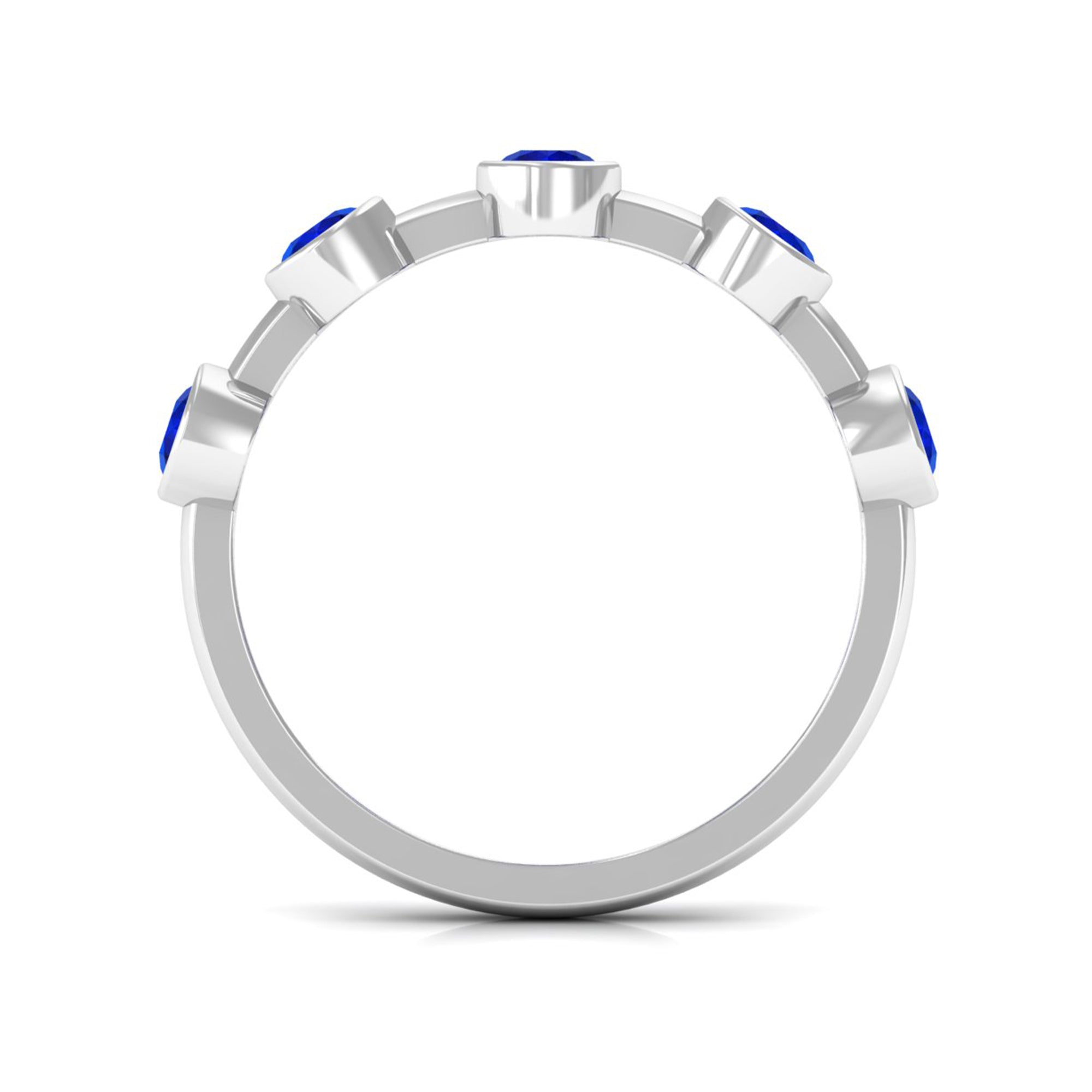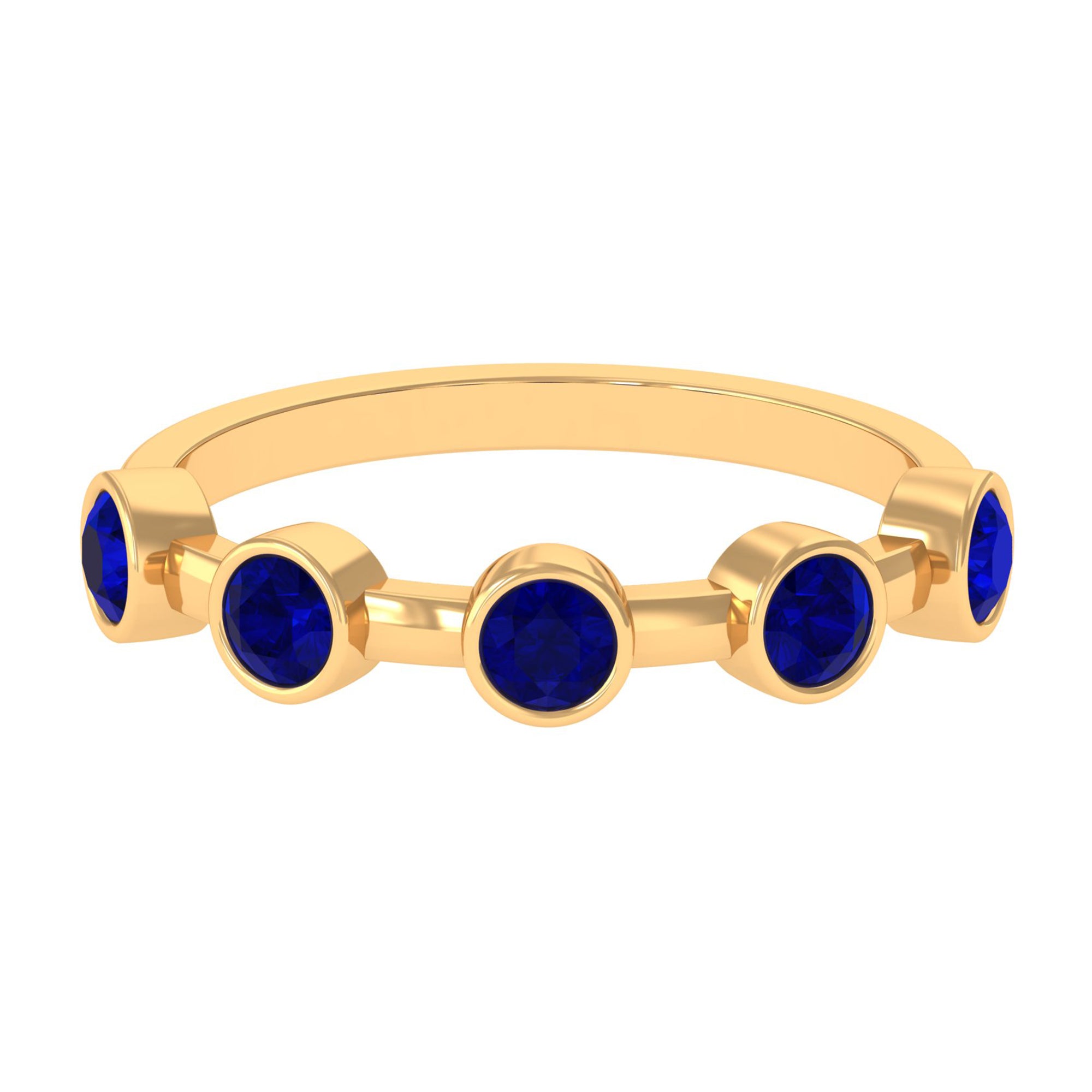 Get this simple yet stunning Blue Sapphire Ring, showcasing Round Shape Blue Sapphire spaced out half way down the band secured in Bezel Setting. The Sapphire Ring makes an excellent type of ring that will elevate any outfit with ease. Make her feel out of this world with this September Birthstone Ring.