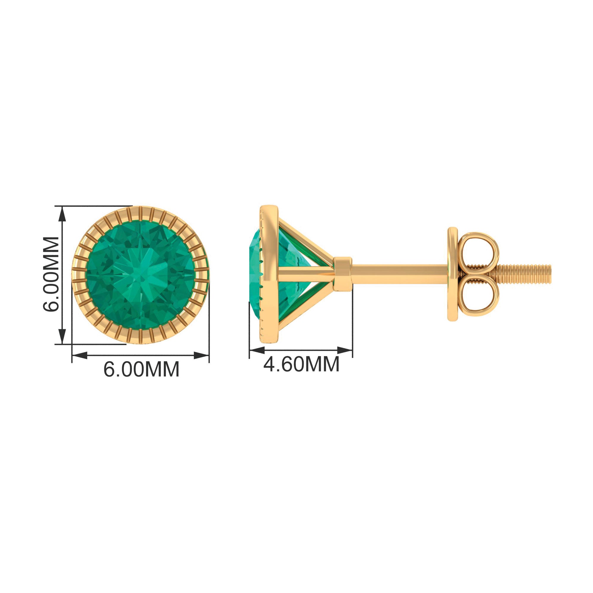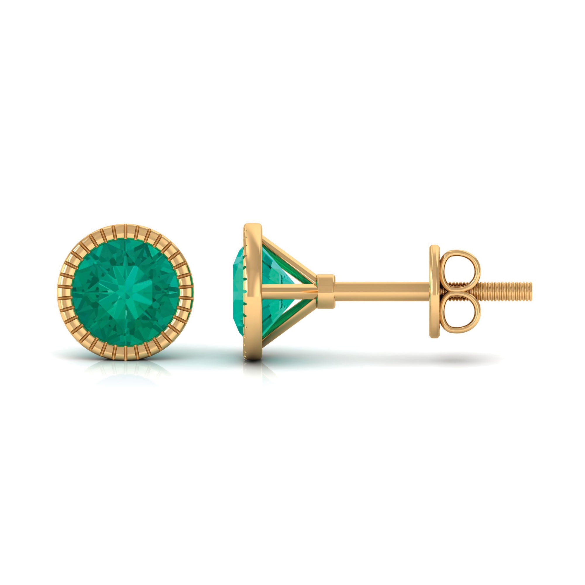 1 CT Bezel Set Round Emerald Solitaire Stud Earrings