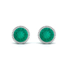 Dazzle on your wedding day and beyond with our Solitaire Emerald Stud Earrings. Brilliant Round Emerald in a unique Bezel Setting.