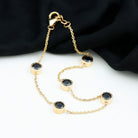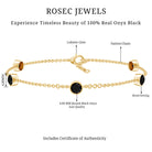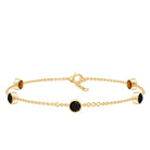 This elegant Station Chain Bracelet boasts a modern and trendy design. The bracelet features five brilliant round cut black onyx stones set in a bezel setting, creating a stunning visual effect. Made from solid gold, this Five Stone Chain Bracelet is a must-have addition to your jewelry collection.