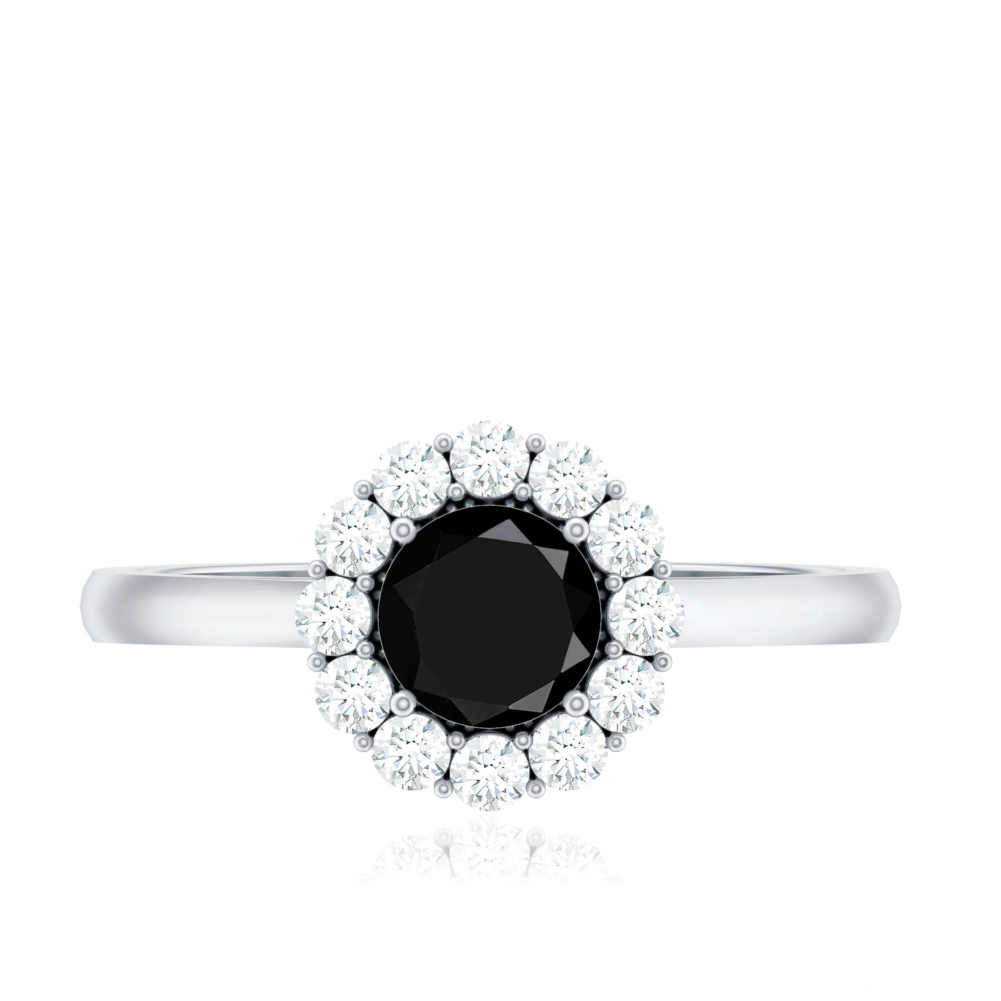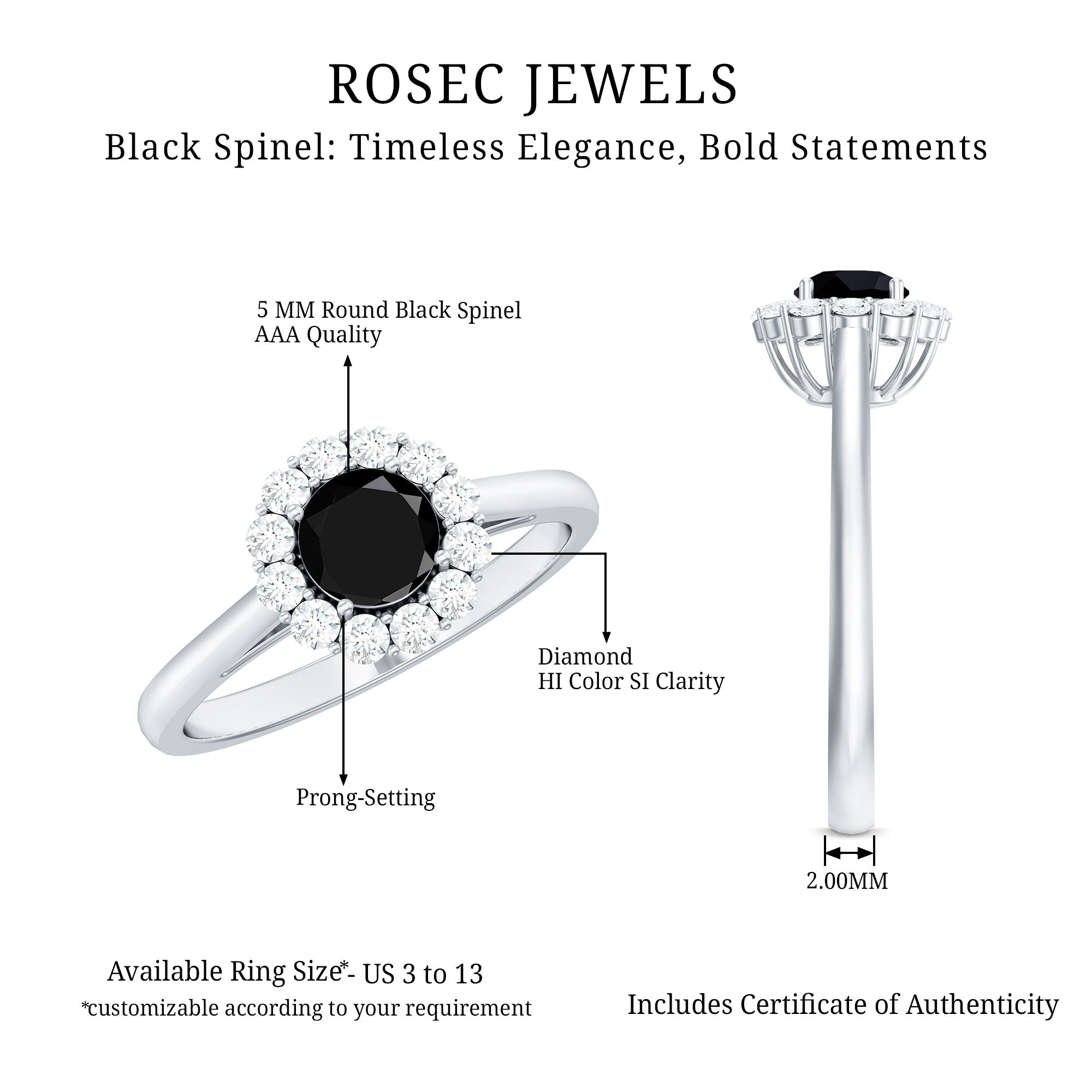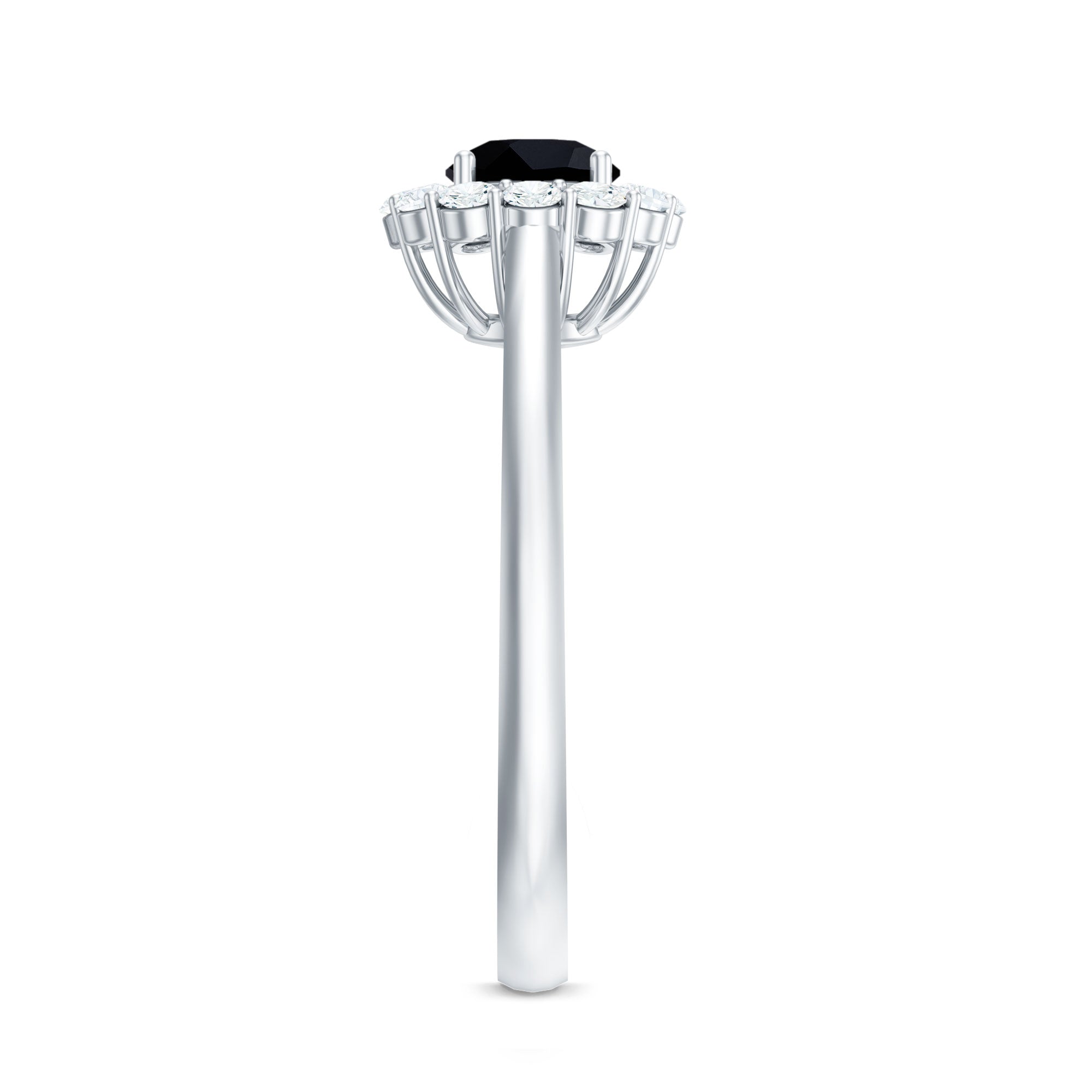 1 CT Black Spinel and Diamond Floating Halo Engagement Ring