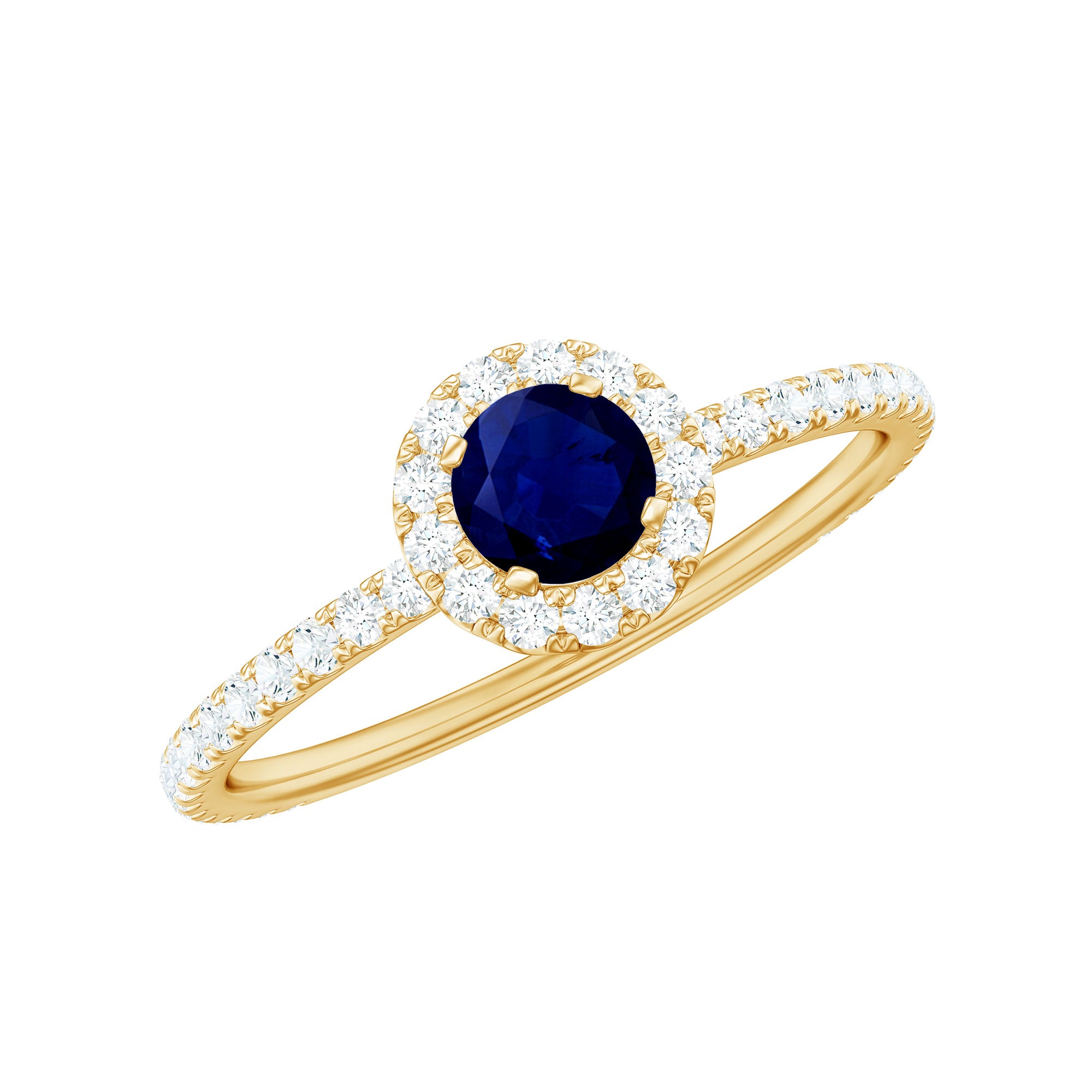 This Engagement Ring, a classic piece of jewelry, is adorned with a Round Shape Blue Sapphire as the center stone, securely set in a prong setting. The ring also features Diamond accents that add a touch of sparkle. This ring is perfect for an engagement, wedding or a special occasion.