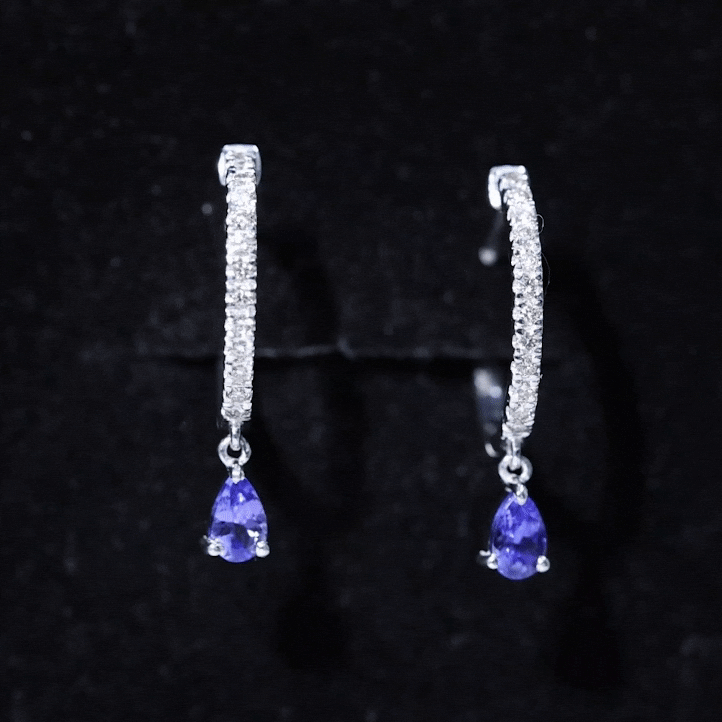 1 CT Blue Tanzanite Teardrop Hoop Earrings with Diamond Accent