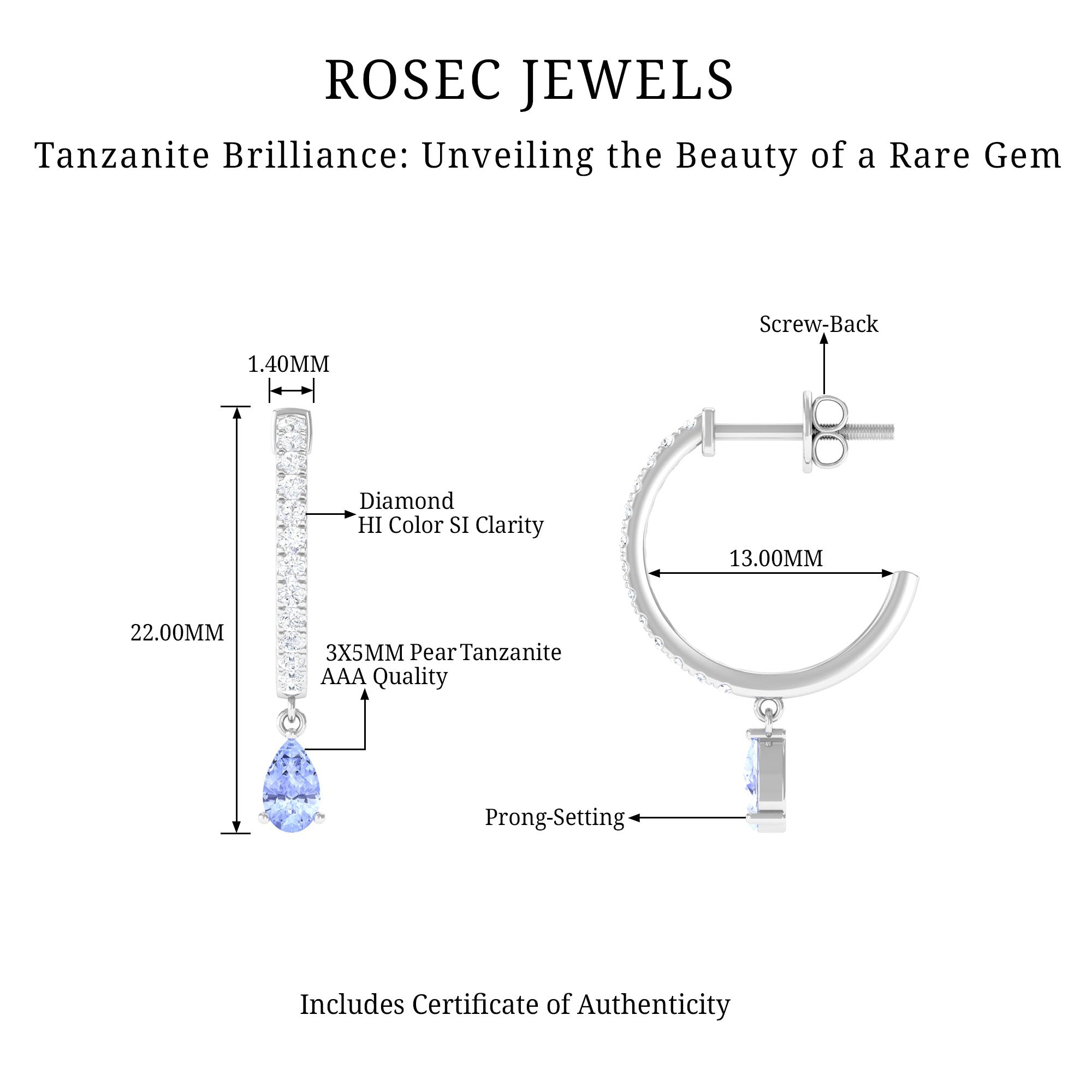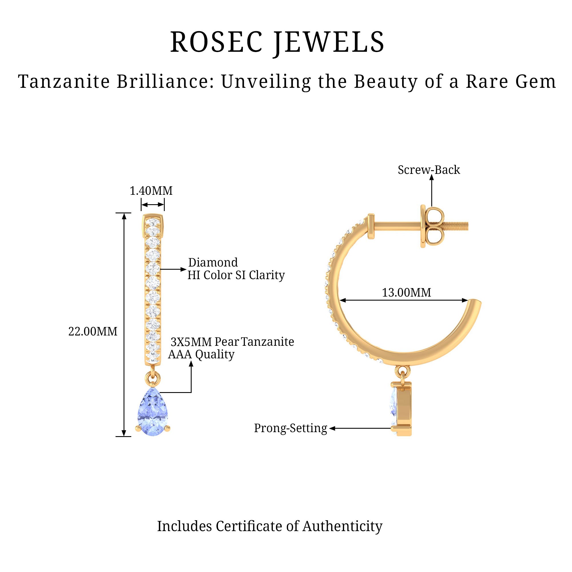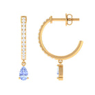 Complete your outfit with these stunning Teardrop Hoop Earrings adorned with Pear Cut Tanzanite and Round Shape Diamond. These Hoop Drop Earrings are crafted with Solid Gold, exuding elegance and glamour.