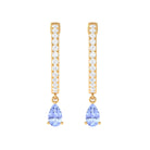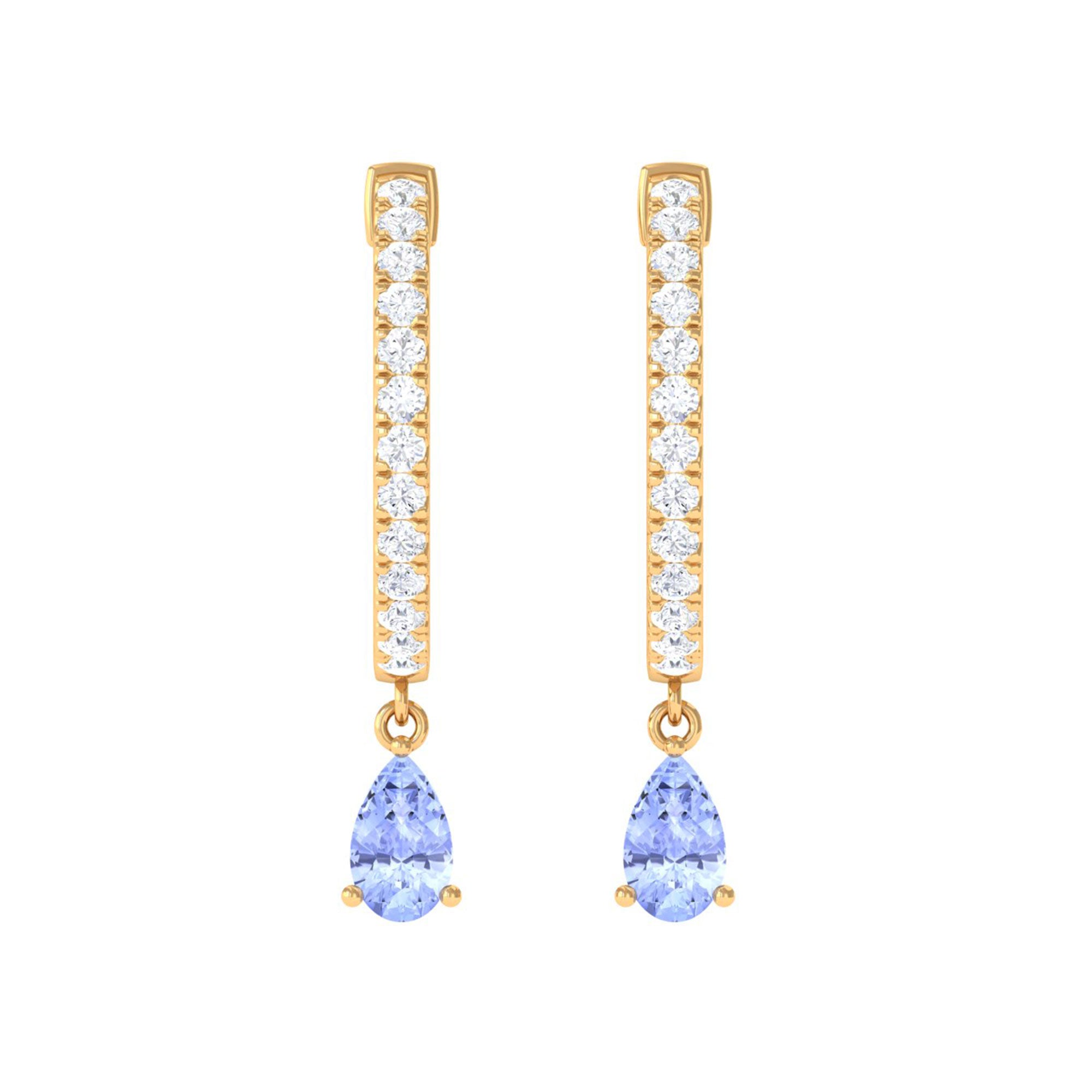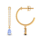 Complete your outfit with these stunning Teardrop Hoop Earrings adorned with Pear Cut Tanzanite and Round Shape Diamond. These Hoop Drop Earrings are crafted with Solid Gold, exuding elegance and glamour.