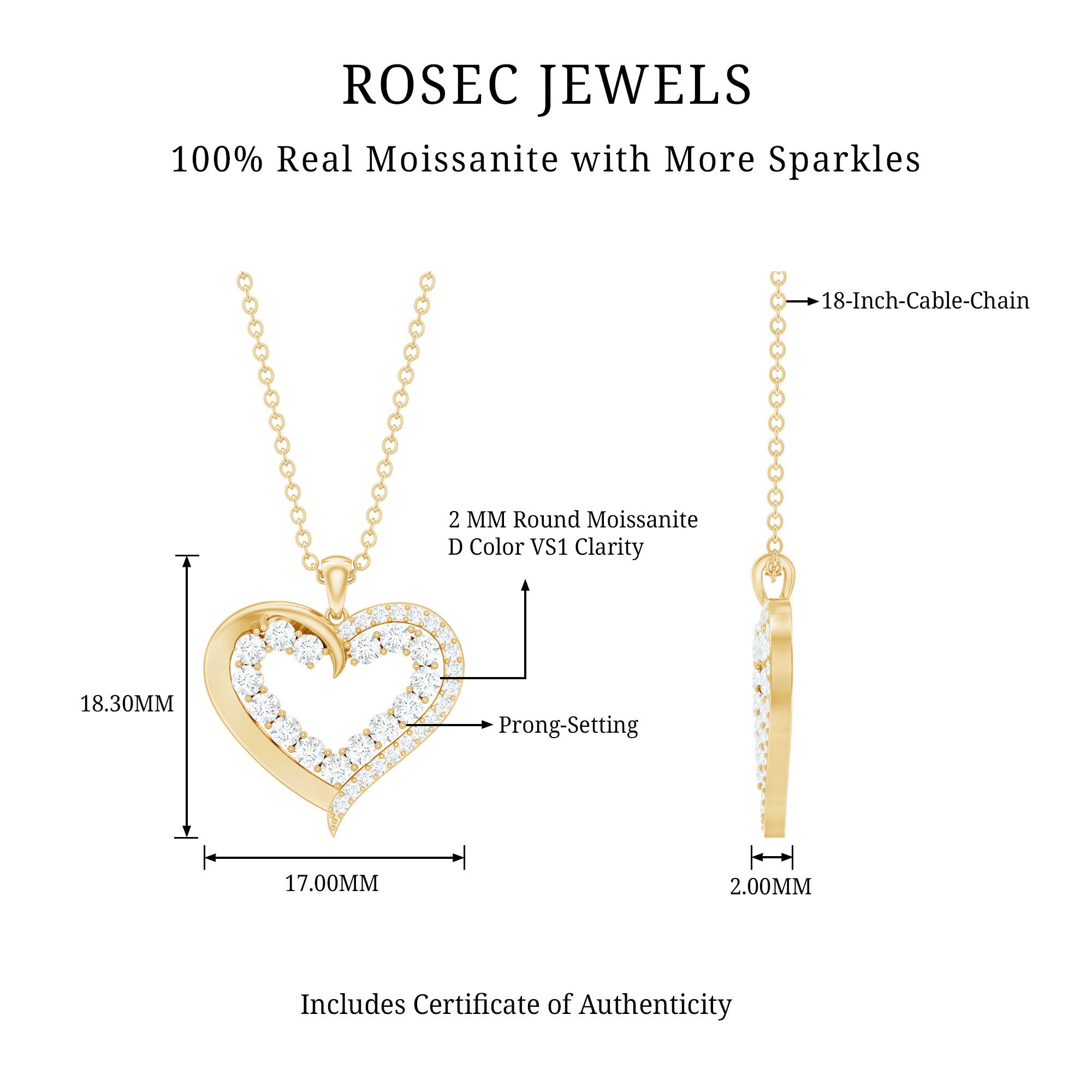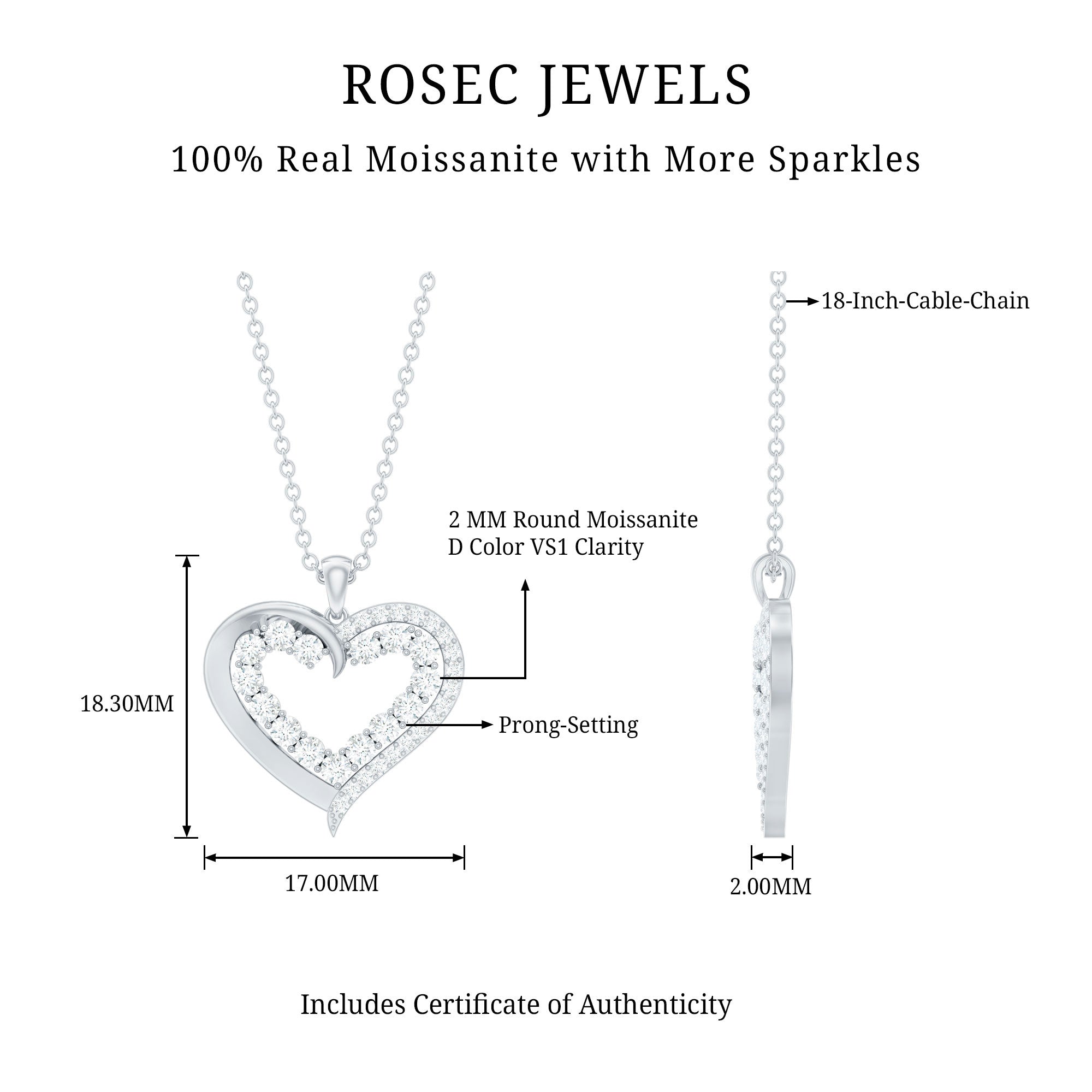 1 CT Certified Moissanite Heart Pendant in Prong Setting