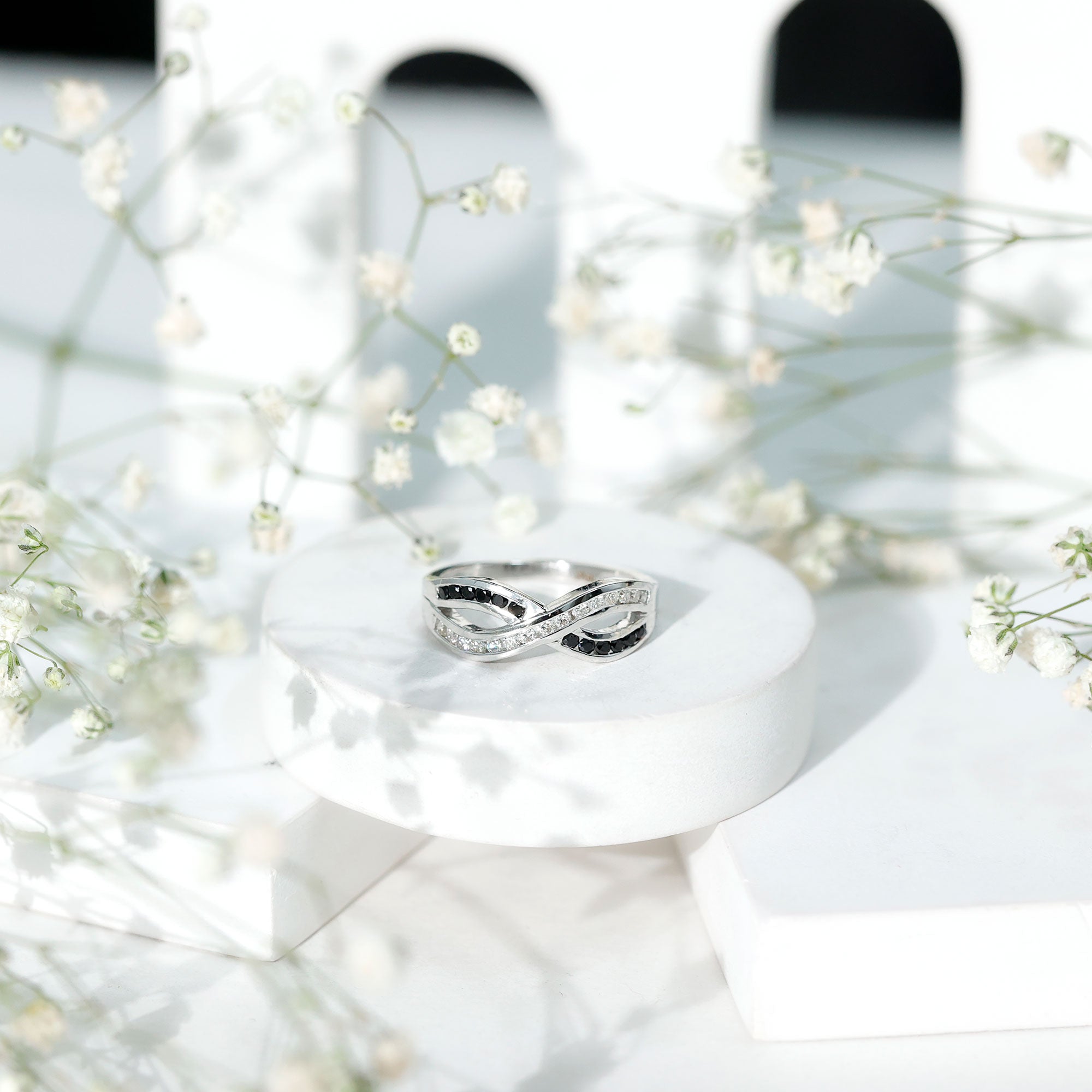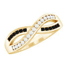 Surprise your beloved with this this trendy Infinity Ring adorned with sparkling Round Shape Created Black Diamond and Diamond in Channel Setting. Crafted with Solid Gold to offer it a luxe appeal.