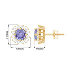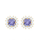 Created for Women in Solid Gold, it is known as Classic Earrings with Round Shape Tanzanite embellished in Prong Setting with Round Shape Diamond stones as Halo Stud embellished in Prong Setting.