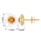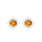 1 CT Classic Citrine Stud Earrings with Diamond Halo