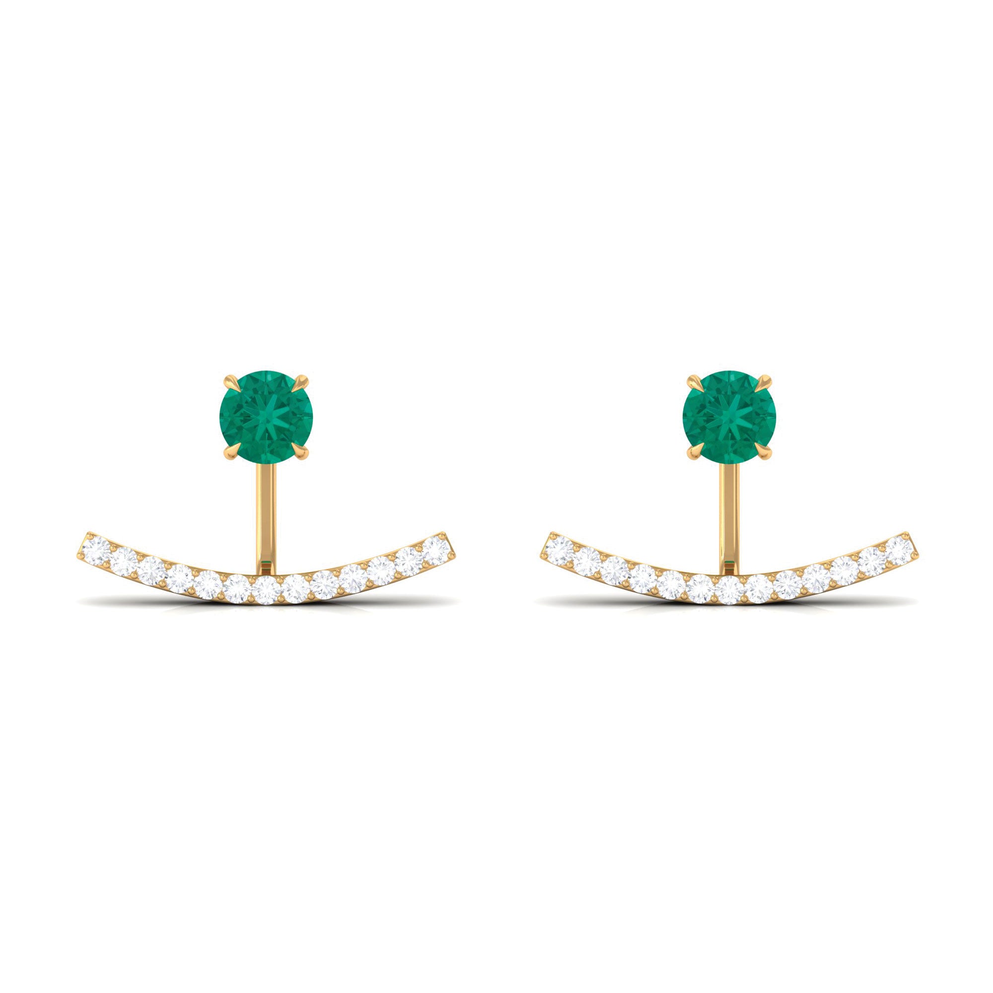 Add sophistication to your look with these classic Emerald and Diamond Jacket Earrings. The earrings feature a round-cut emerald in the center, surrounded by dazzling Diamonds in a jacket-style setting. Perfect for special occasions or everyday wear, they are sure to become a cherished piece in your jewelry collection. Experience the beauty of handcrafted jewelry with Rosec Jewels. These earrings make a great gift for a loved one or a special treat for yourself.
