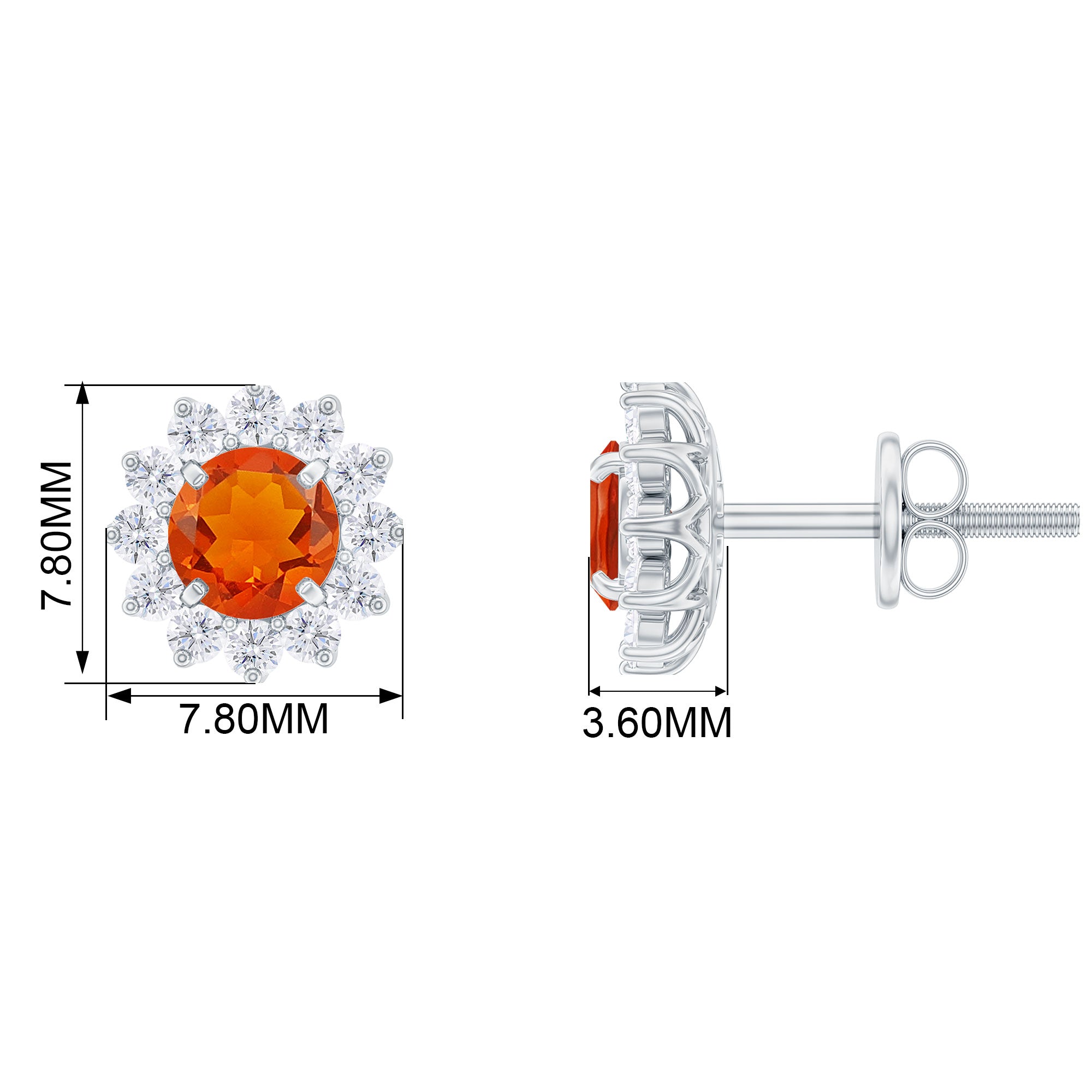 1 CT Classic Fire Opal Stud Earrings with Diamond Halo