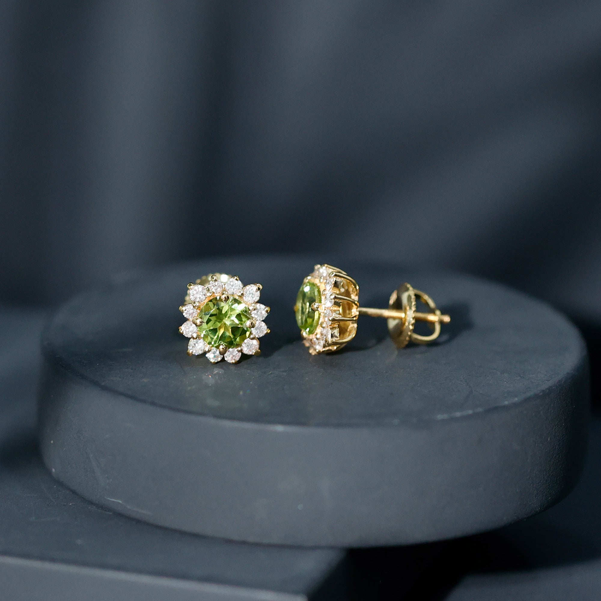 1 CT Classic Peridot Stud Earrings with Diamond Halo