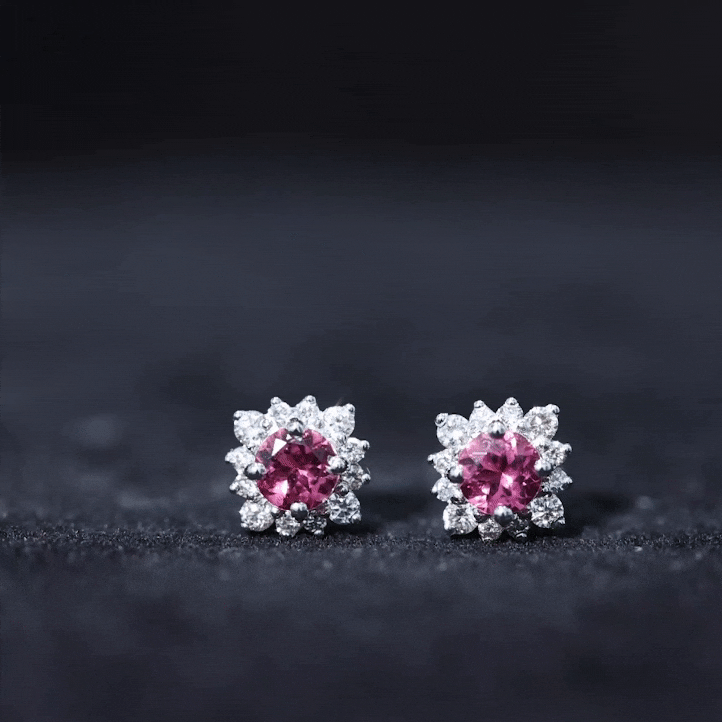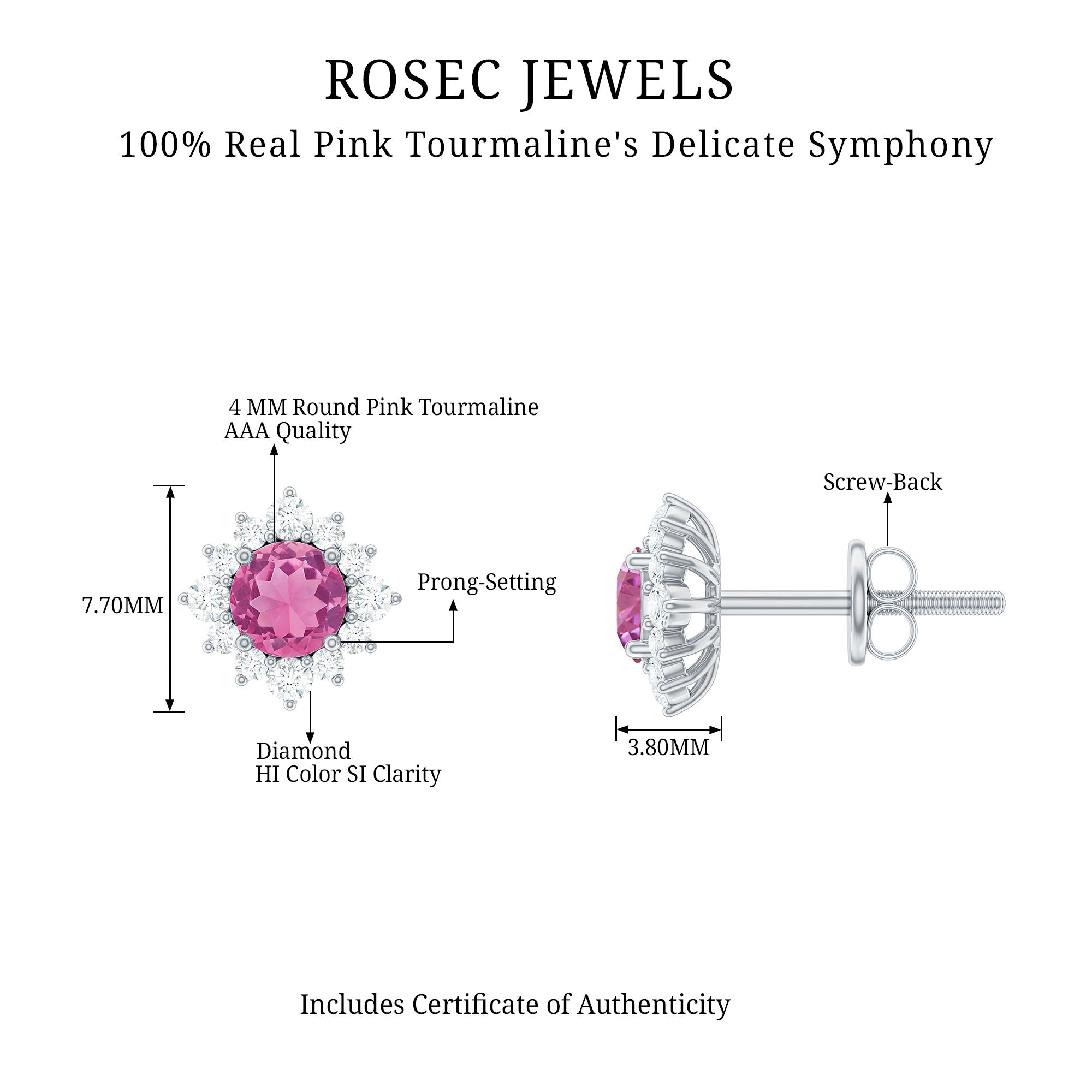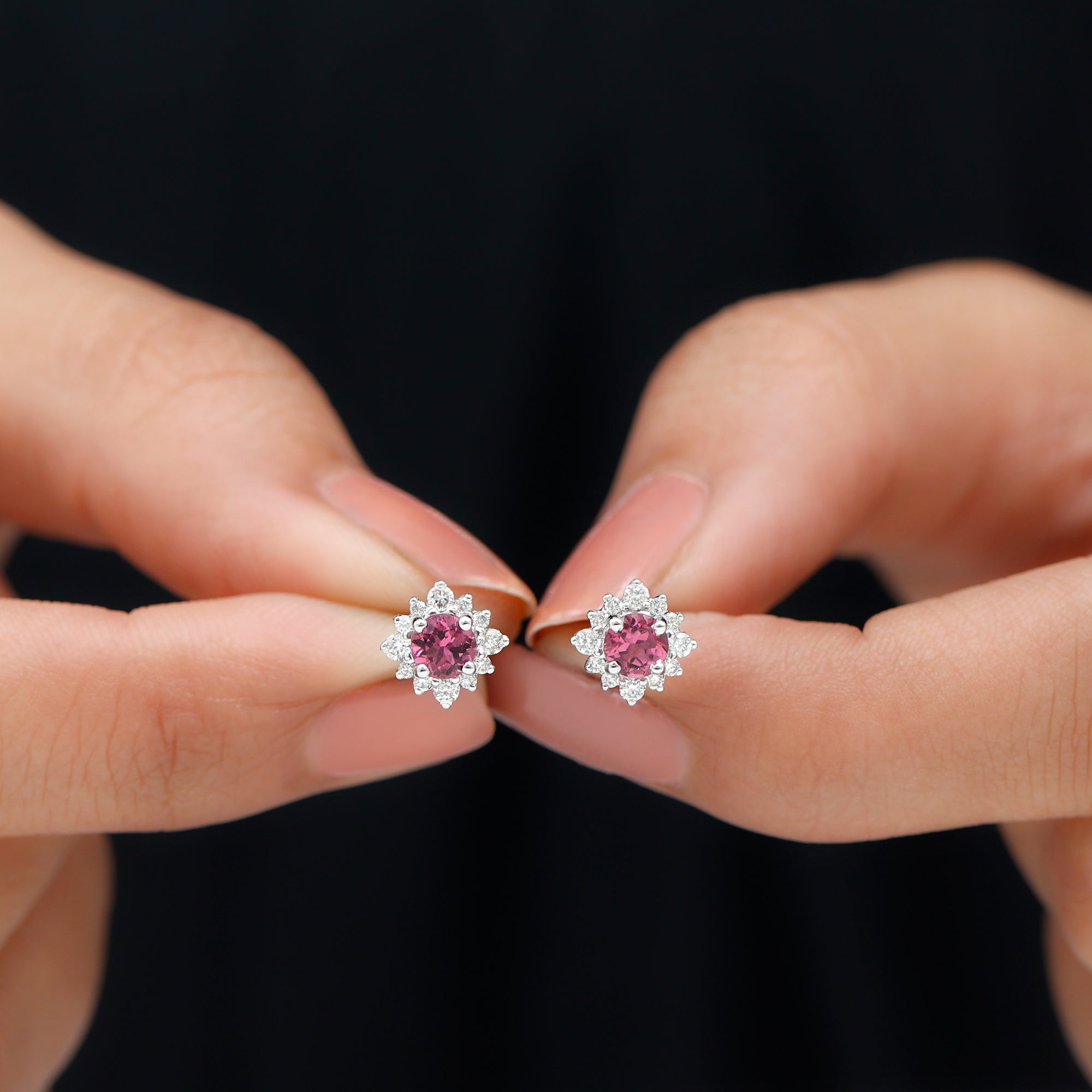 1 CT Classic Pink Tourmaline Stud Earrings with Diamond Halo