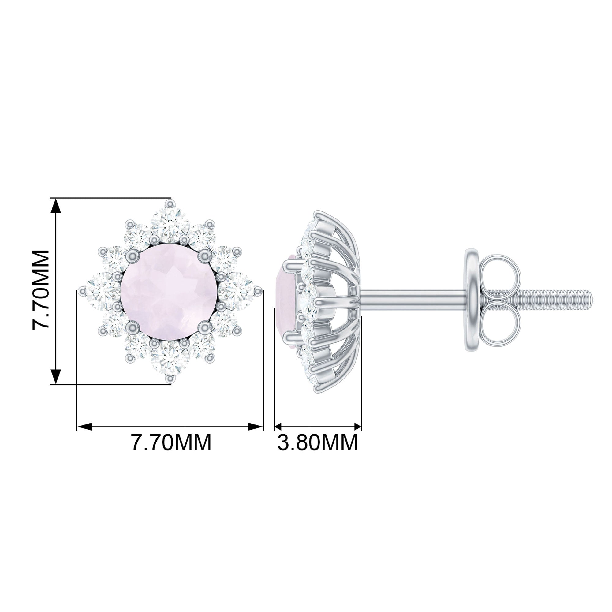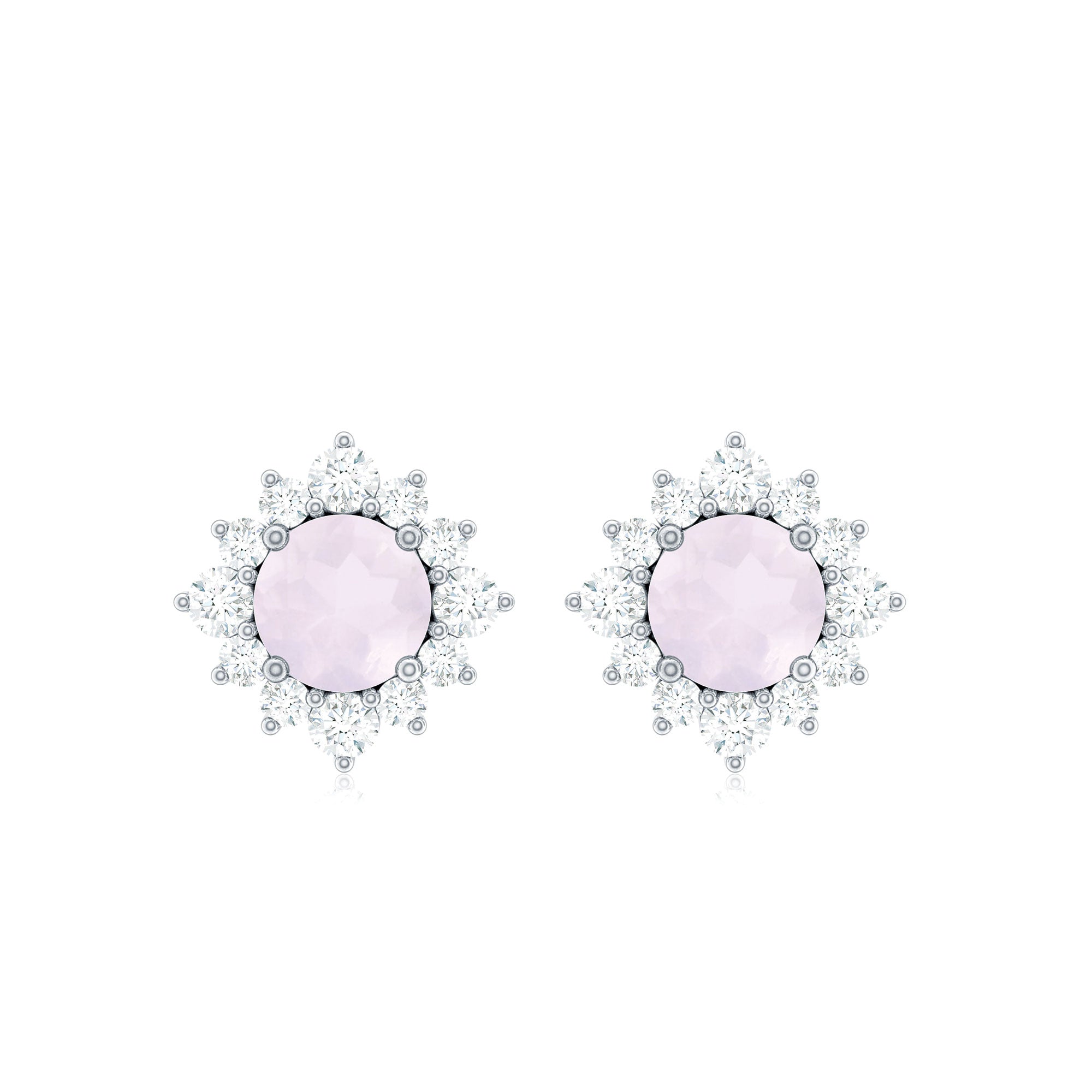 1 CT Classic Rose Quartz Stud Earrings with Diamond Halo