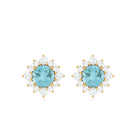 Look as stunning as ever while flaunting this pair of Halo Stud Earrings featuring a Round Shape Sky Blue Topaz Gemstone in the center set in prong setting encircled by a Halo of sparkling Round Shape Diamond. The Classic Stud Earrings beautifully crafted in Solid Gold will make you the center of attraction at all your parties.