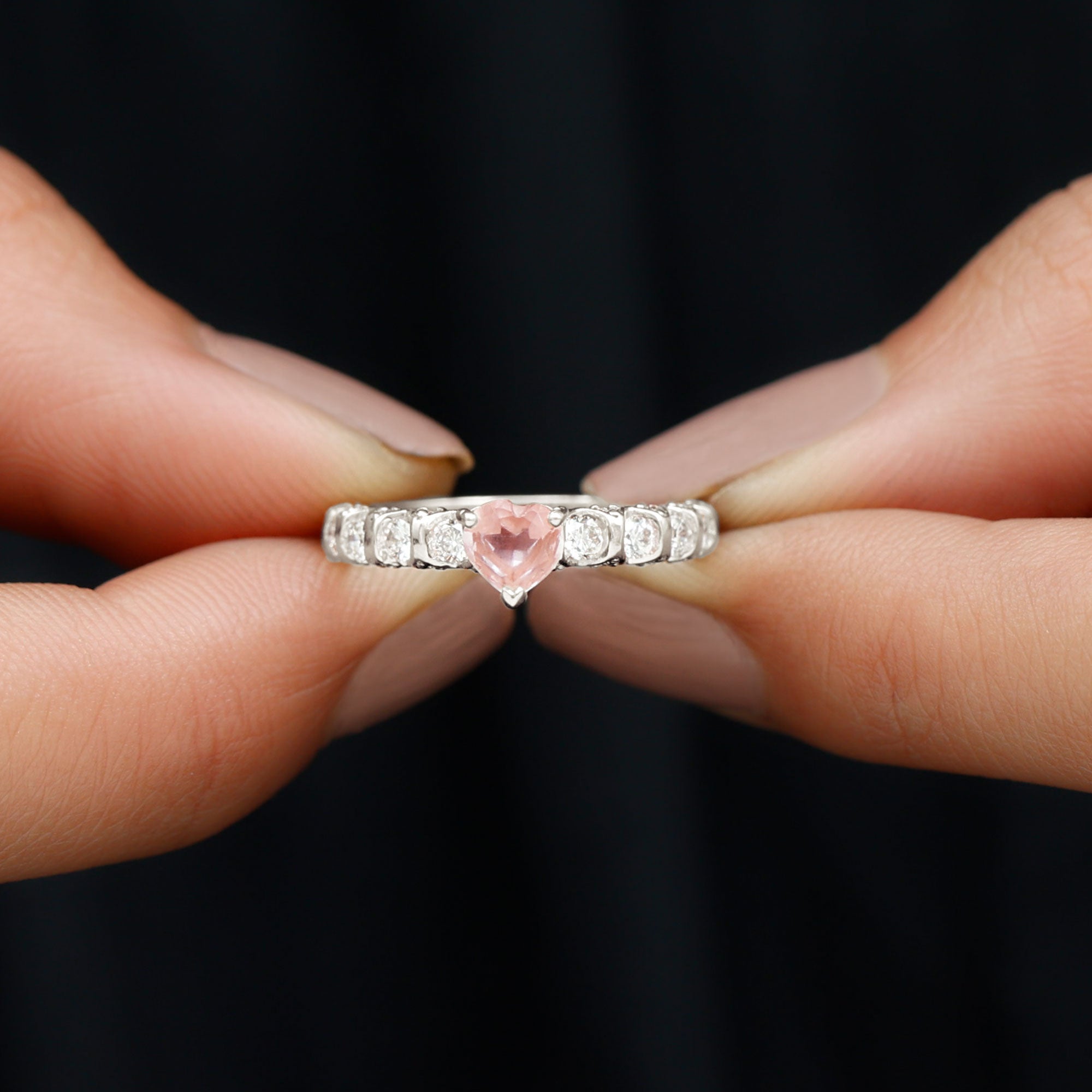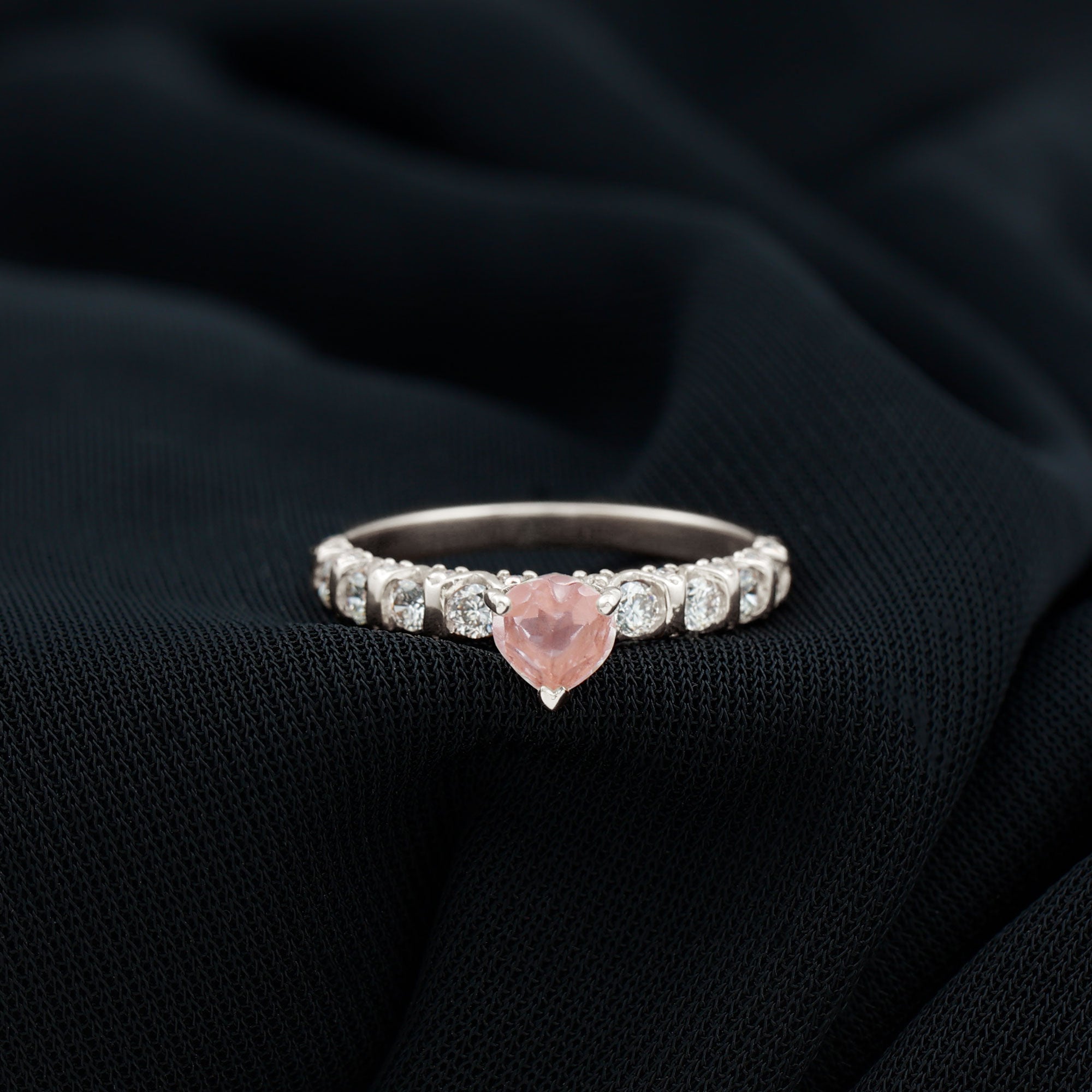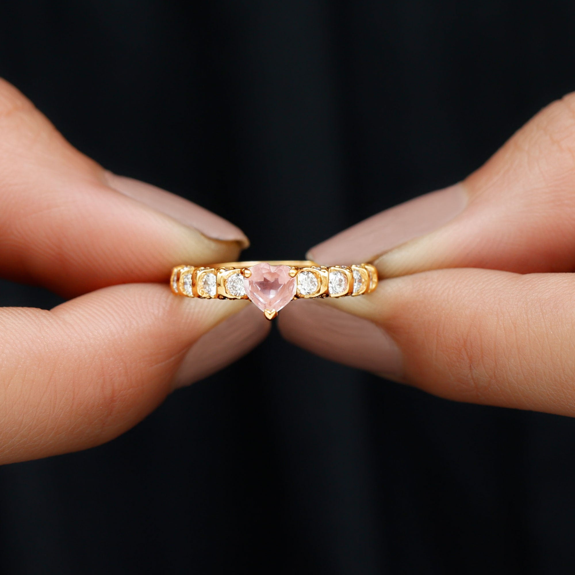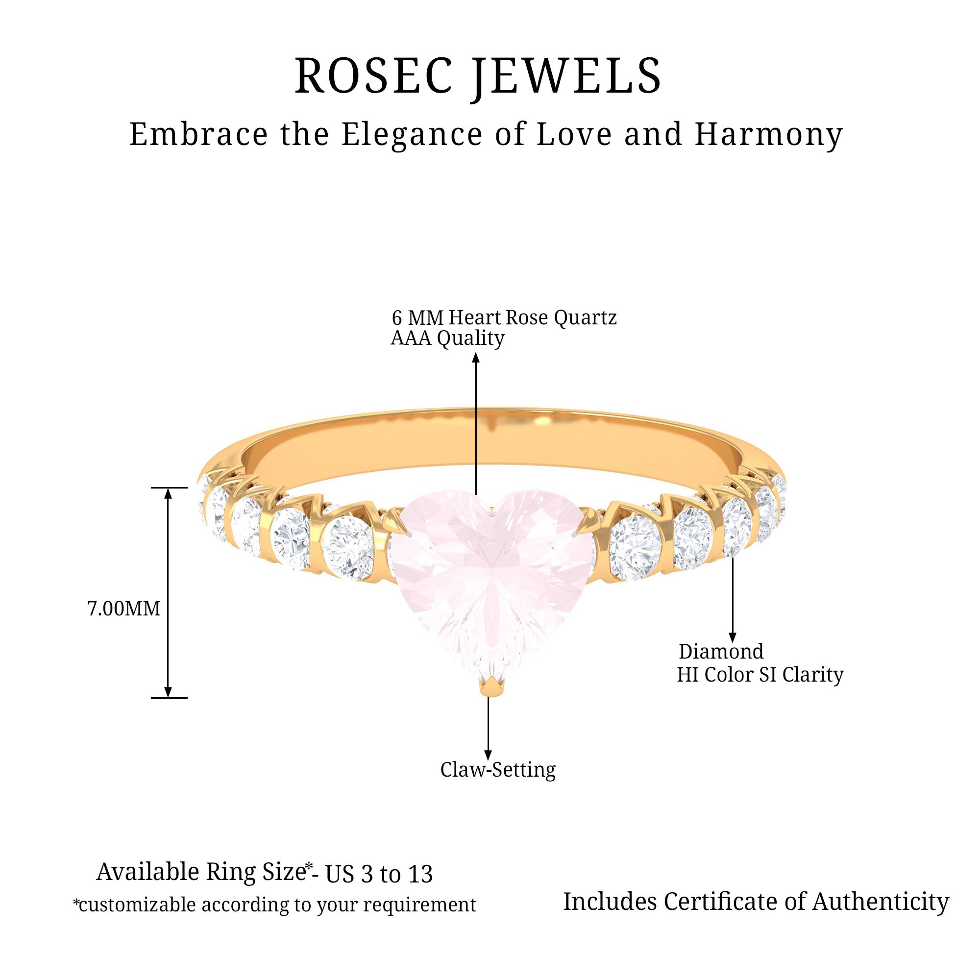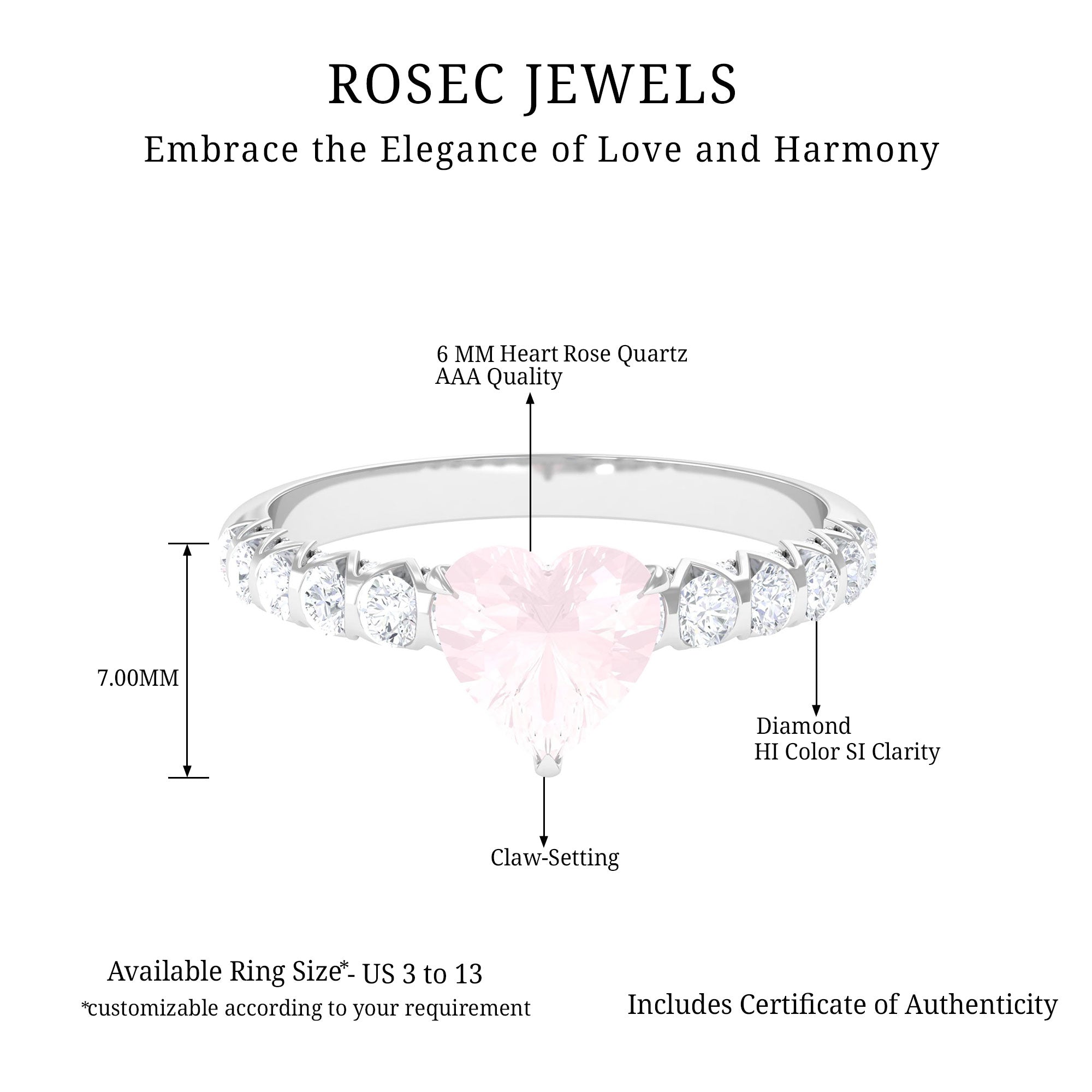 1 CT Claw Set Heart Shape Rose Quartz and Diamond Engagement Ring