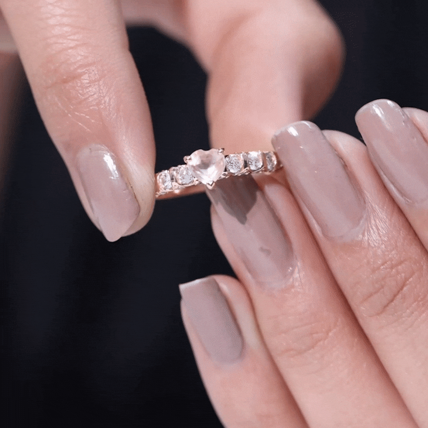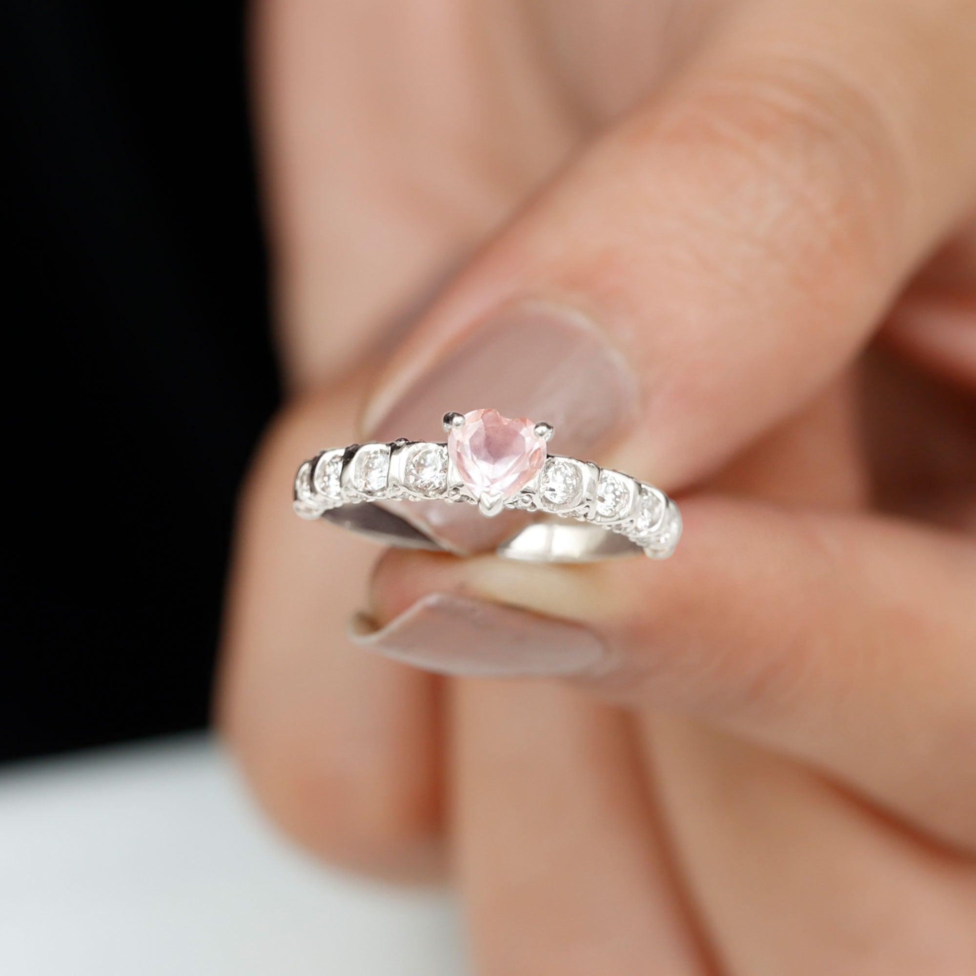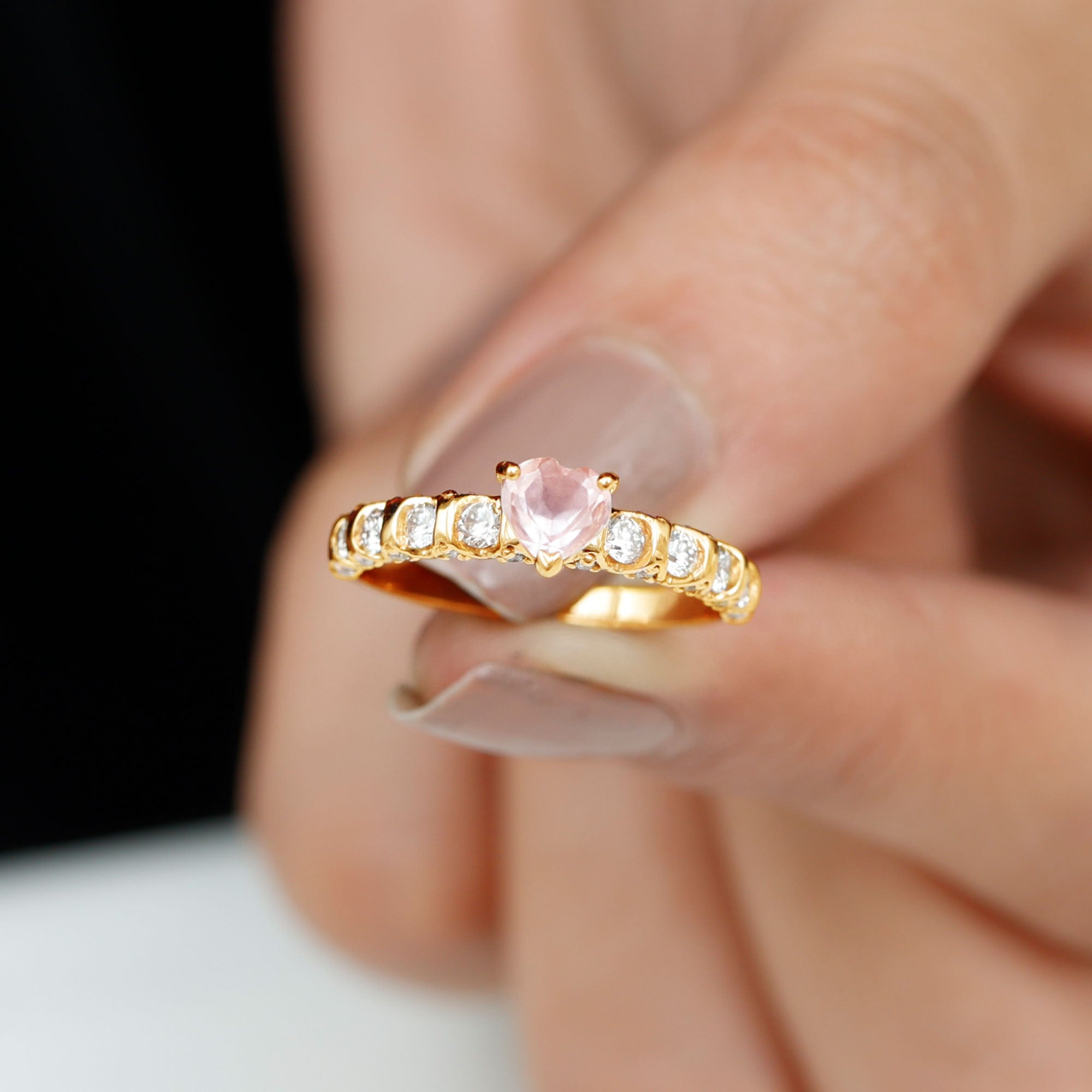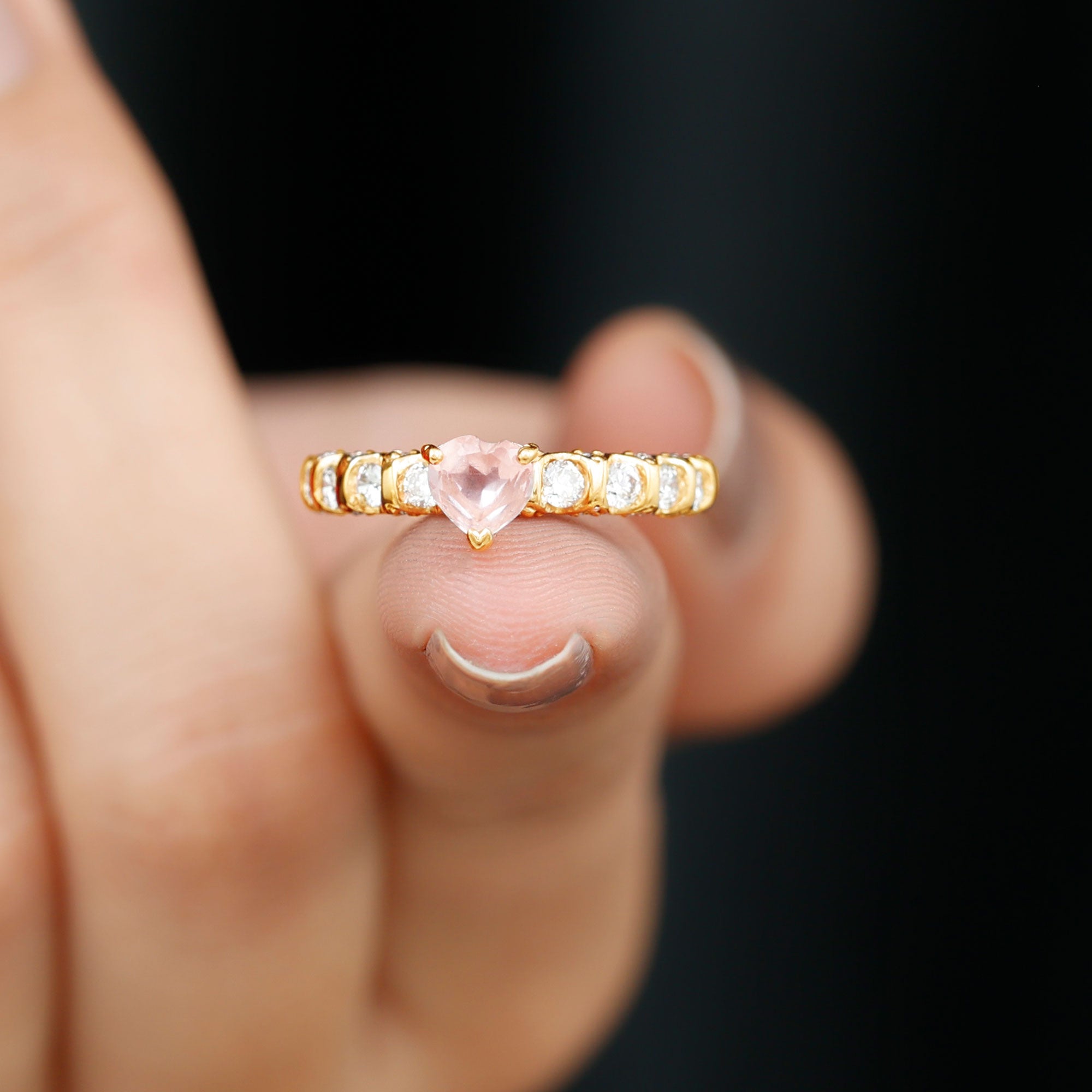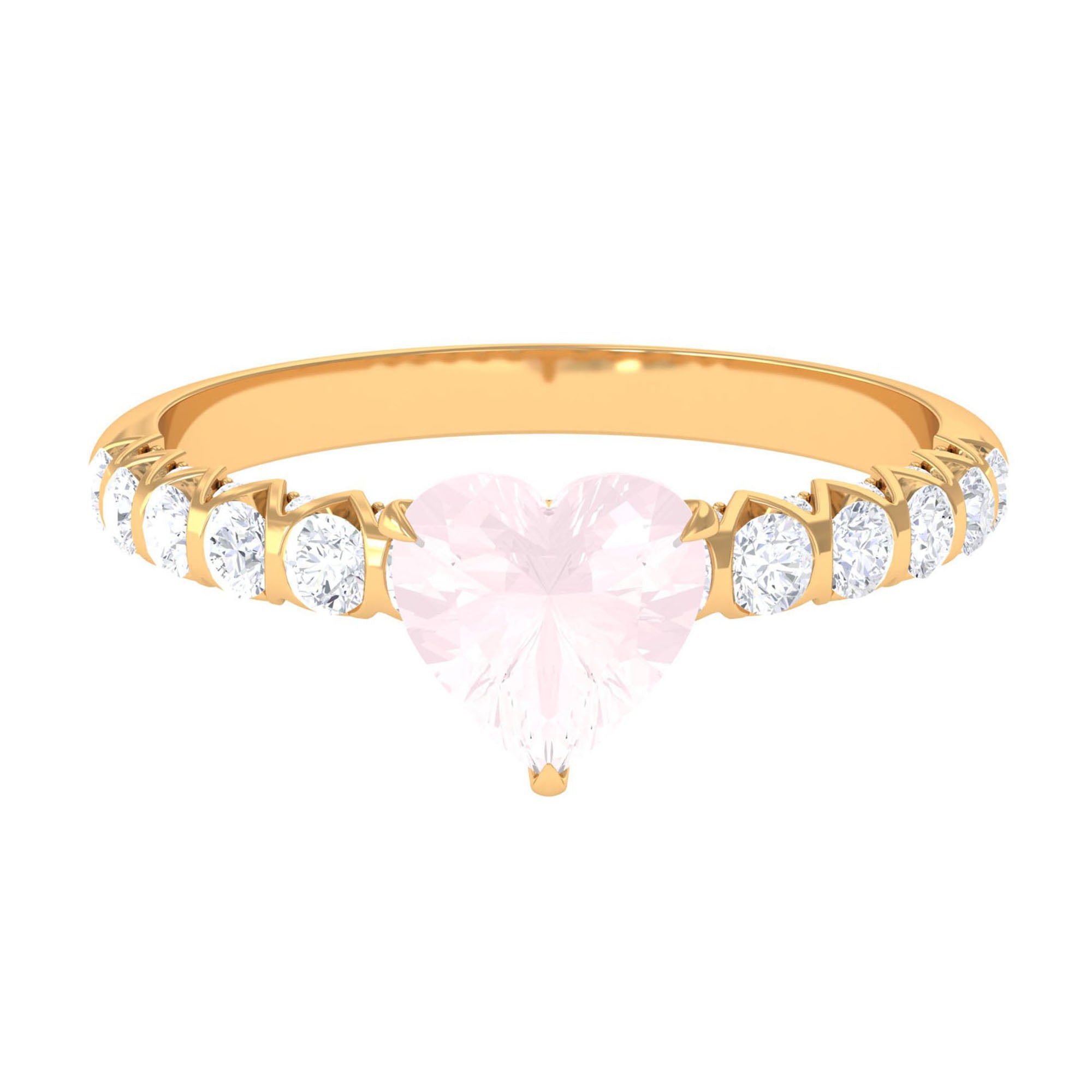 1 CT Claw Set Heart Shape Rose Quartz and Diamond Engagement Ring