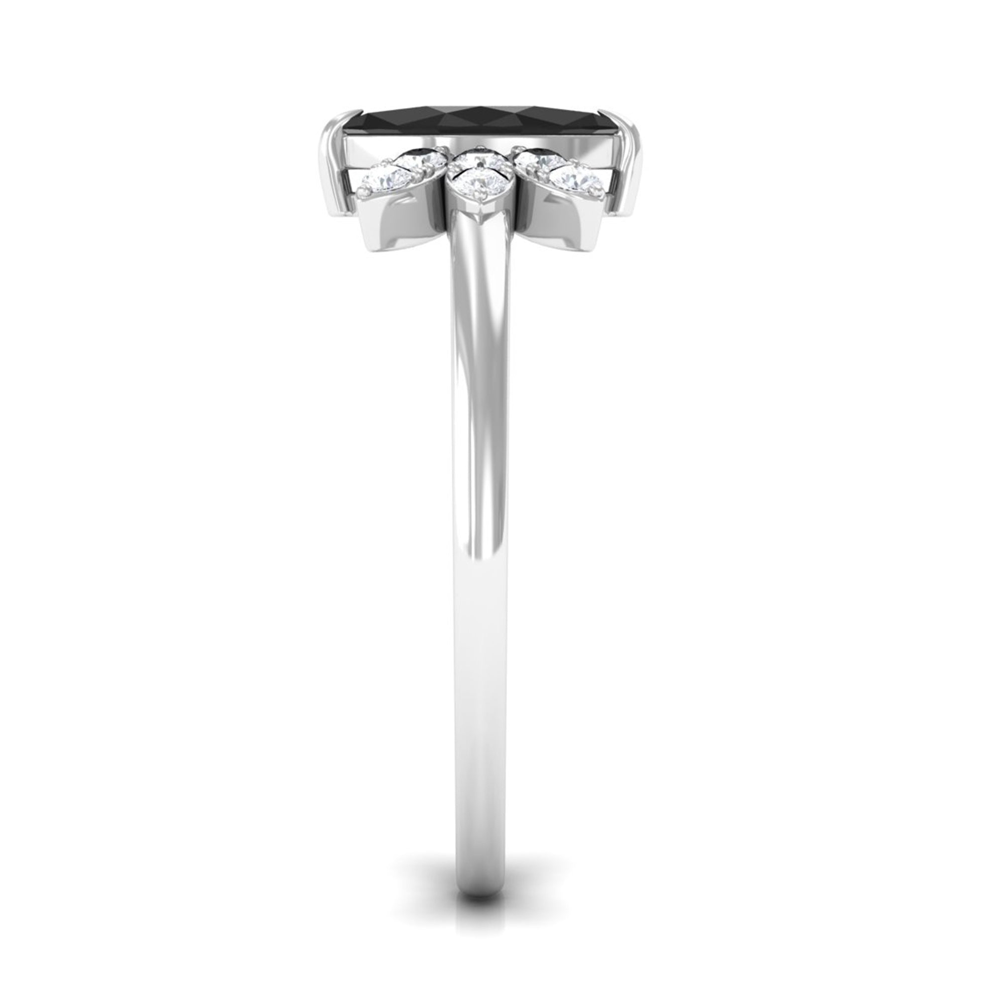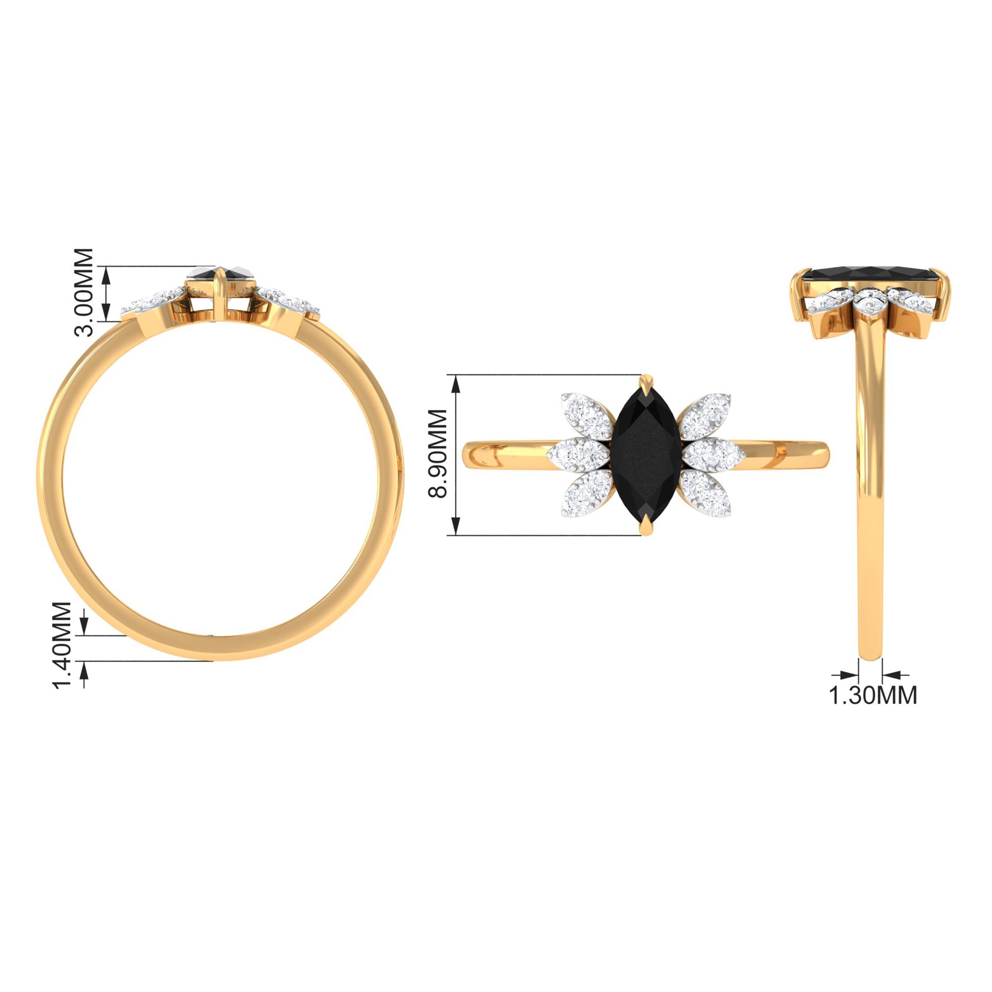1 CT Claw Set Marquise Black Spinel and Diamond Promise Ring