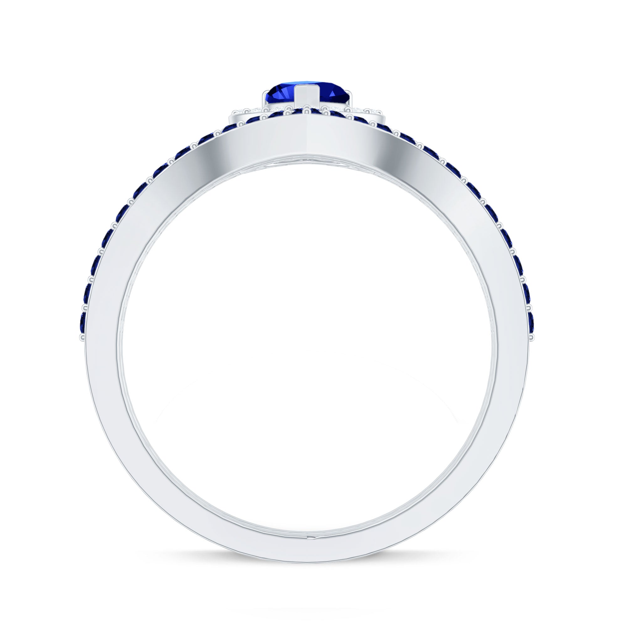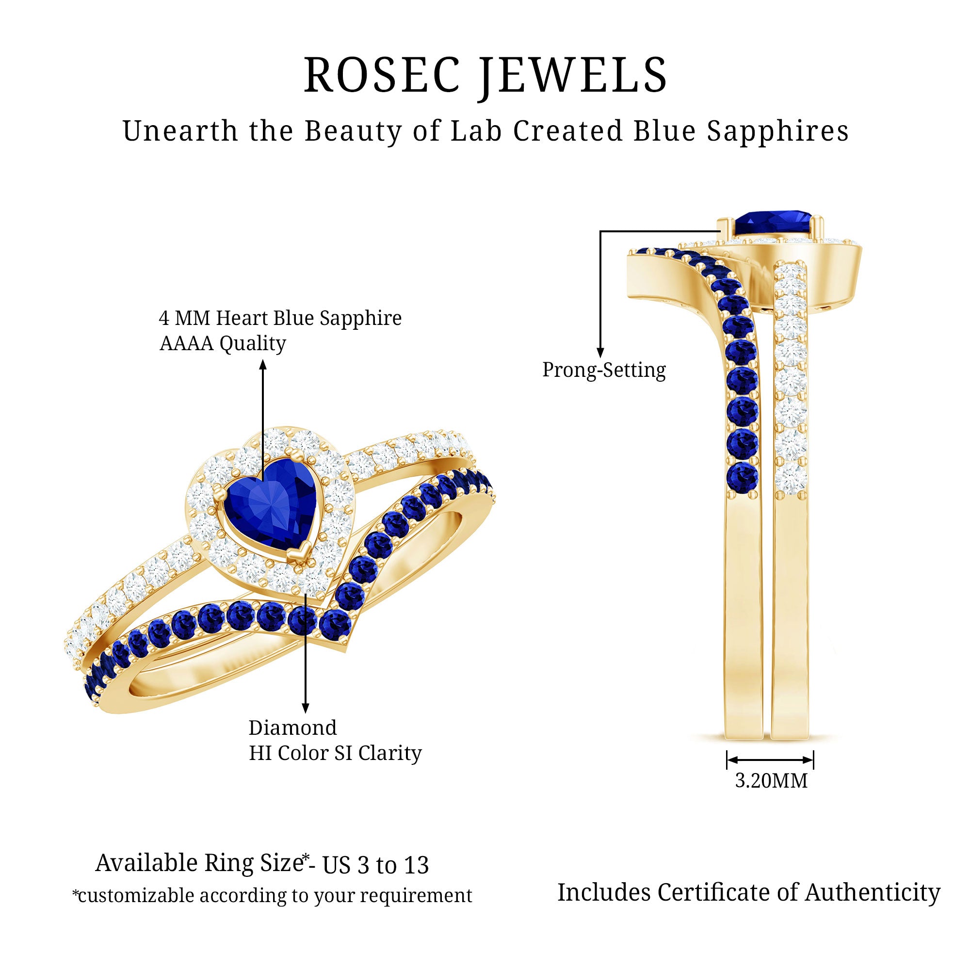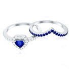 1 CT Created Blue Sapphire and Diamond Heart Wedding Ring Set