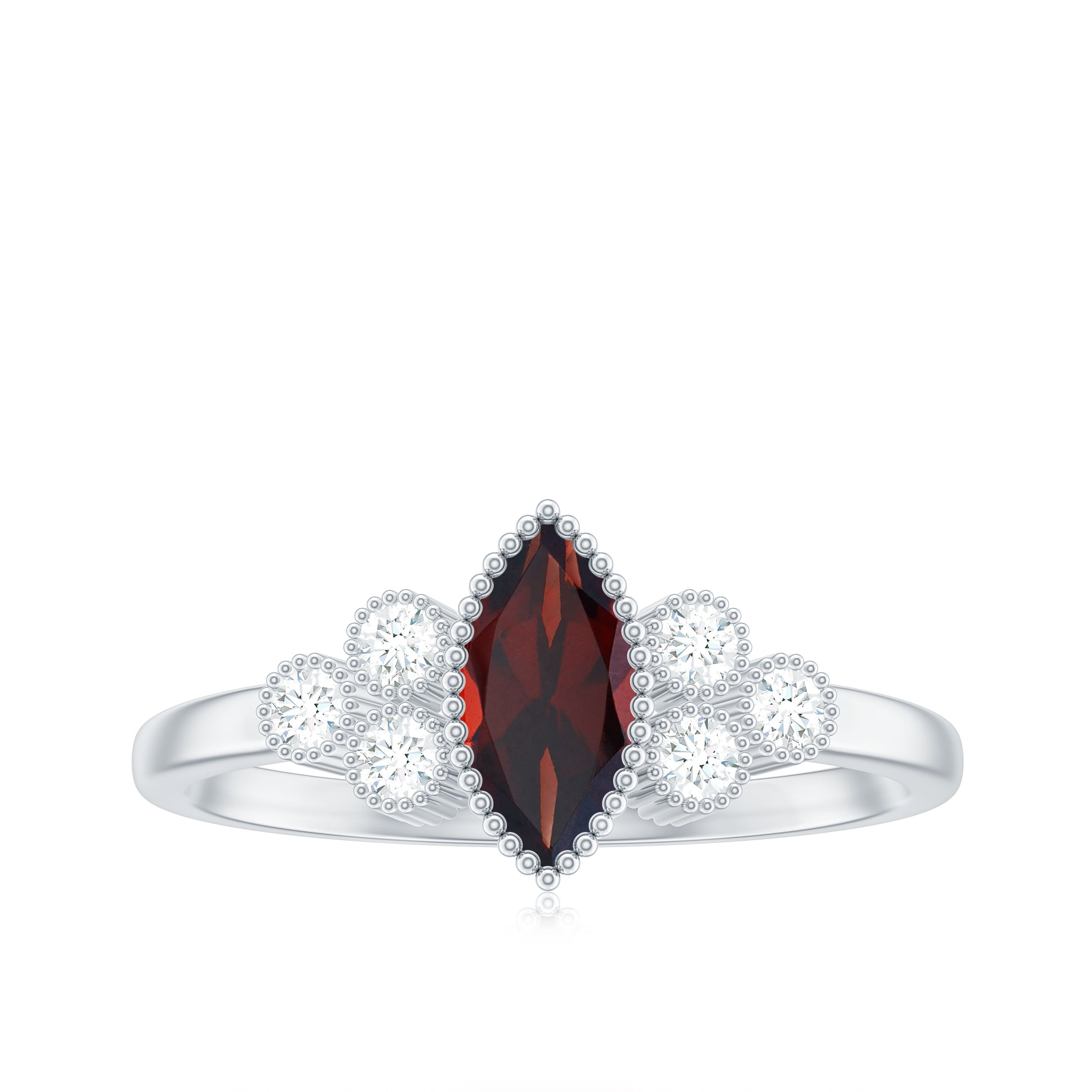 Natural 4X8mm Garnet Marquise Engagement Ring with Diamond
