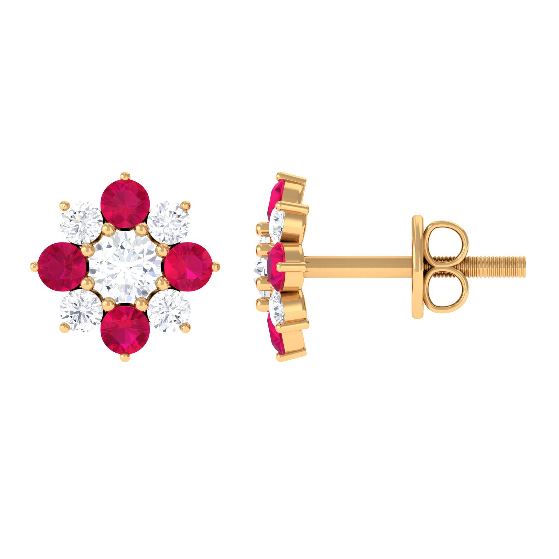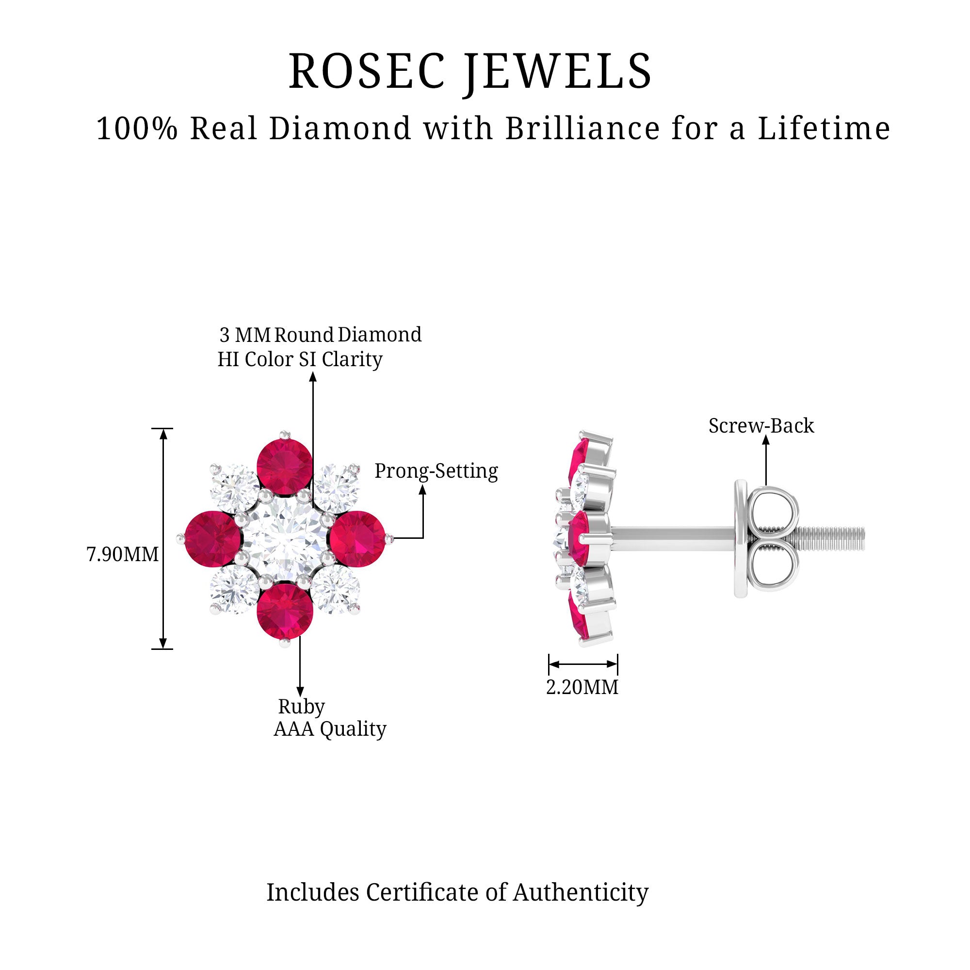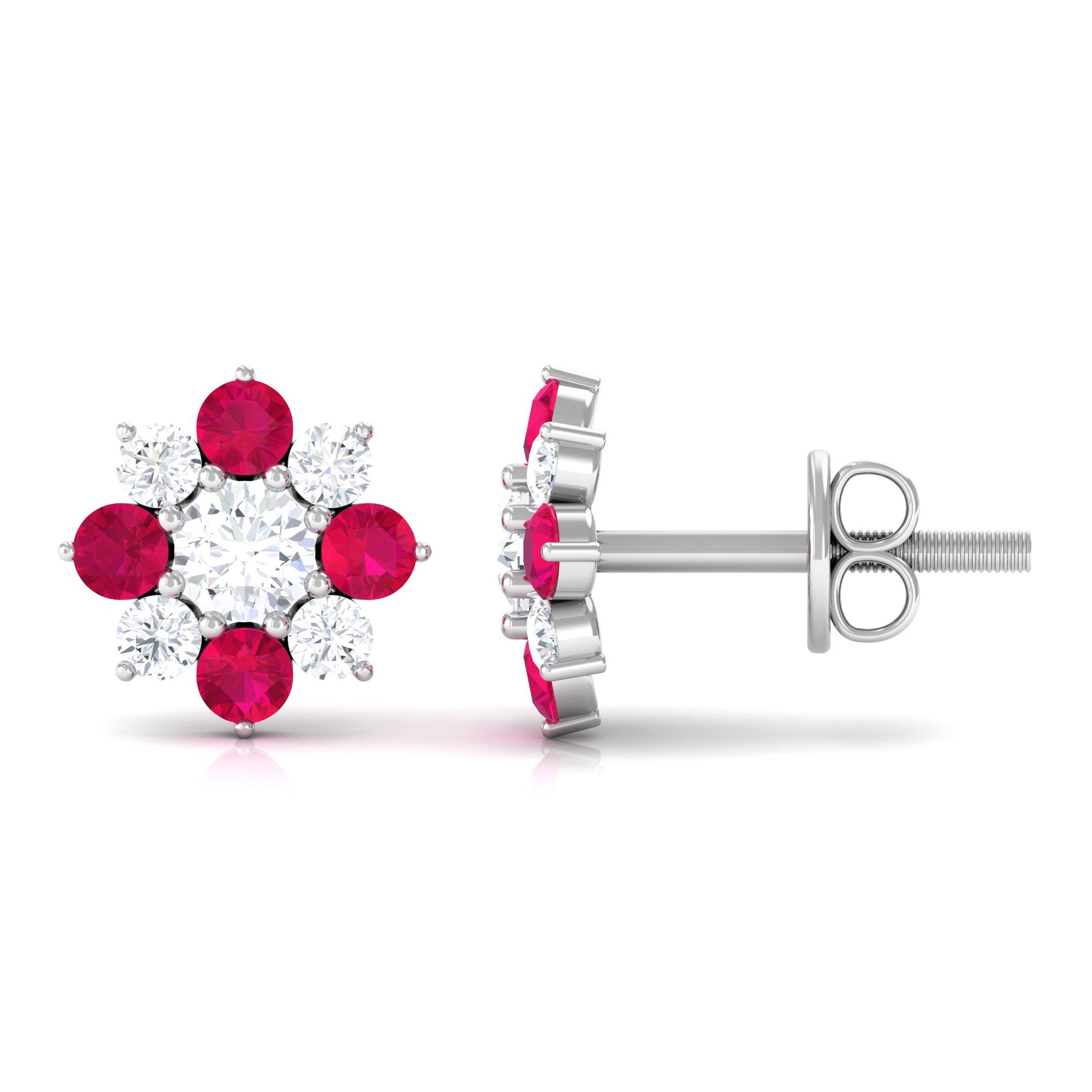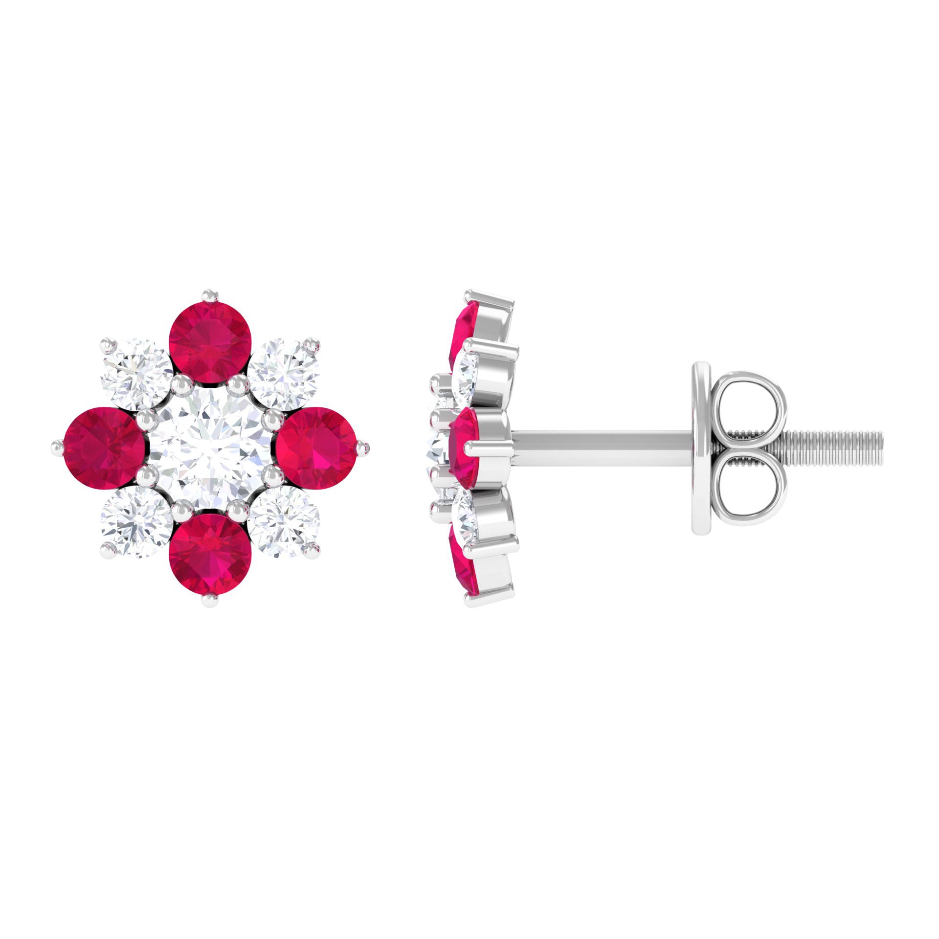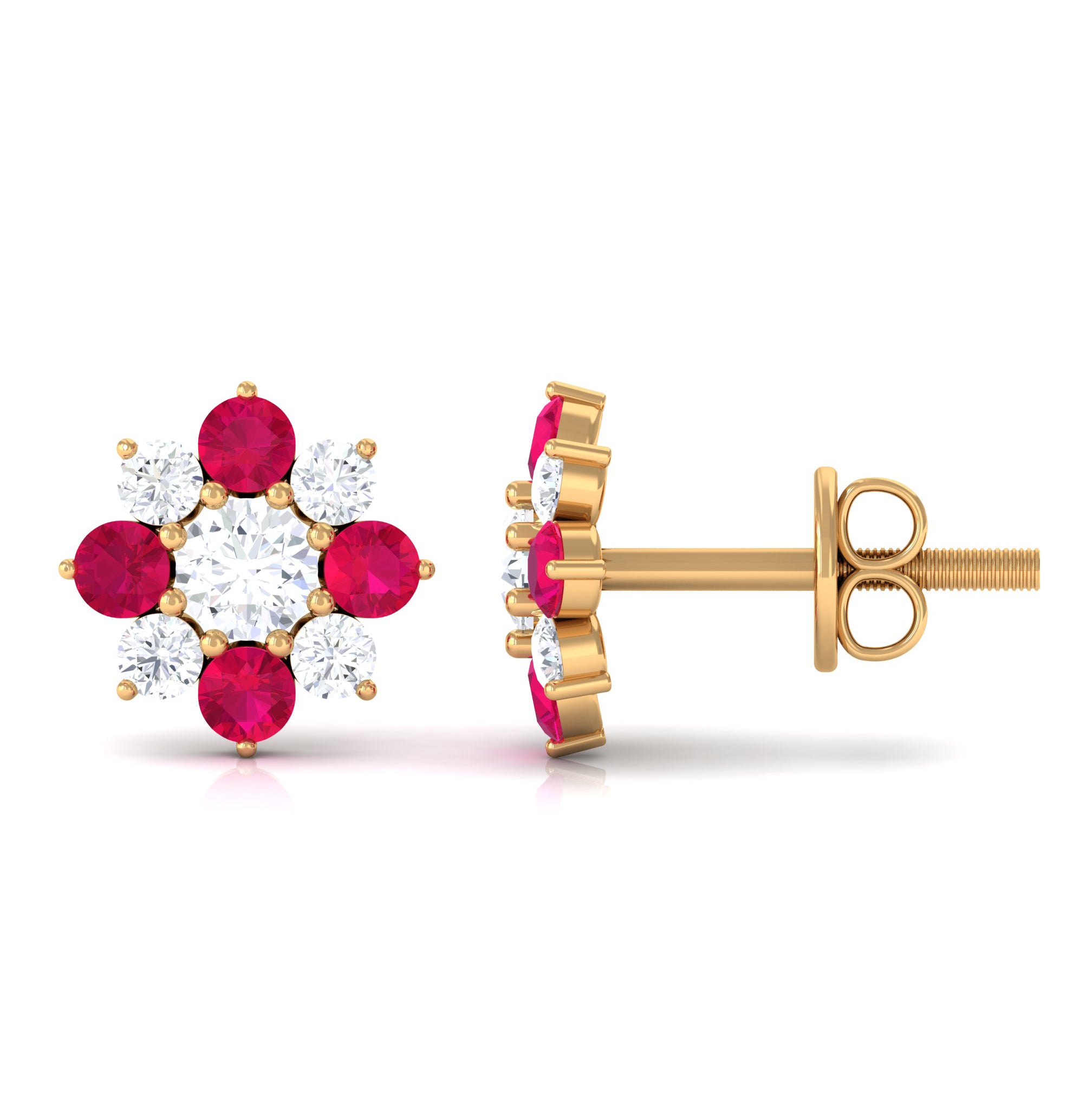 Embellished with Round Shape Diamond and Ruby these Floral Stud Earrings will decorate your look with minimal effort.
