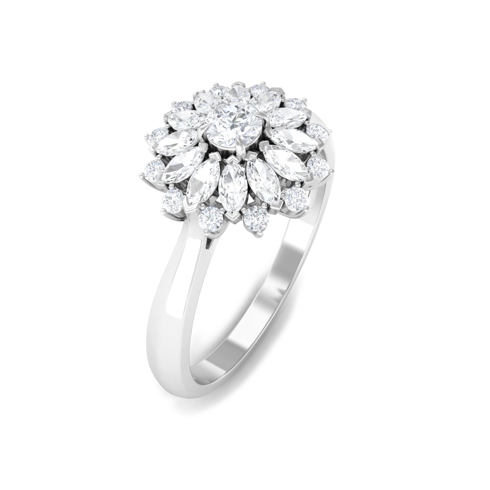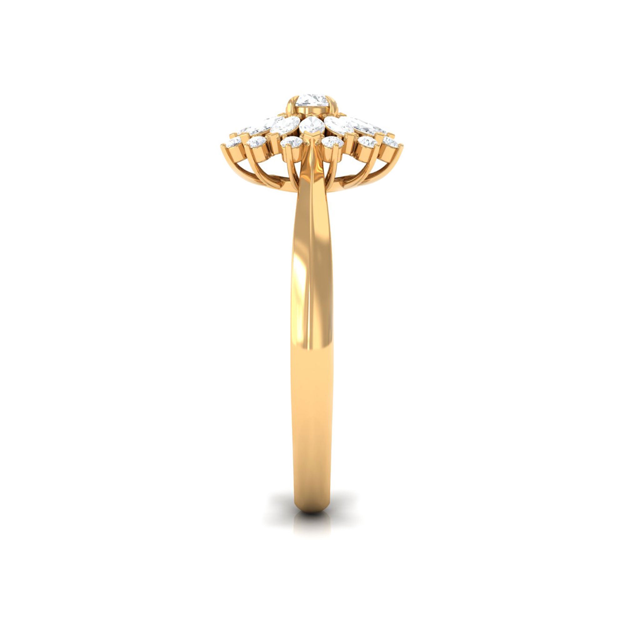 The most powerful design that is born from the natural world is the Diamond Engagement Ring, which brings back to bloom, it was inspired by. Having harmony and detail, it has a beauty that tells a story. Sitting in the center is the Round Shape Diamond in Claw Setting, along with the Marquise Shape Diamond that mimics the petals of a flower. While adorning the flower is the Round brilliant Shape Diamond, scintillating the flower, making it a beautiful Cocktail Engagement Ring. Offering balance and calm, this Nature Engagement Ring celebrates love in its most organic form. Having a subtle way, this Flower Engagement Ring has a floral pattern that enhances the overall look with a dash of splendor. This floral inspired design is captivating yet timeless, which is ready to make your big proposal truly memorable. This show-stopping Flower Cocktail Ring creates an unforgettably romantic piece of jewelry echoing the wild beauty of the natural world.
