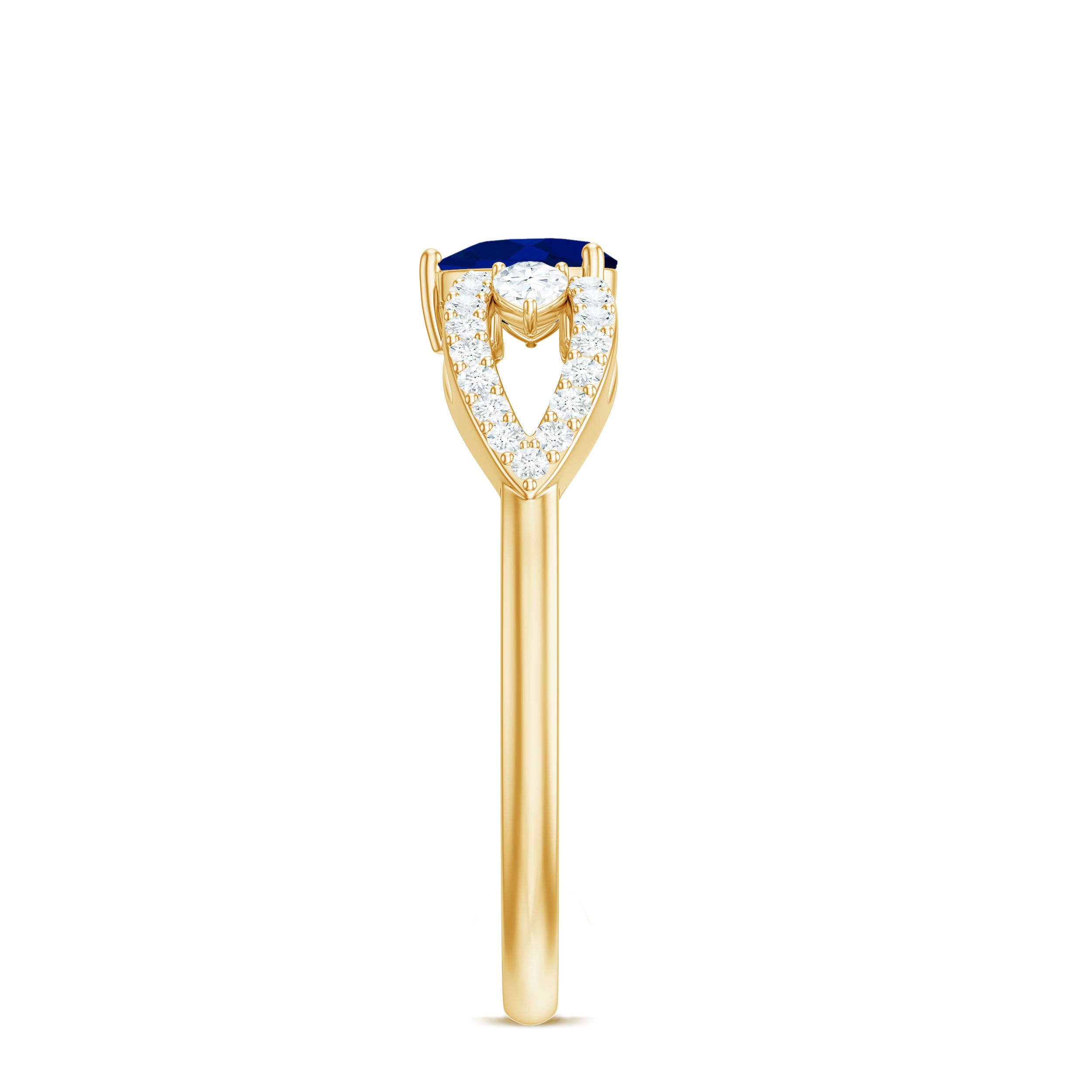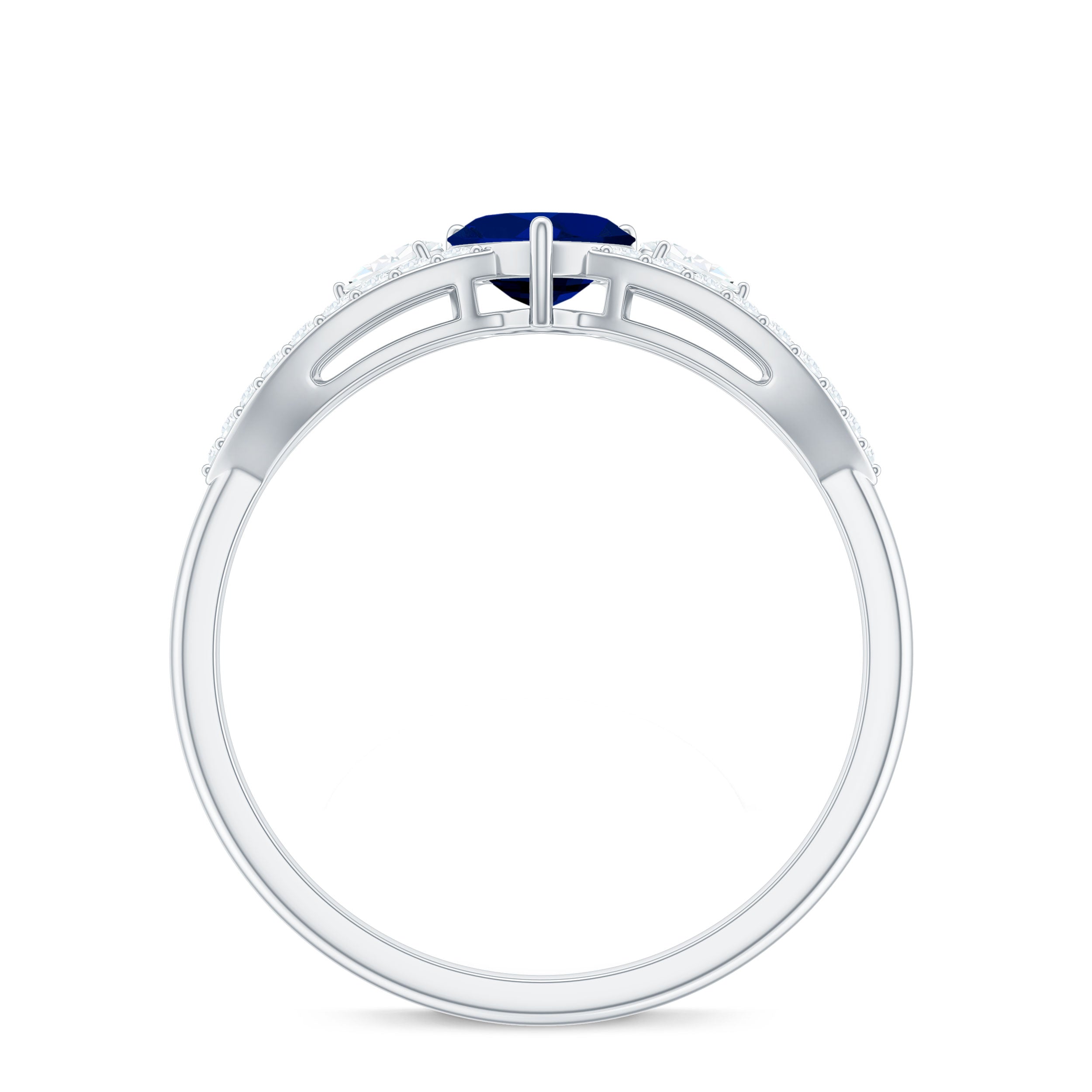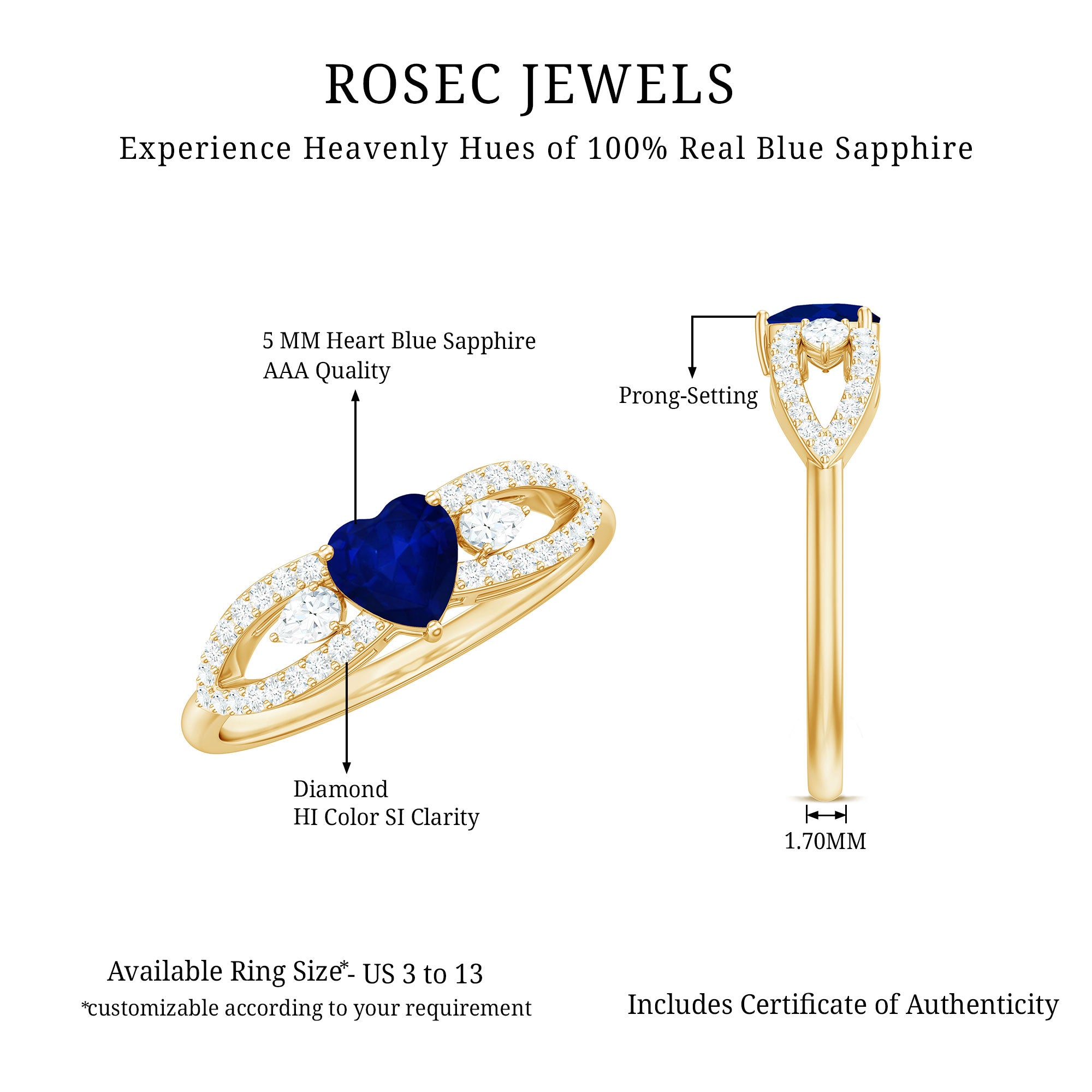 1 CT Elegant Blue Sapphire Solitaire Heart Ring with Diamond