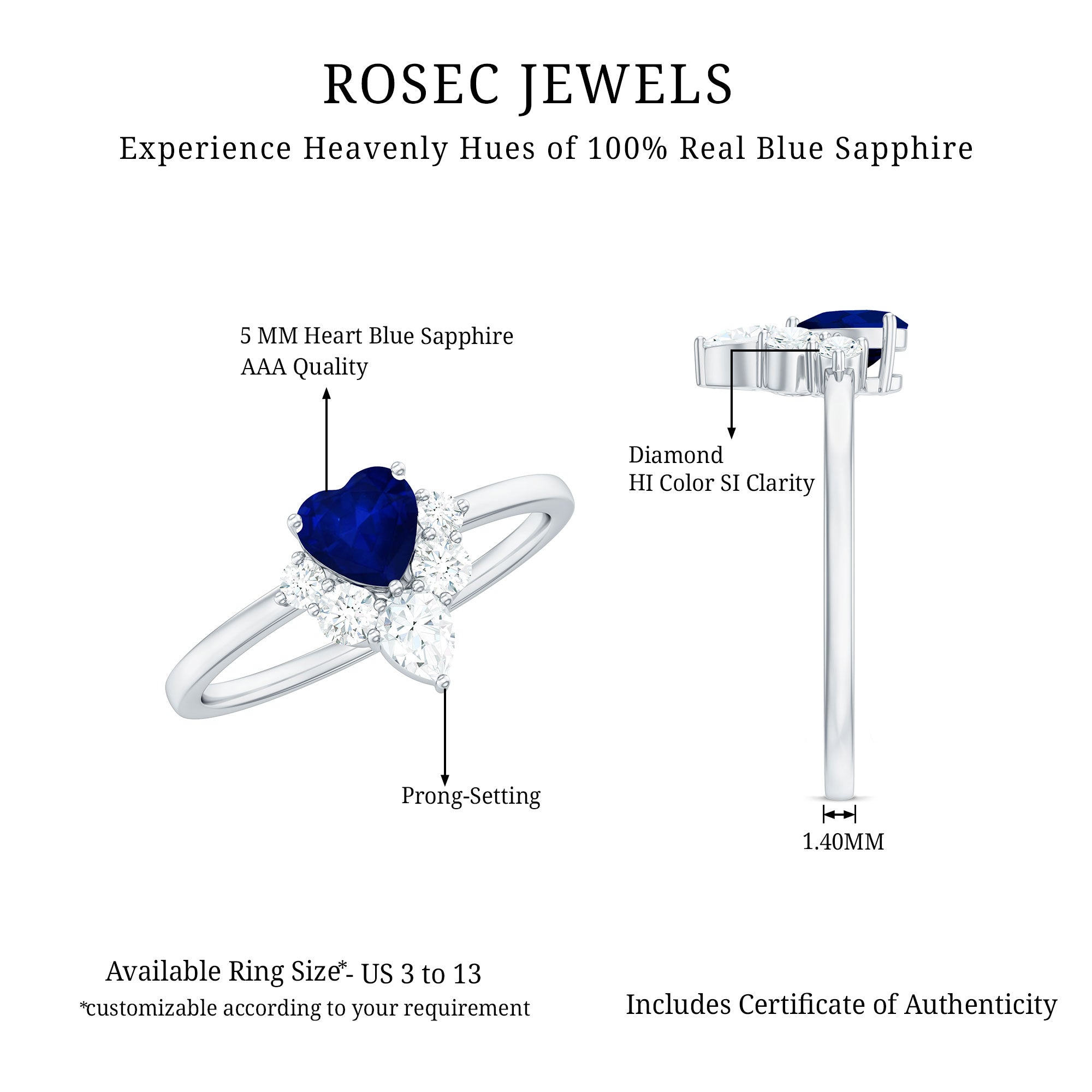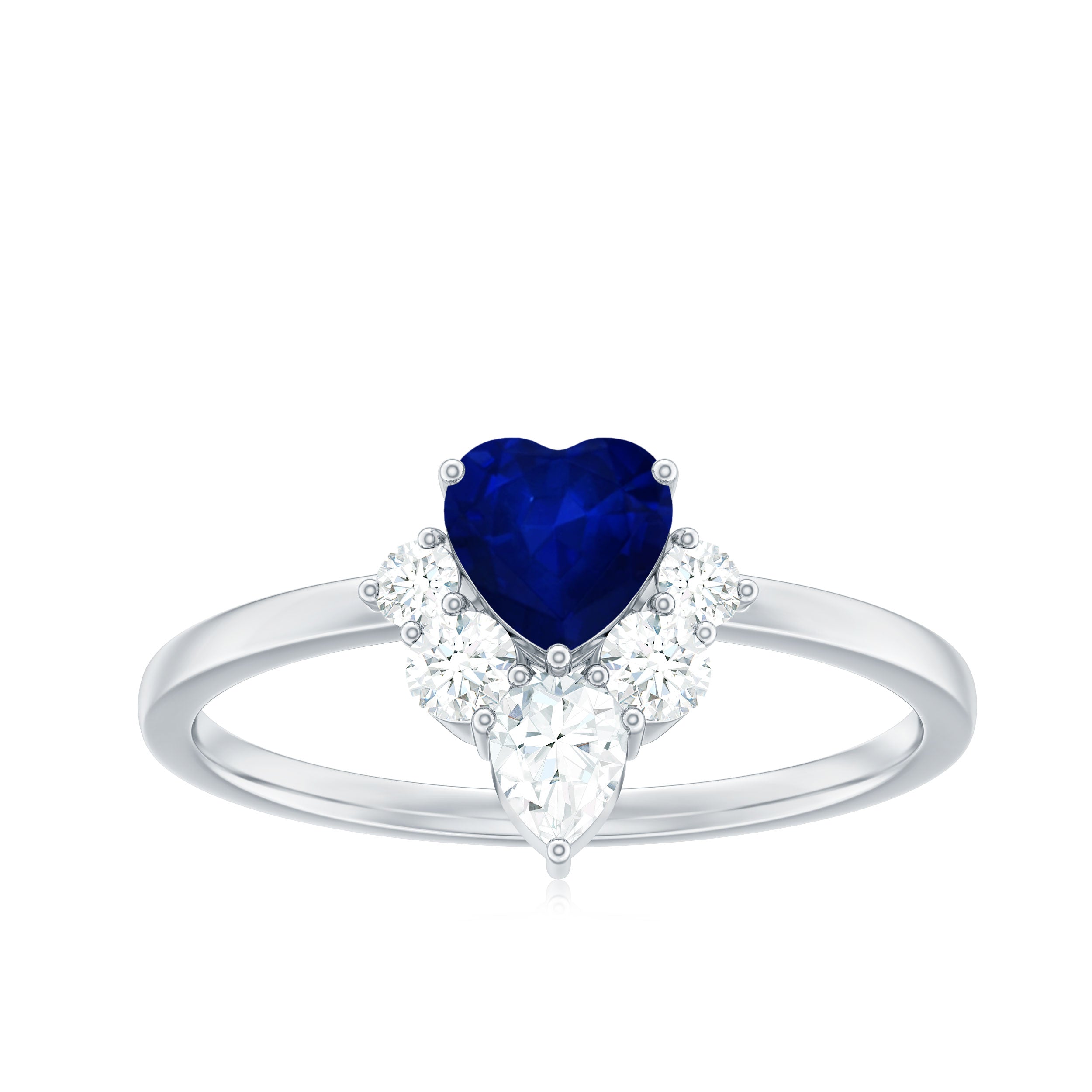 1 CT Heart Blue Sapphire Promise Ring with Diamond Accent