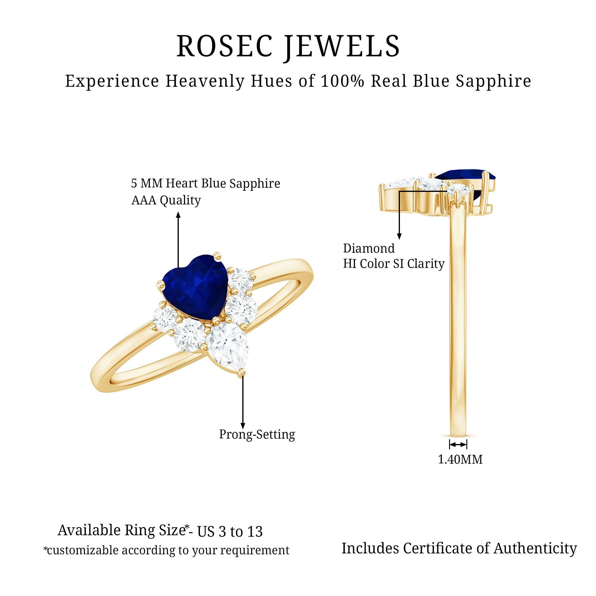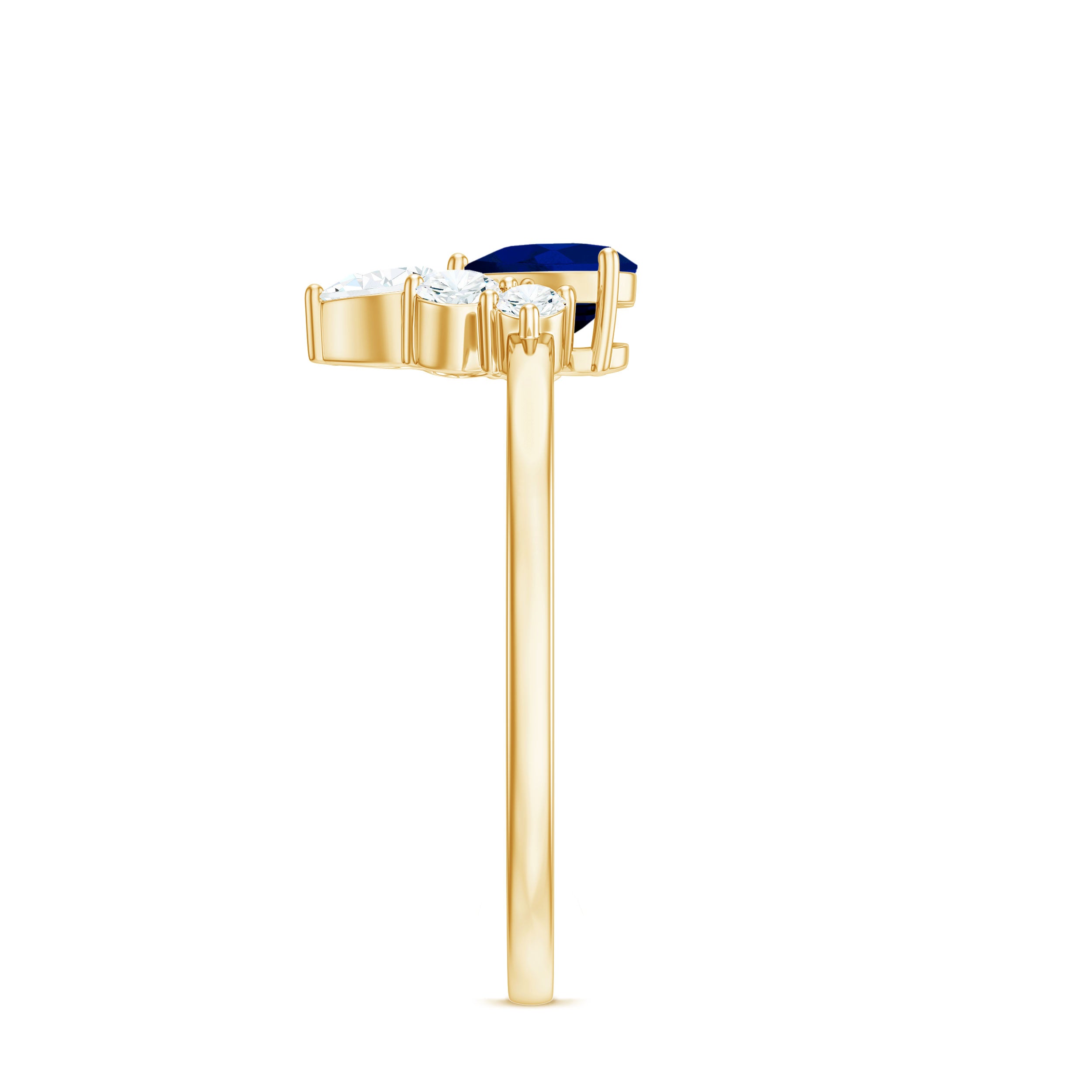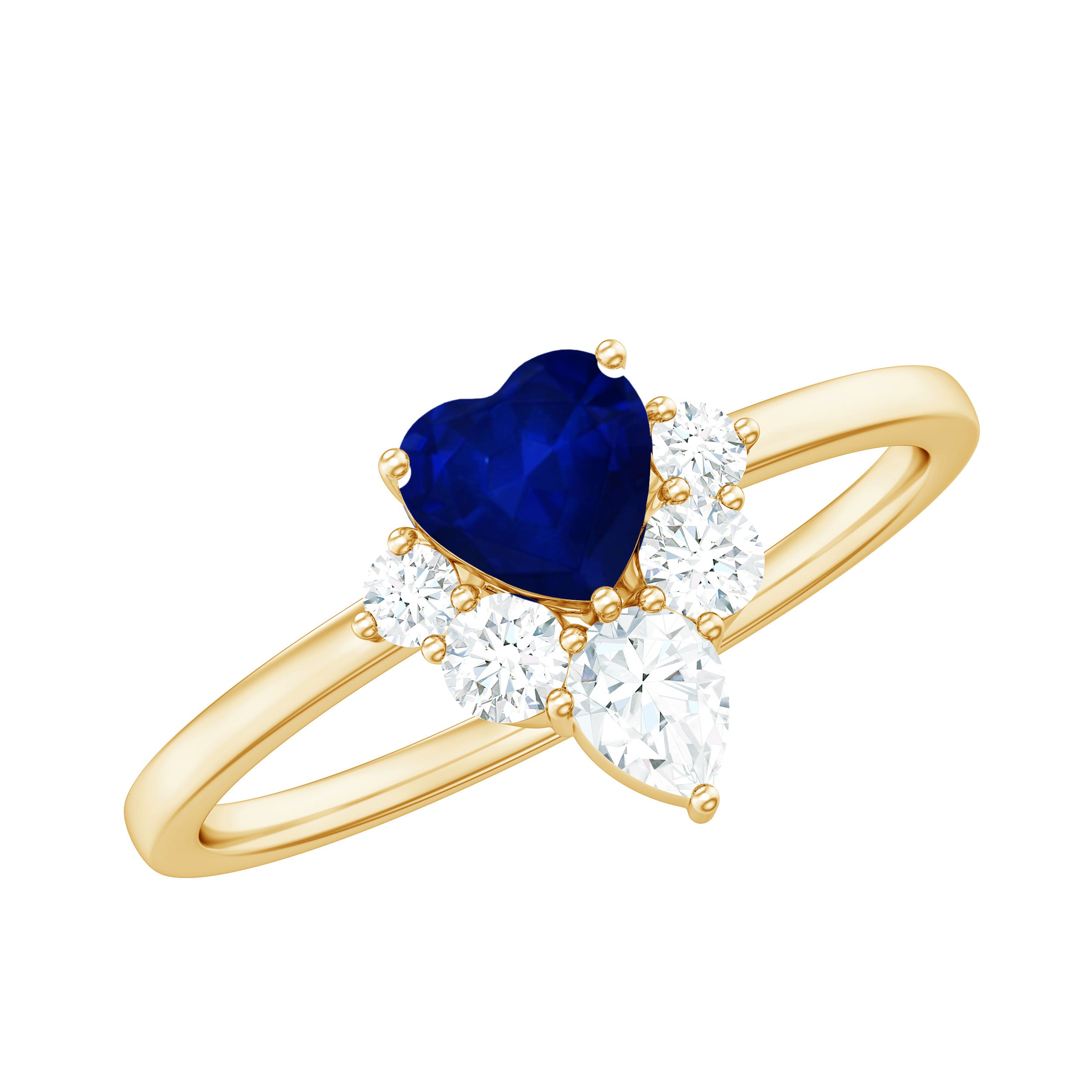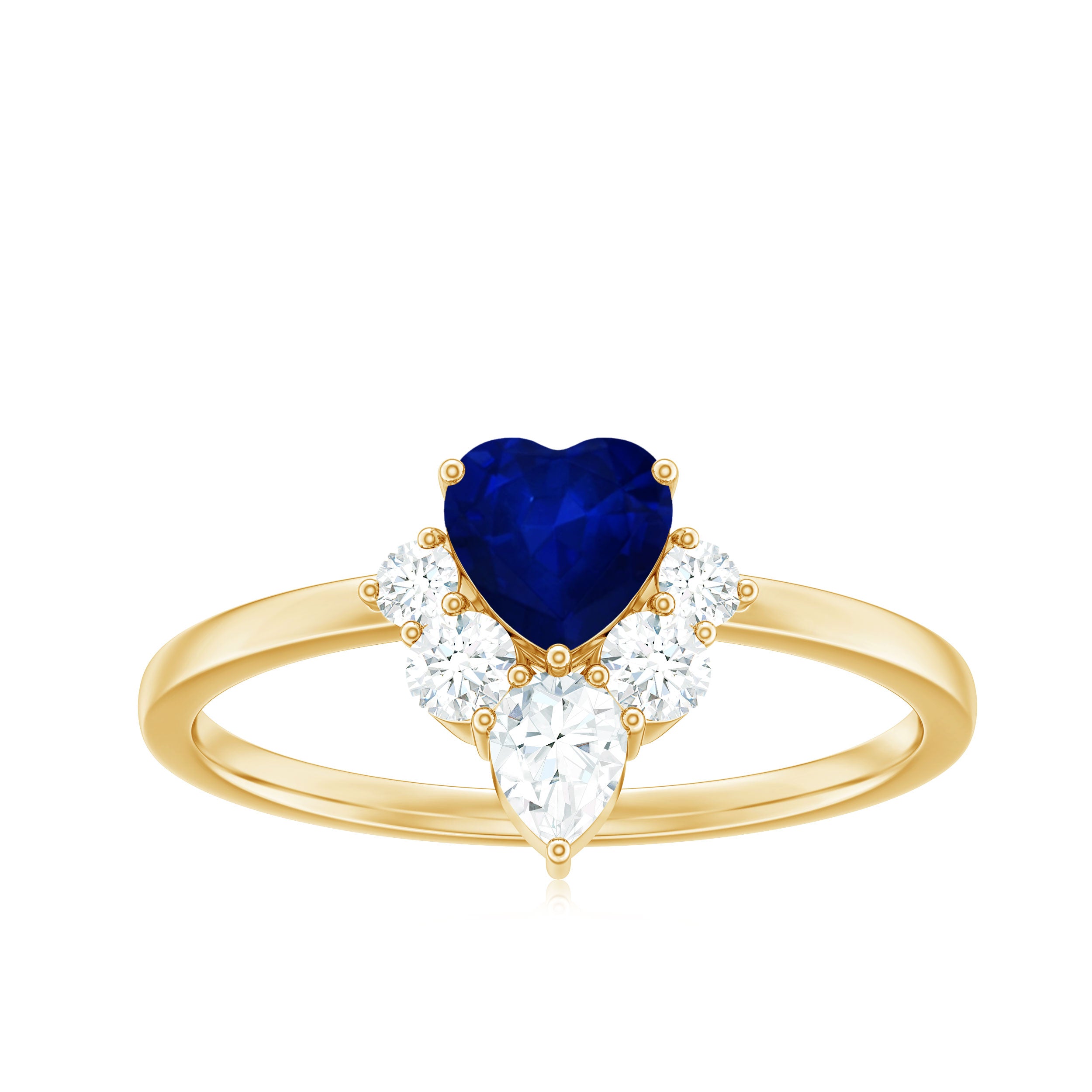Nothing can describe your sincere and faithful love than this Blue Sapphire Heart Promise Ring. Embellished with Heart Shape Blue Sapphire with cluster of Diamond sitting at the bottom of Solitaire, this Gold Ring is ideal for your regal Virgo woman.
