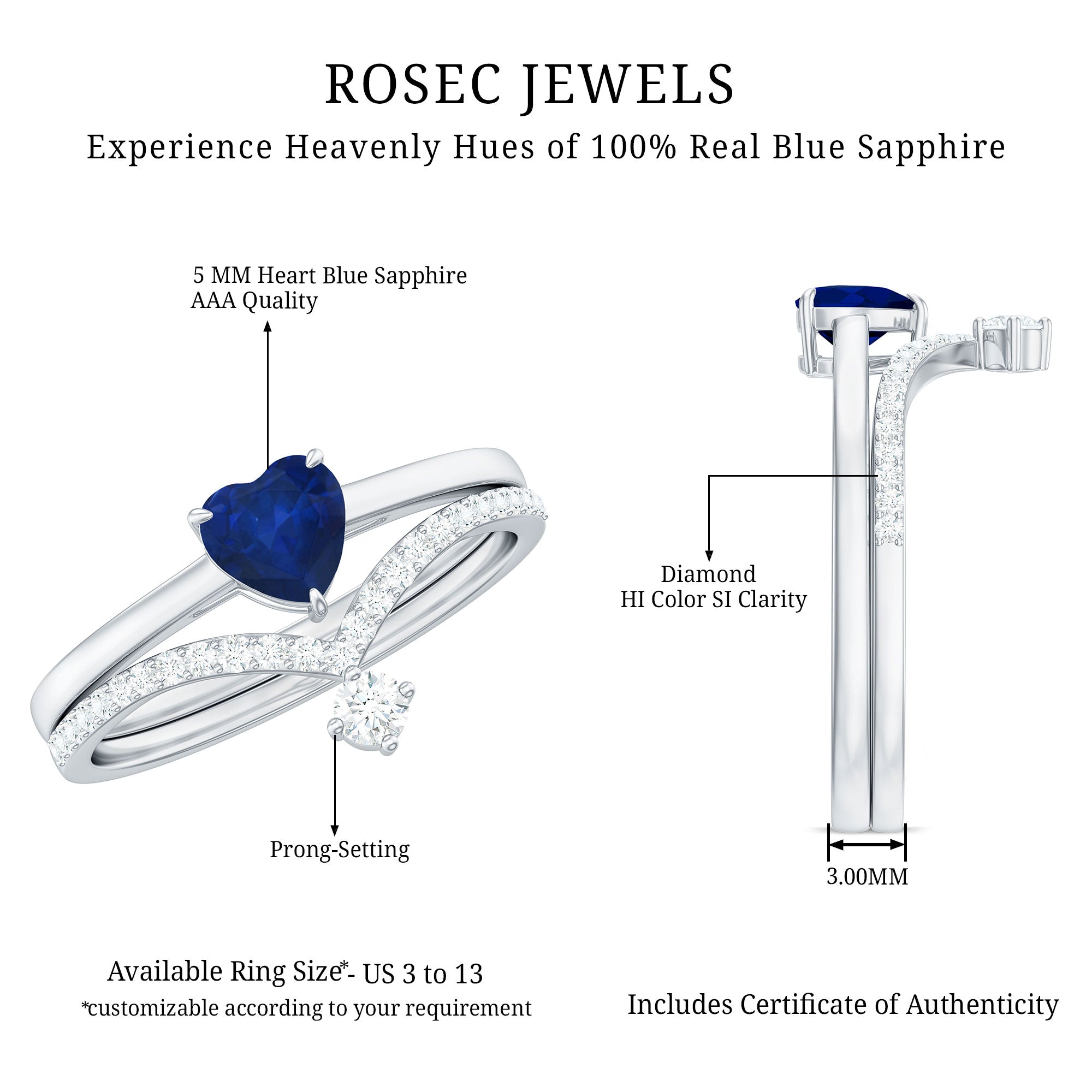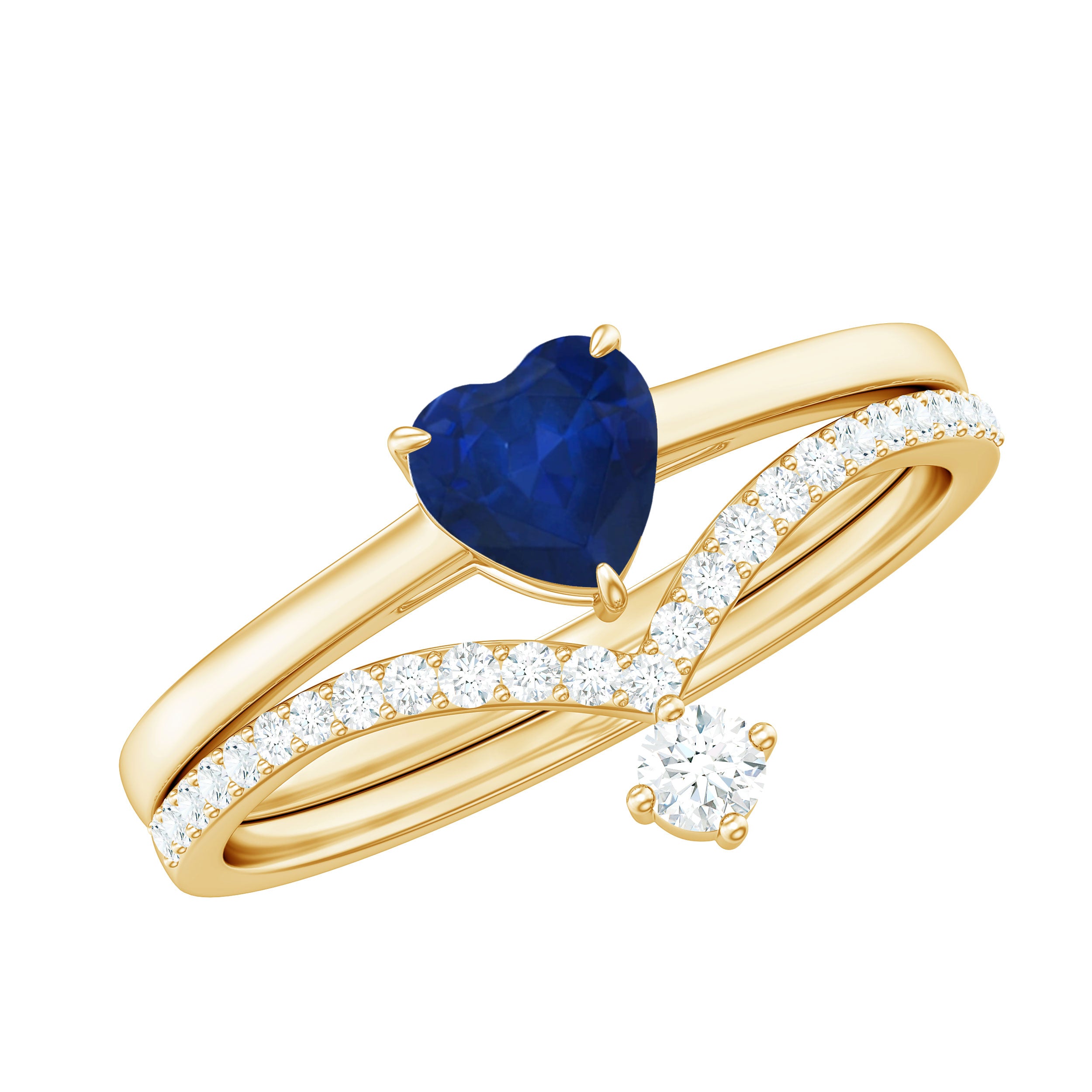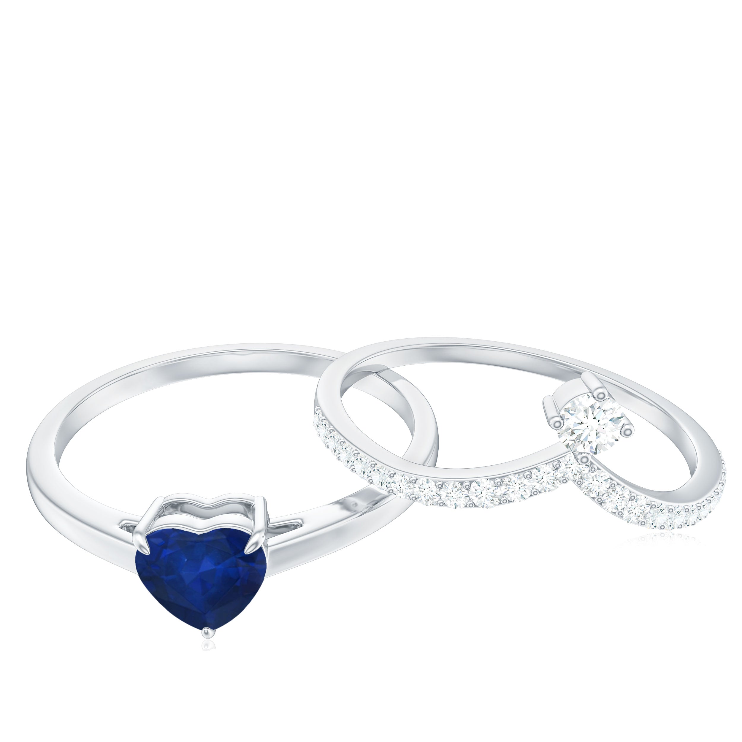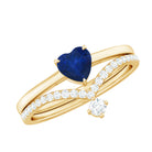 1 CT Heart Shape Blue Sapphire Solitaire Ring Set with Diamond Enhancer Band