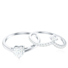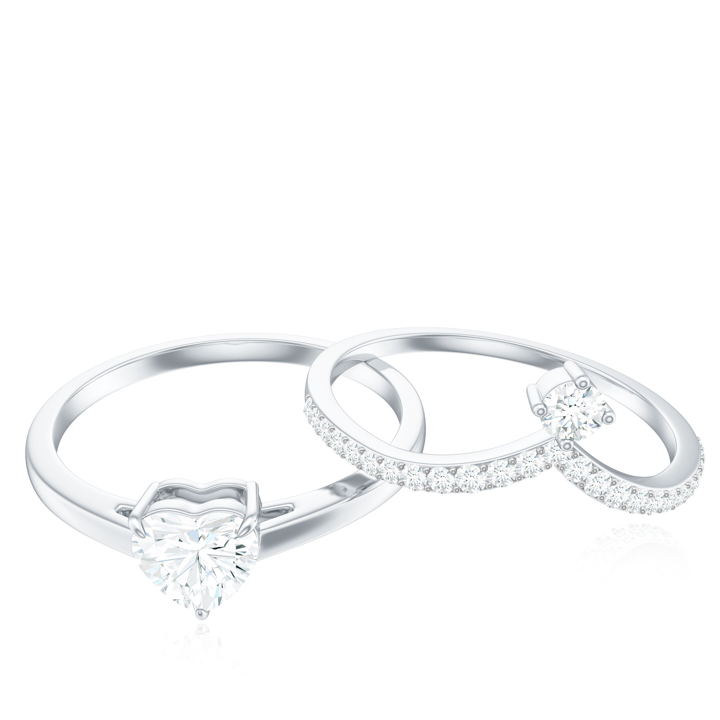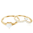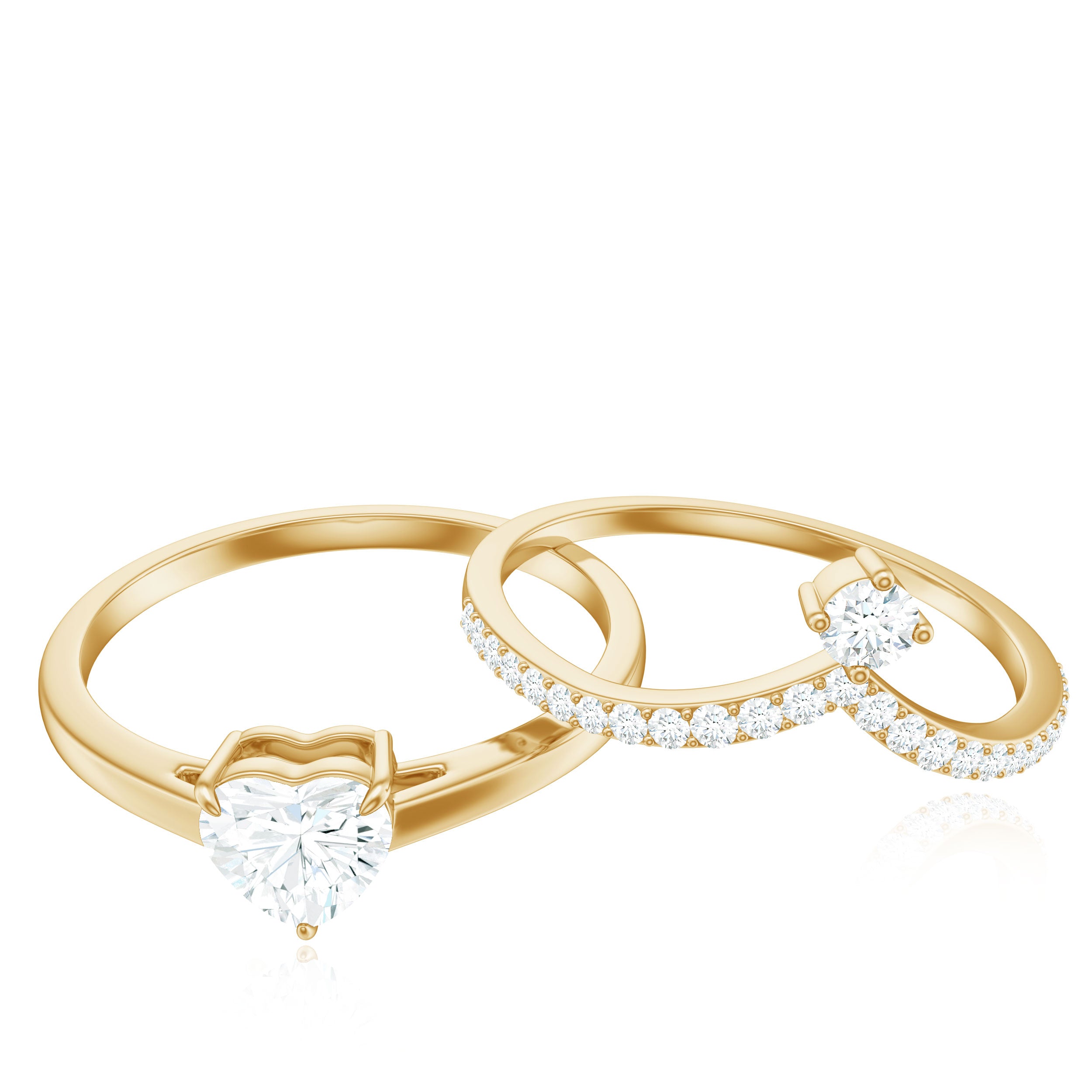 Timelessness of your bond can be seen with the exchange of perfect jewelry. This Zircon Wedding Ring Set is crafted in Gold for luxurious appeal, embellished with heart shape zircon set as solitaire in Claw Setting also it has Round Shape Simulated Diamond Enhancer Ring to add more charm to the ring set. Make your special day enchanting with presenting this Bridal Ring Set to your significant other.