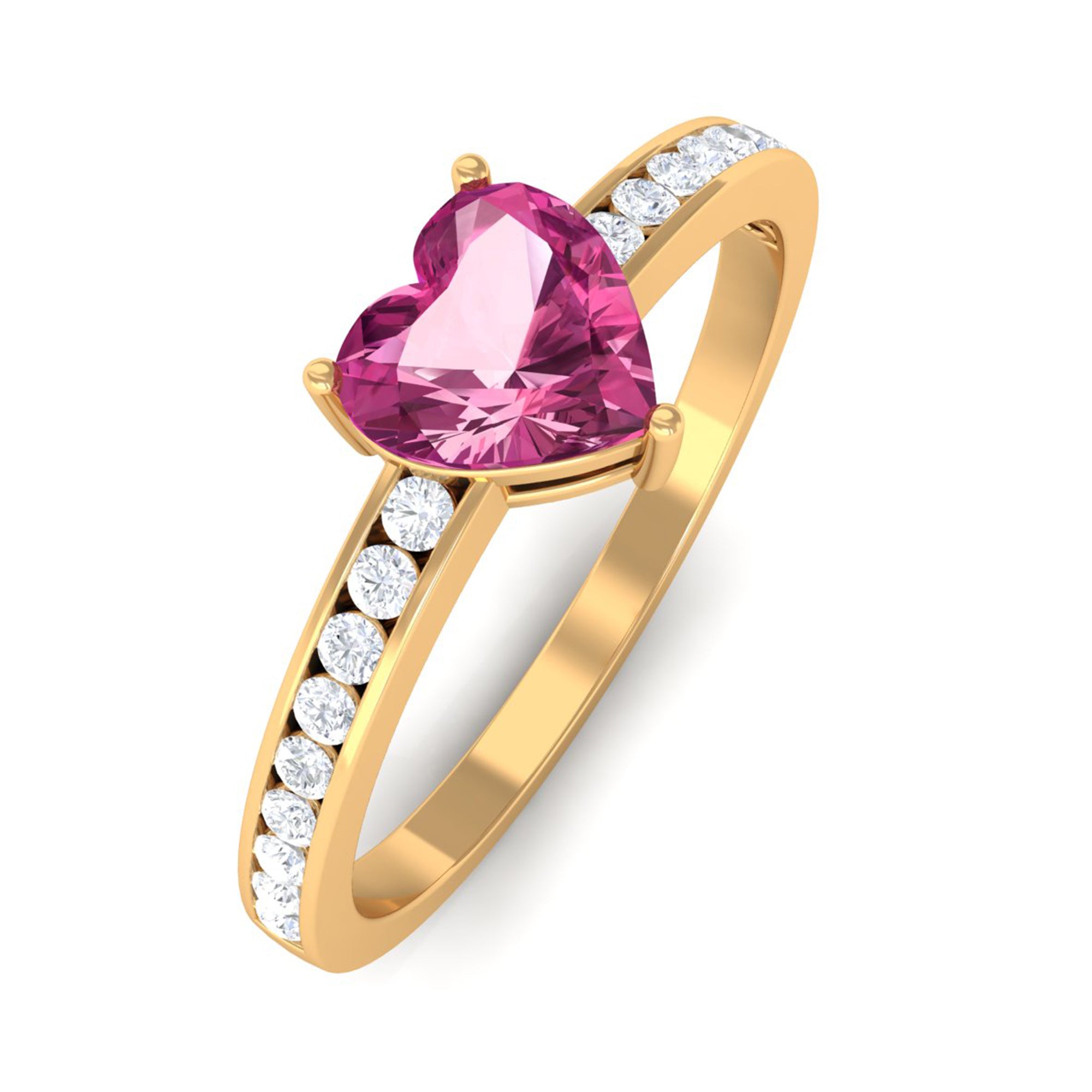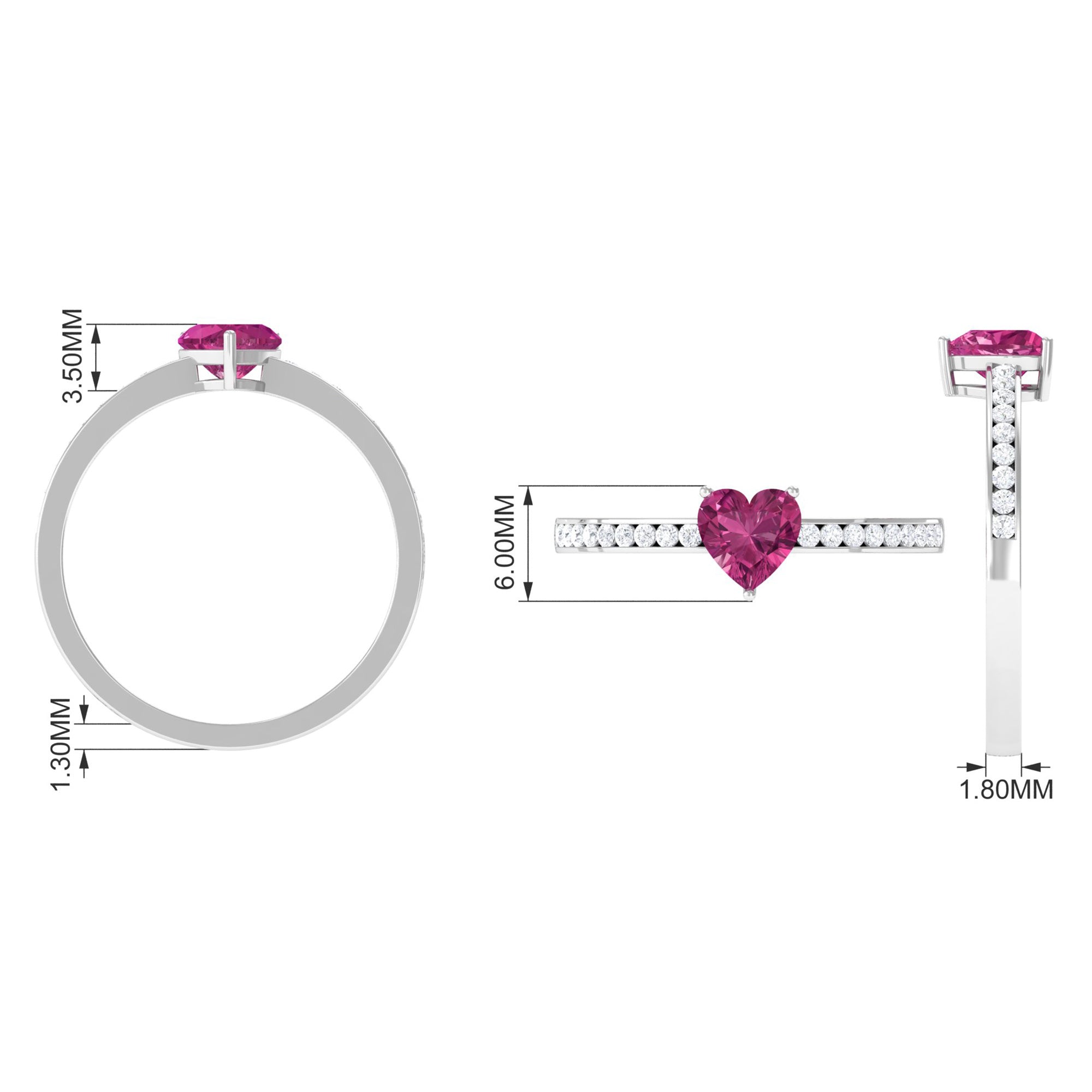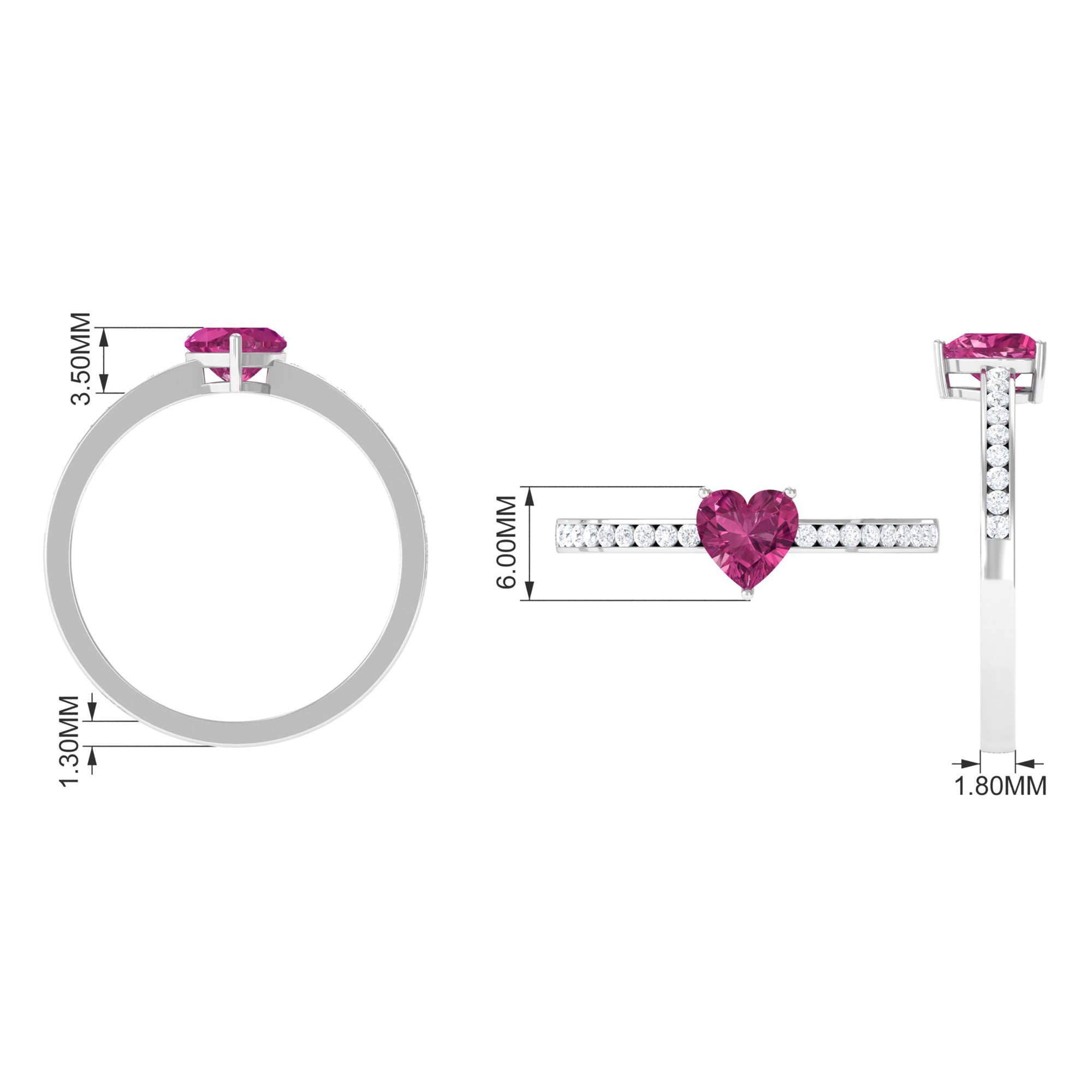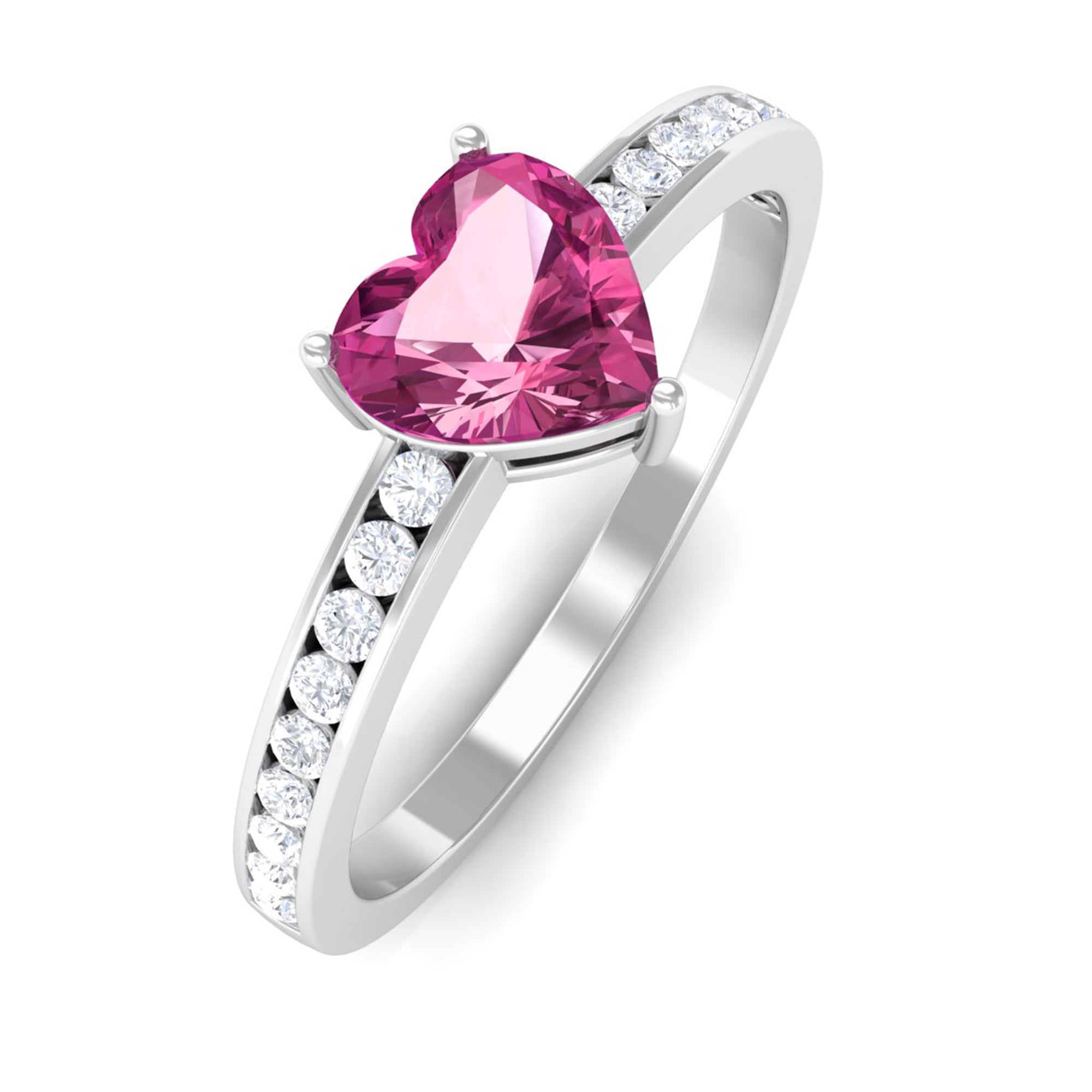 1 CT Heart Shape Pink Tourmaline Solitaire Ring with Diamond Side Stones
