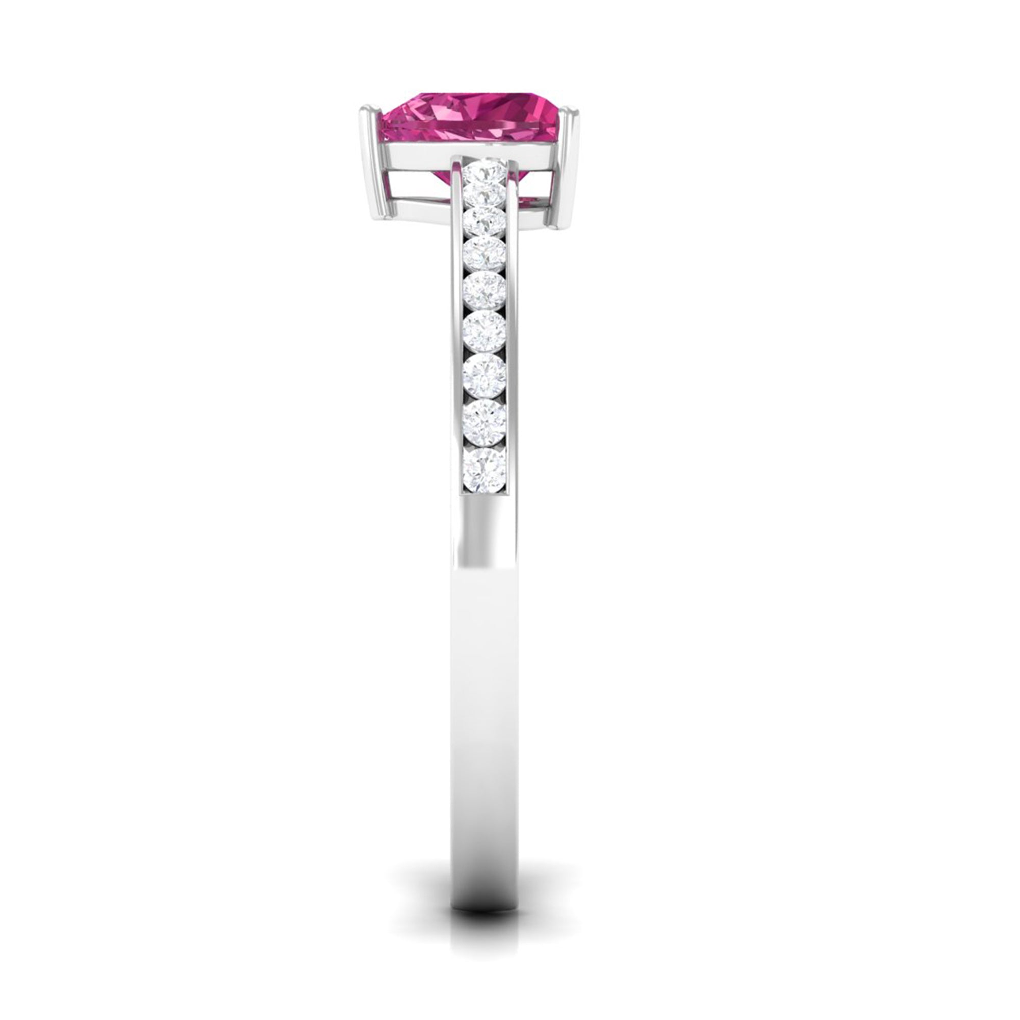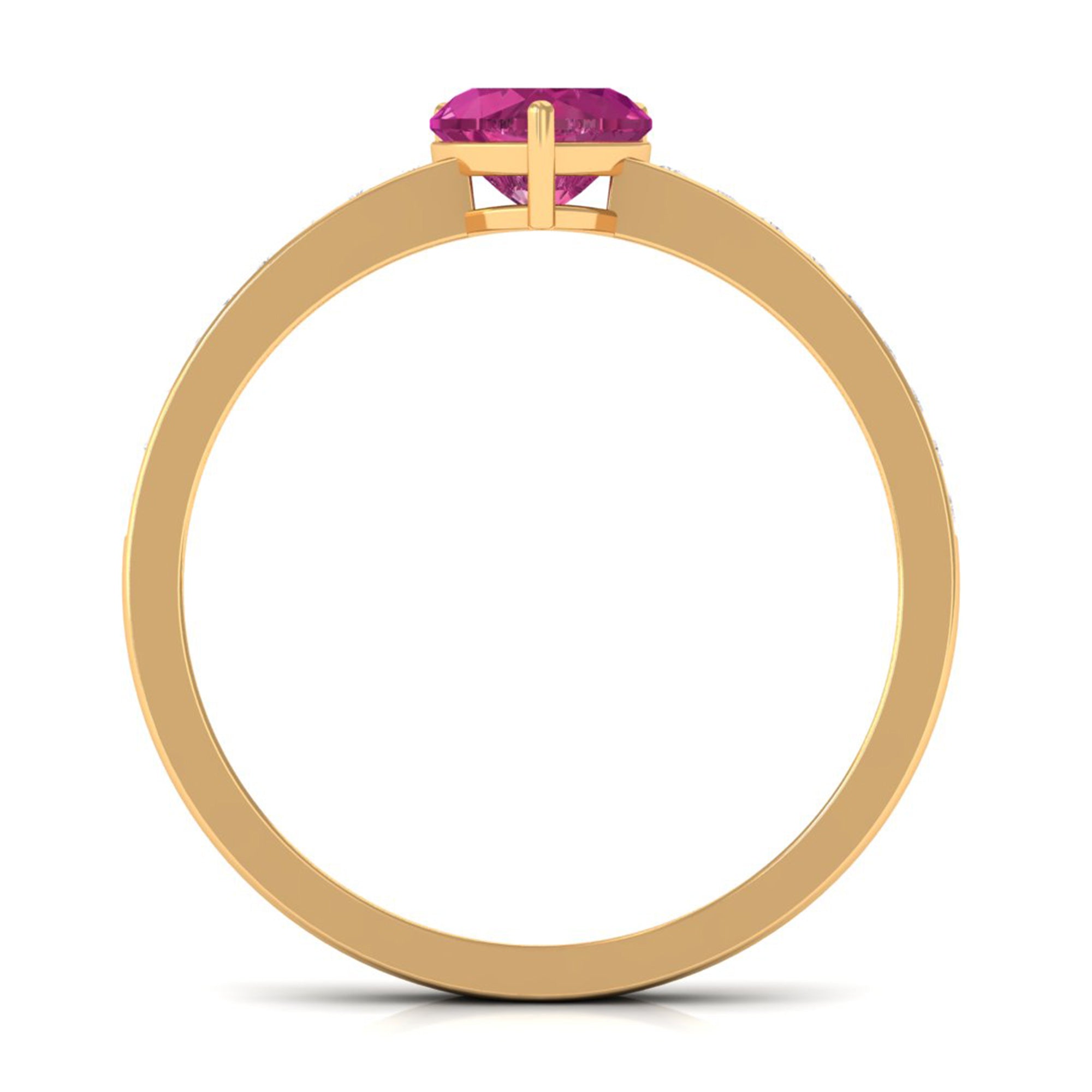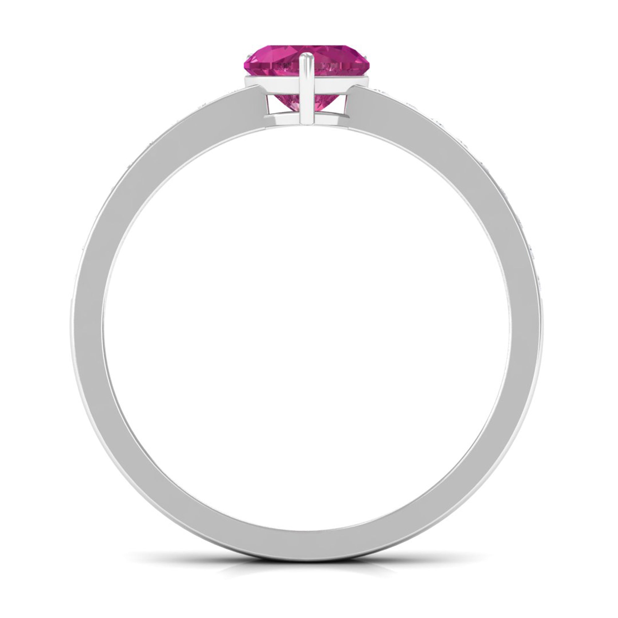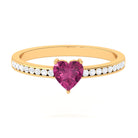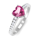 1 CT Heart Shape Pink Tourmaline Solitaire Ring with Diamond Side Stones